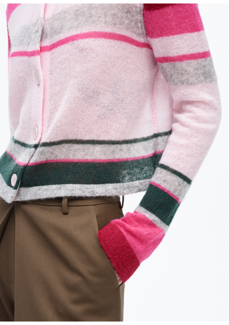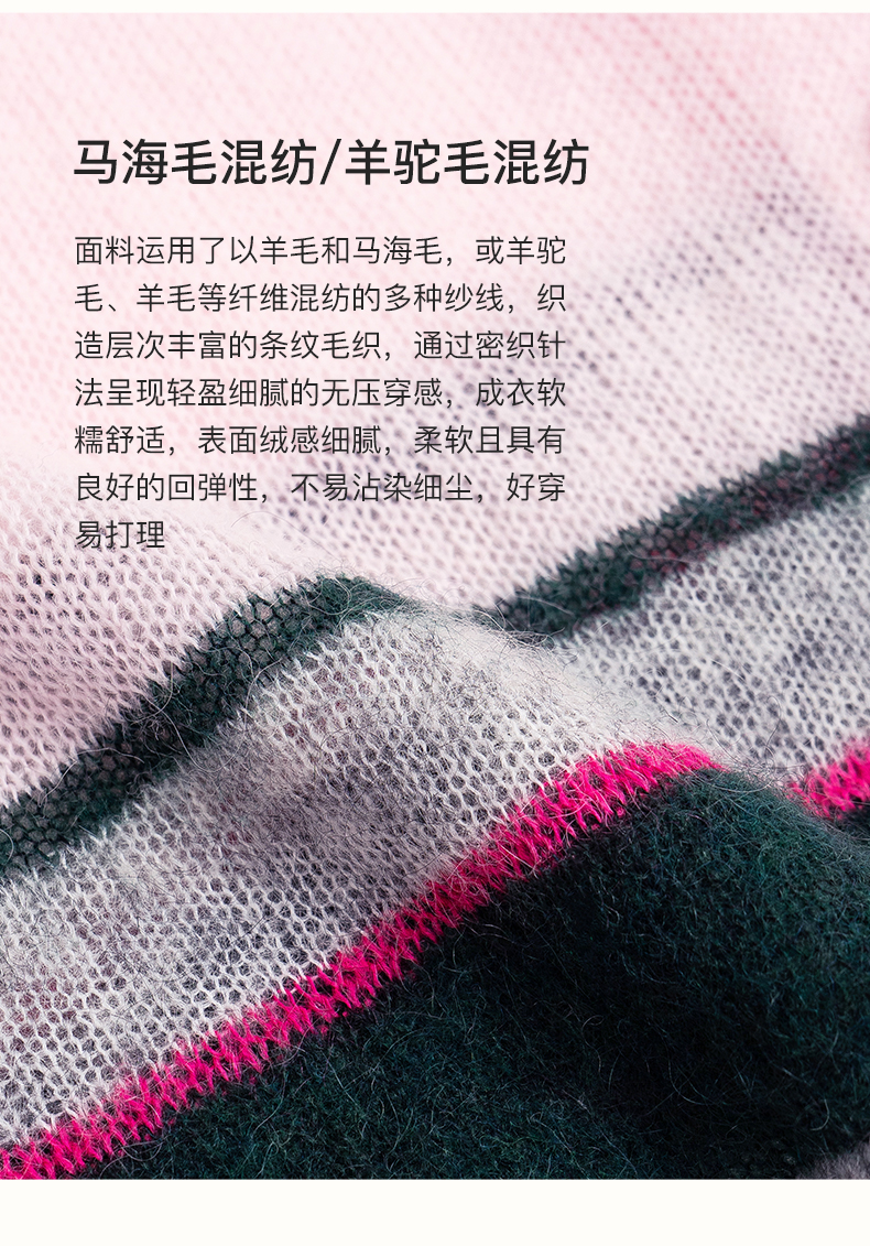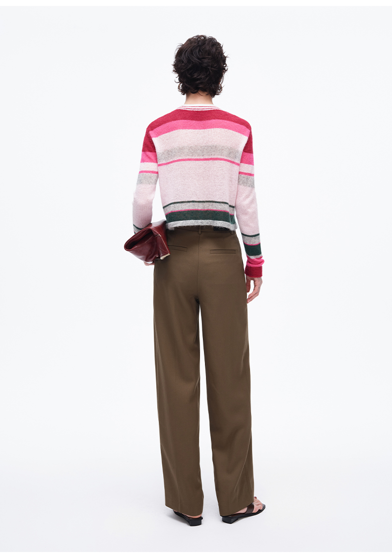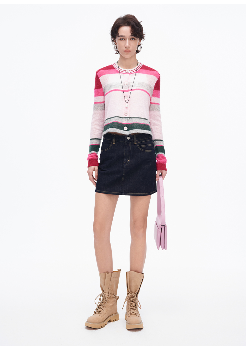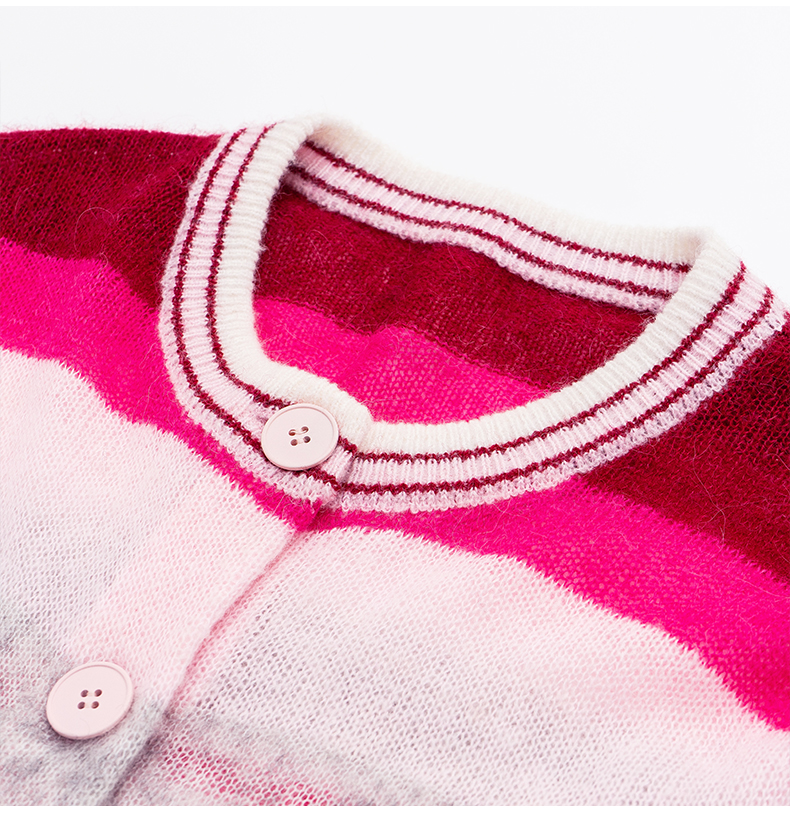 SELFWHO羊毛混纺新年红色条纹针织衫女2025春季新款圆领开衫上衣