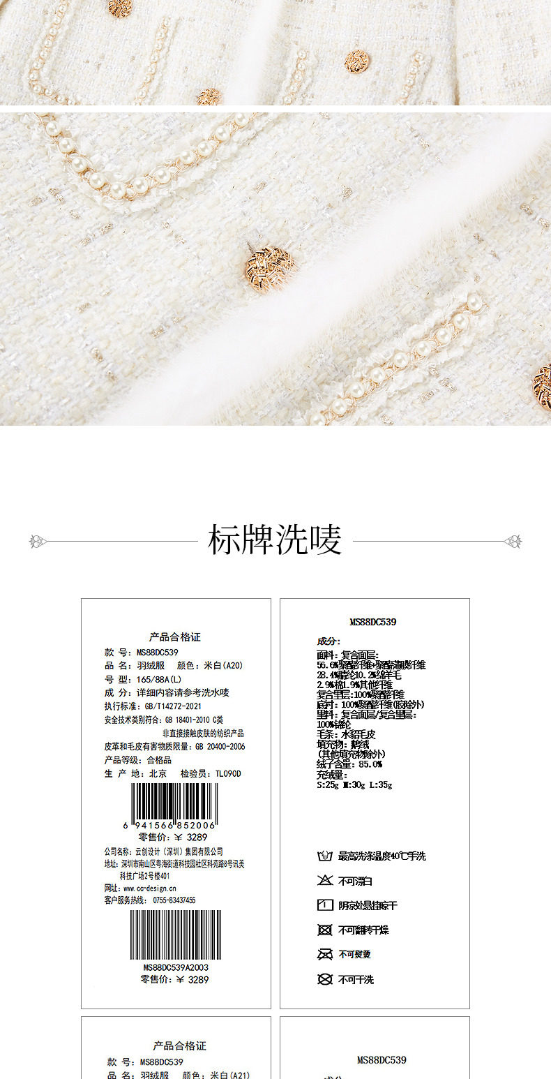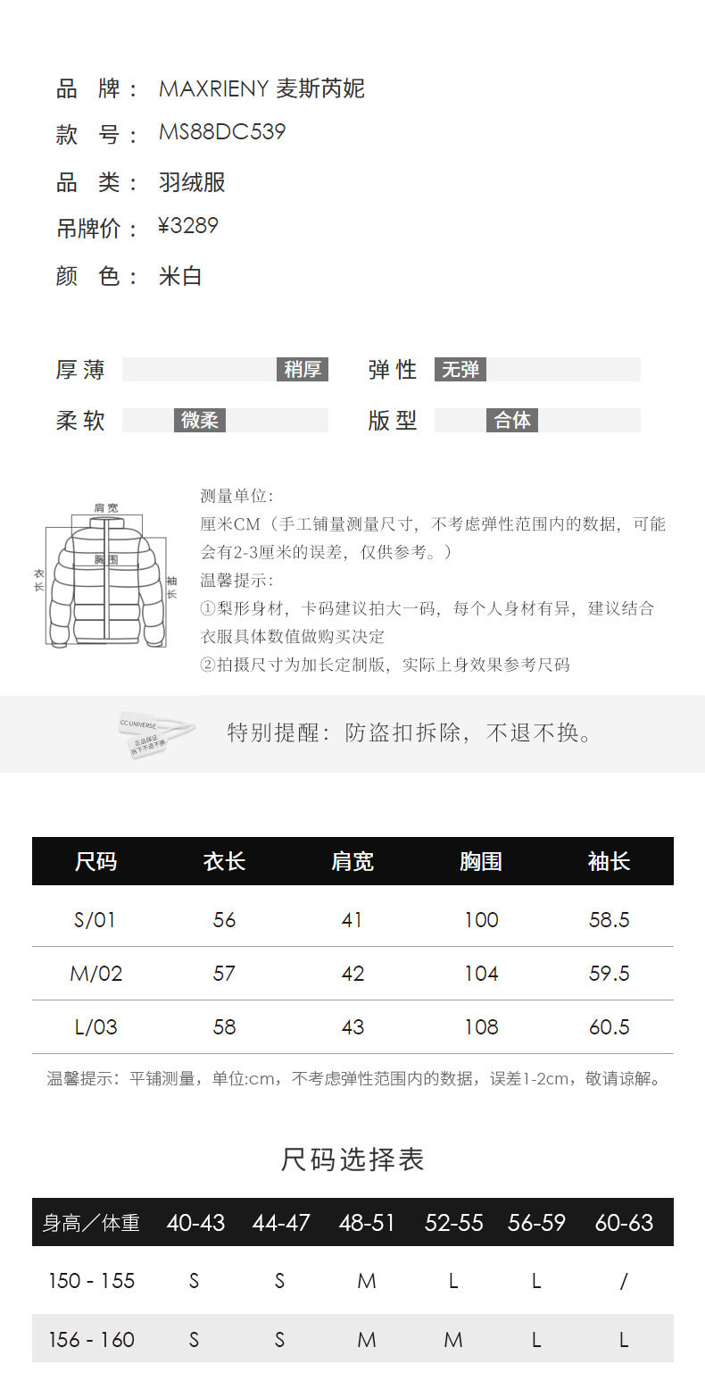 玛克门店发货:MAXRIENY名媛千金小香风羽绒(货号:MS88DC539)