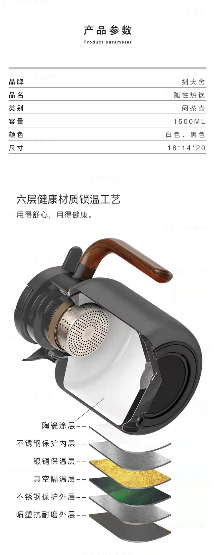 【直送到家】白色拙夫舍焖茶壶(陶瓷胆)