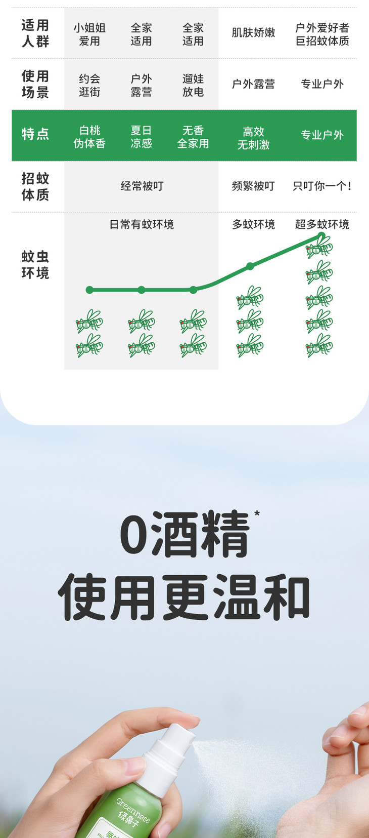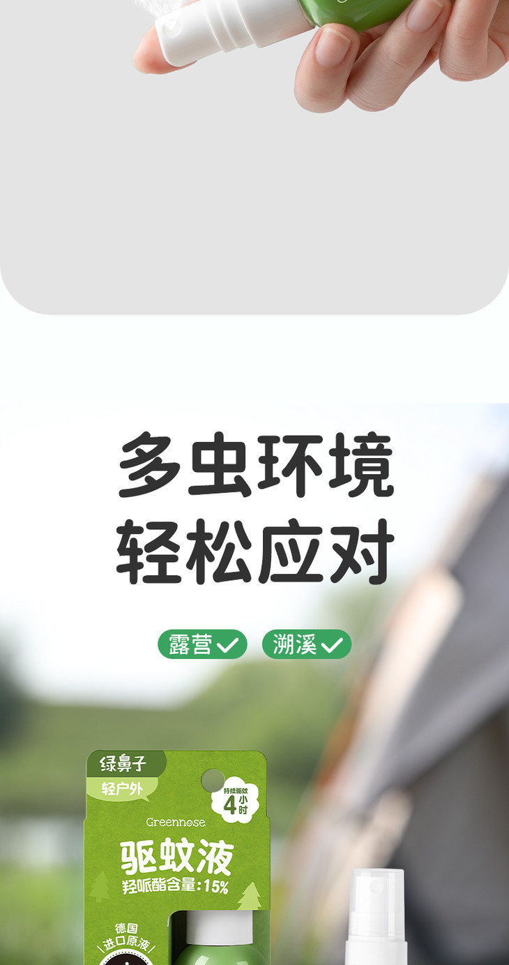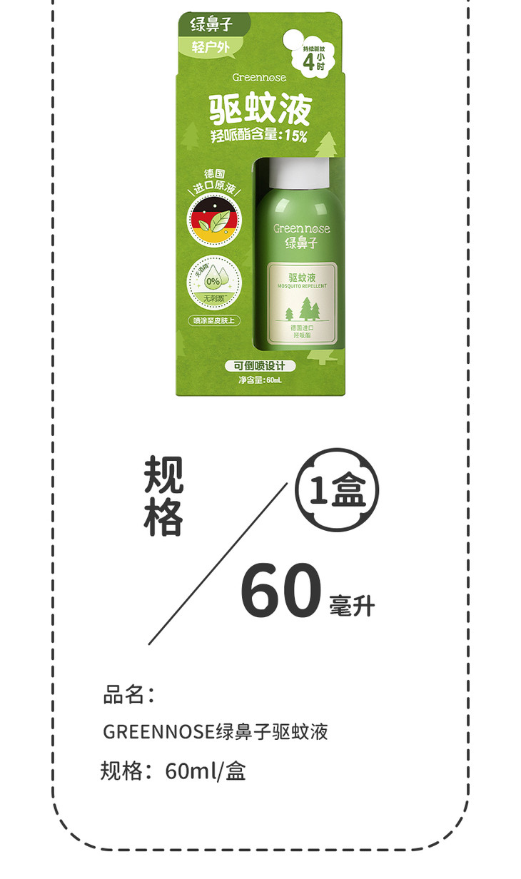 【25年新款】绿鼻子羟哌酯驱防蚊喷雾蚊怕水强效儿童宝宝户外便携驱蚊液花露水