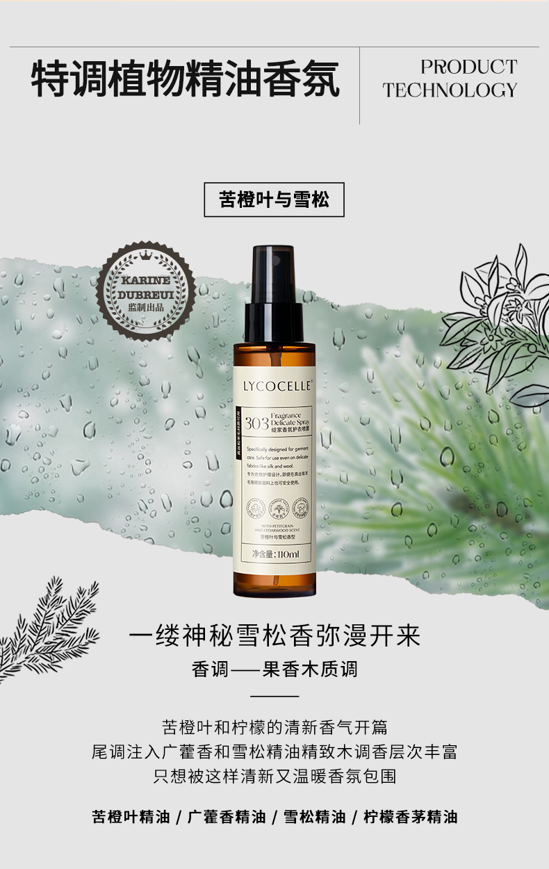 【抗静电】绽家衣物香氛喷雾除味喷雾 110ml 持久留香羊绒衫毛衣免洗抑菌