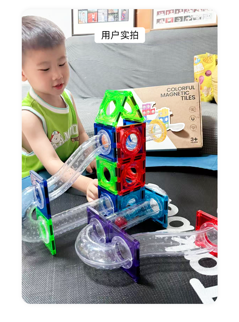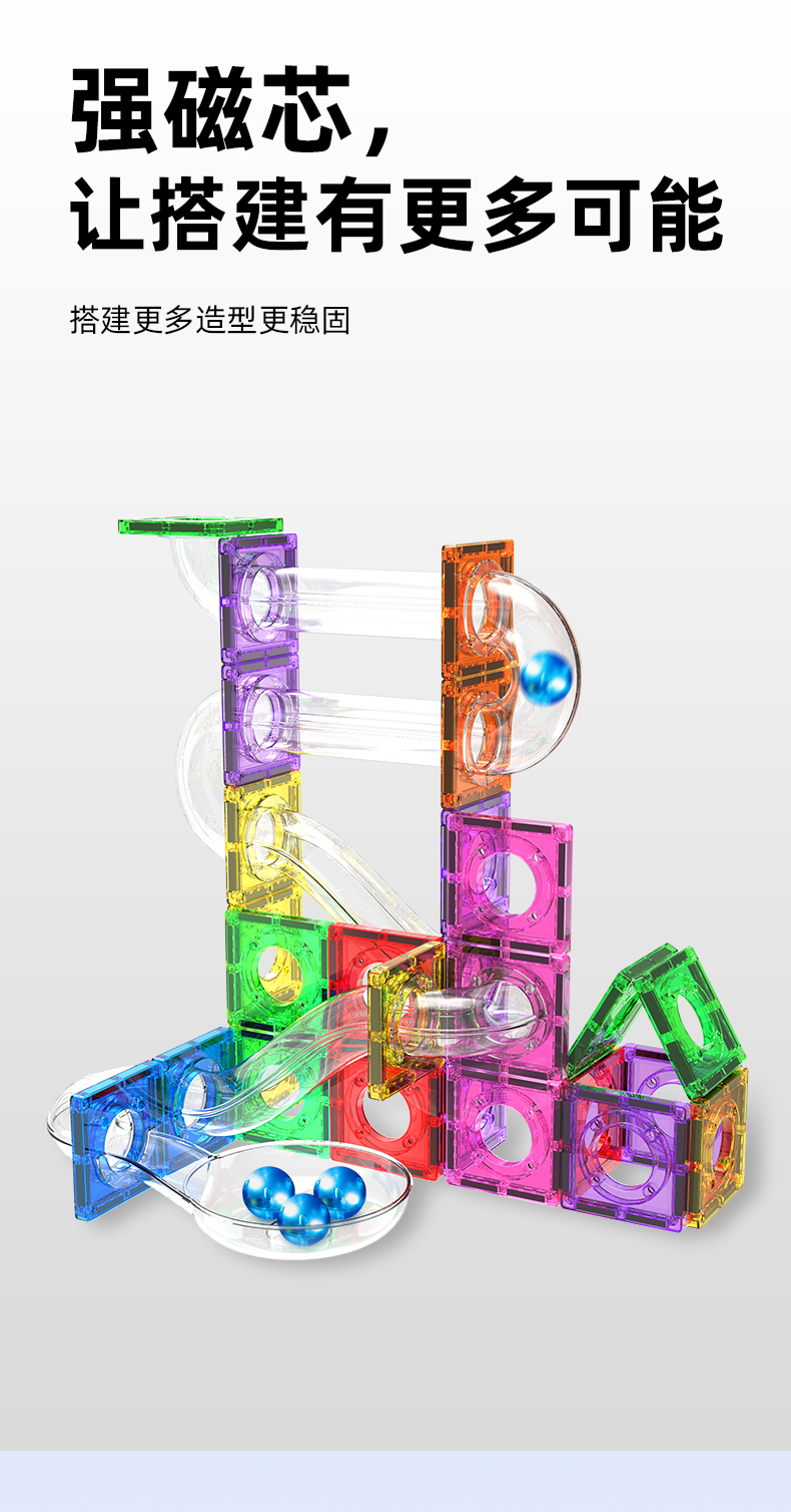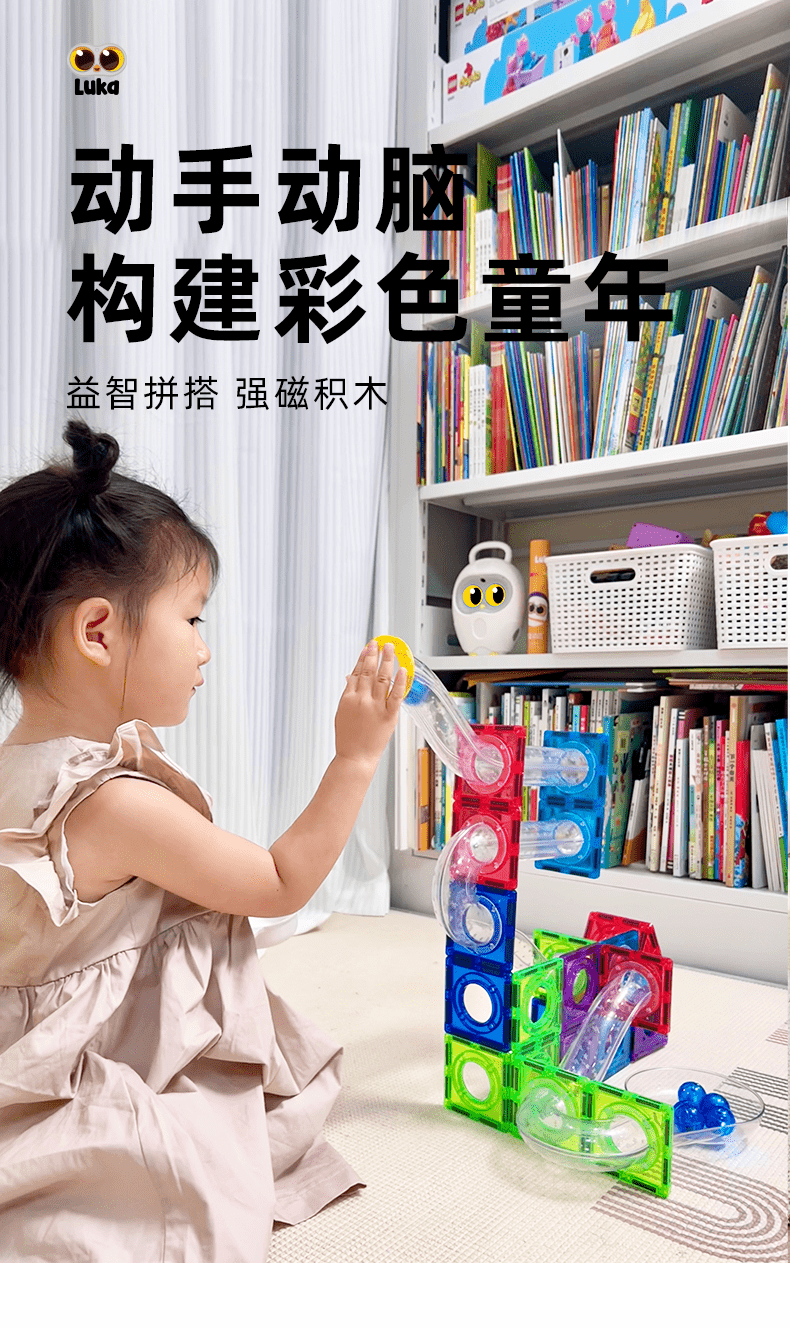 【赠磁力小车】Luka卢卡钻面管道磁力积木110P 正方形 三角形管道强磁小车三角磁力片 儿童益智玩具新年礼物