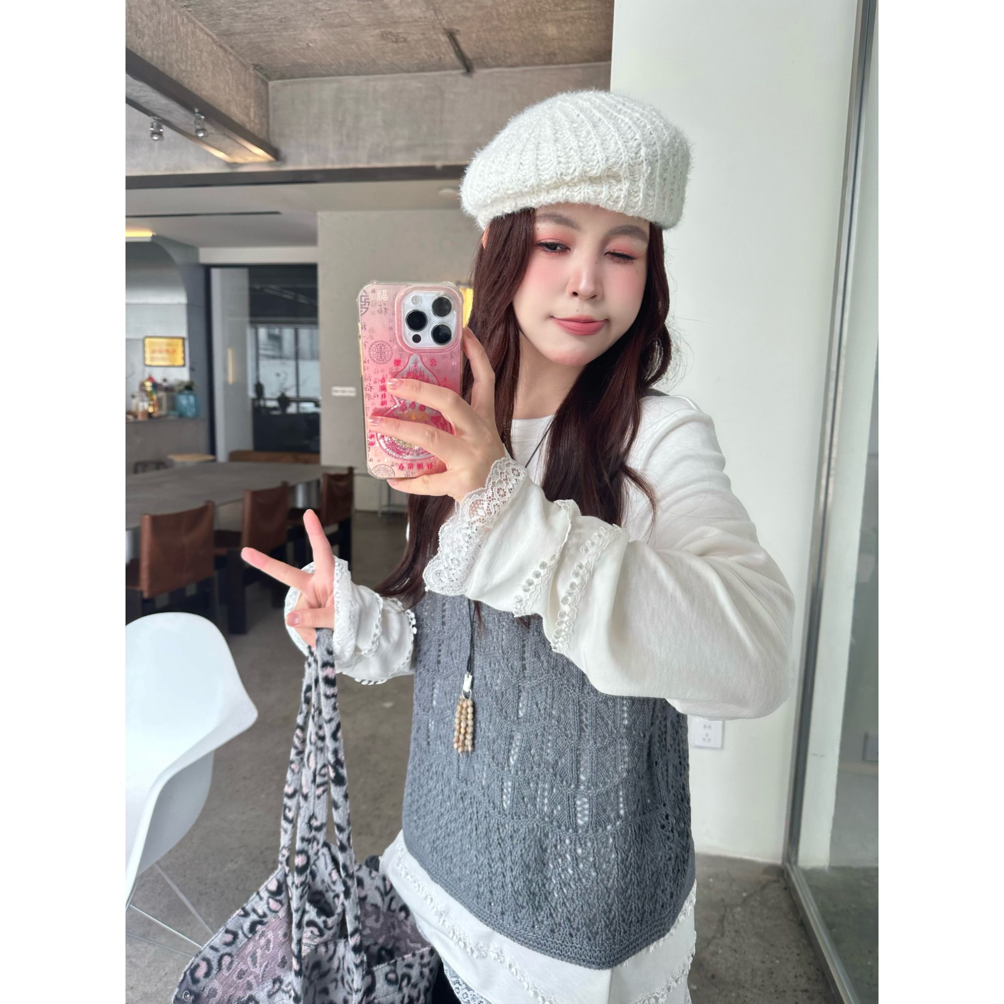 25AW 甜甜同款【南坪晚风】镂空钩花针织背心圆领长袖蕾丝小衫套装