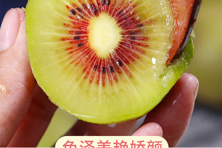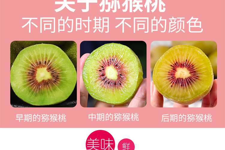 2.未完全成熟的猕猴桃果心红色较浅,需放置至软化后红色会逐渐加深。