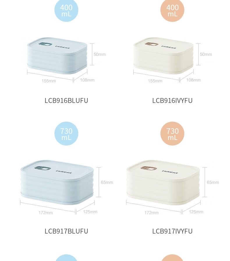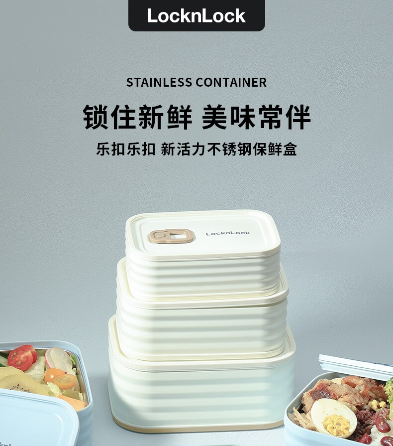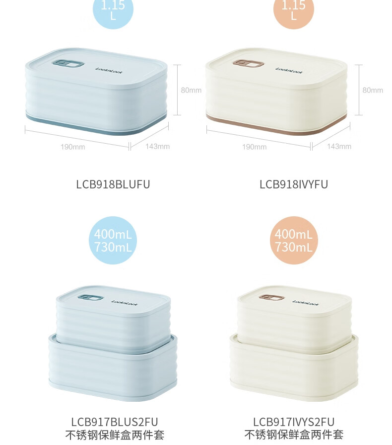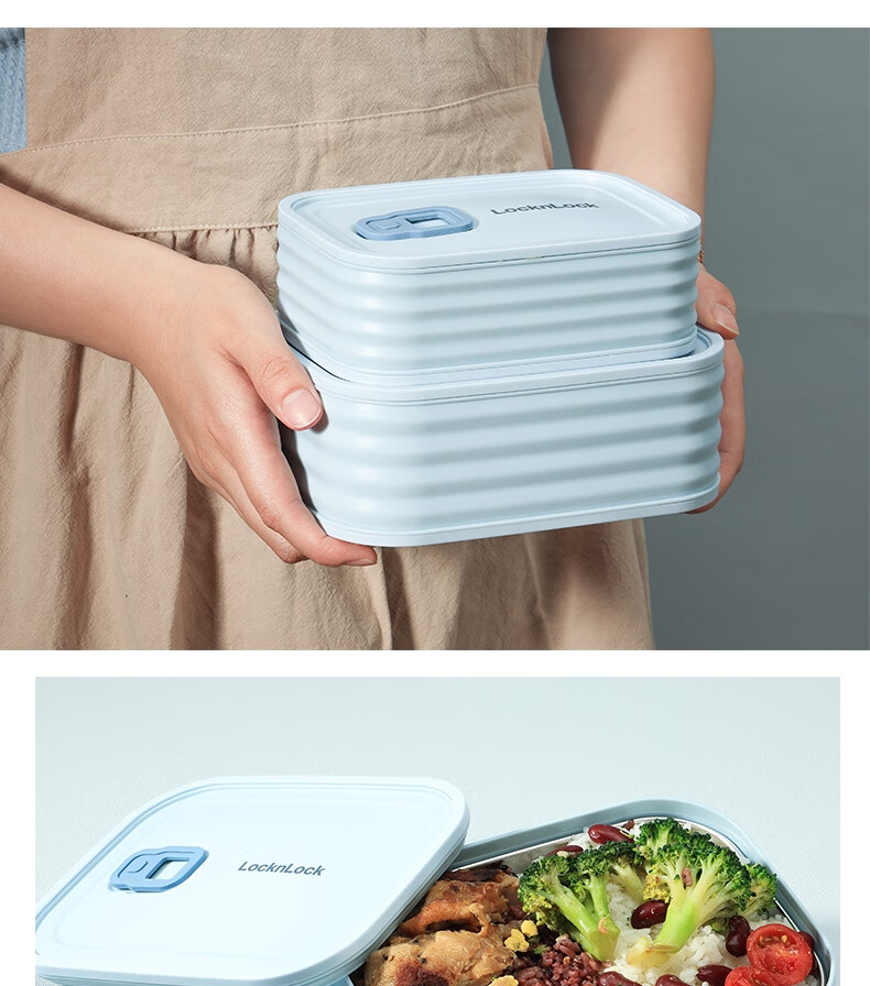 乐扣乐扣 新活力不锈钢保鲜盒蓝色2件套(400mL+730mL) LCB917BLUS2FU