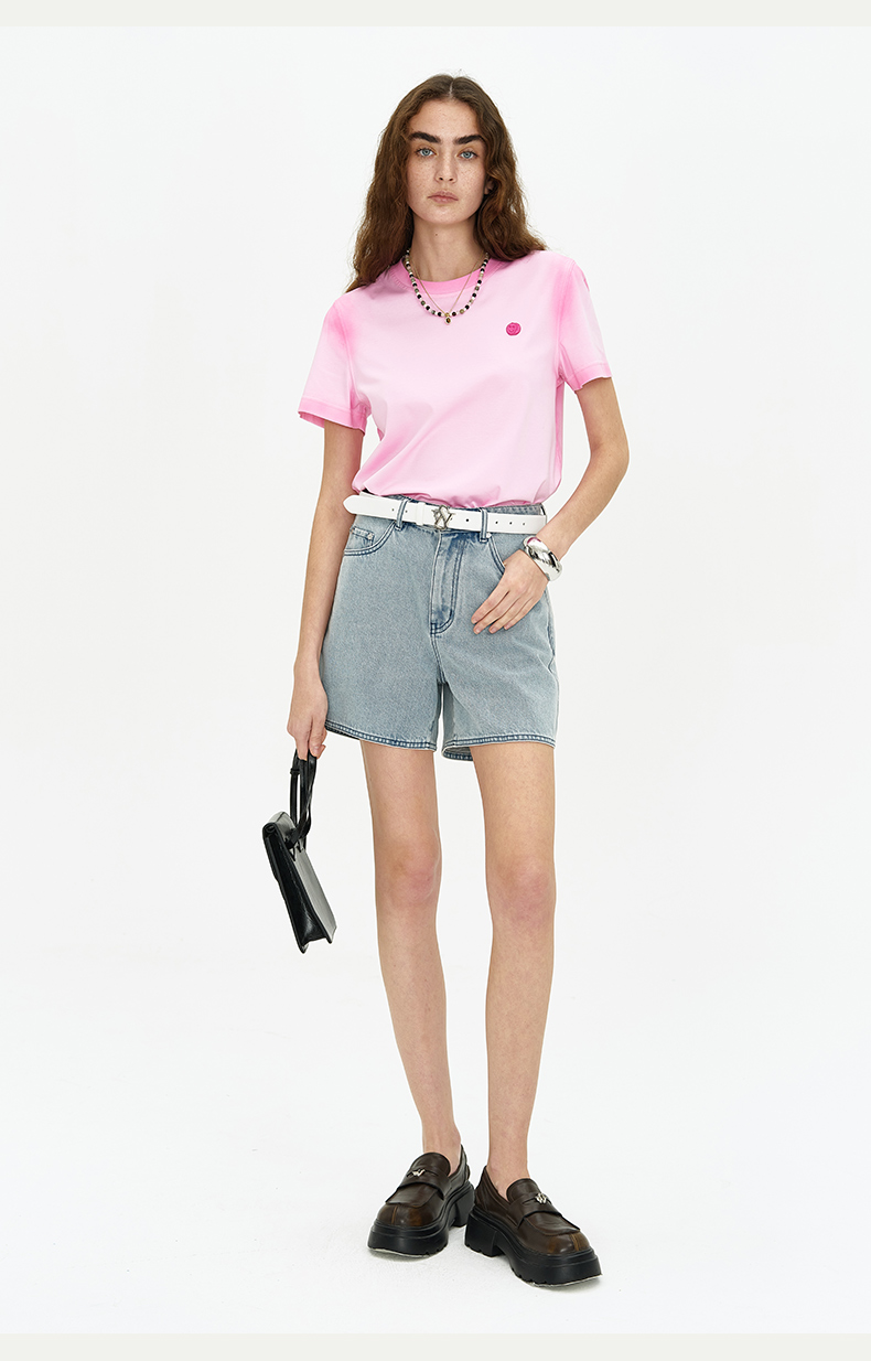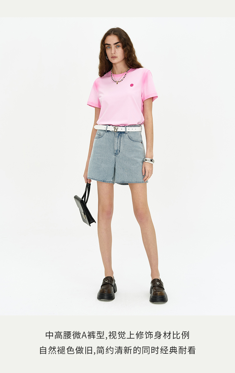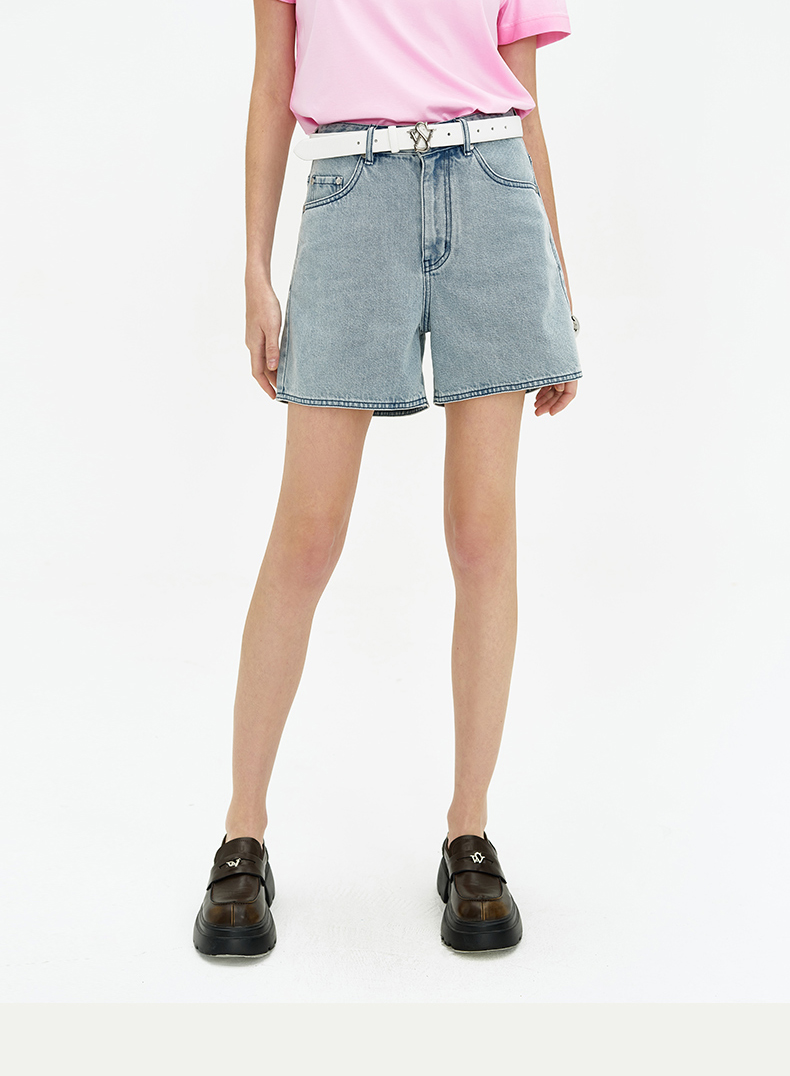 SELFWHO 纯棉浅色牛仔短裤女2024新款夏季小个子高腰休闲直筒裤子