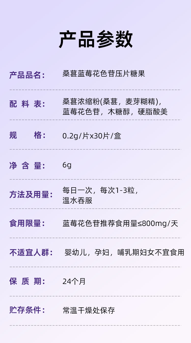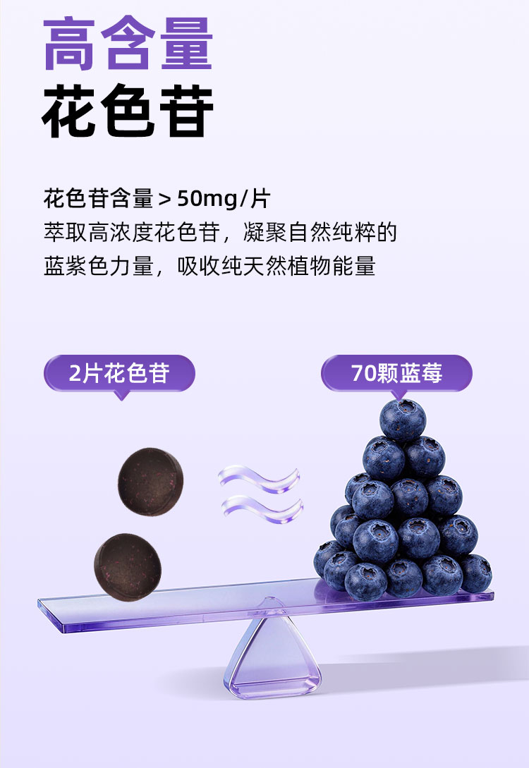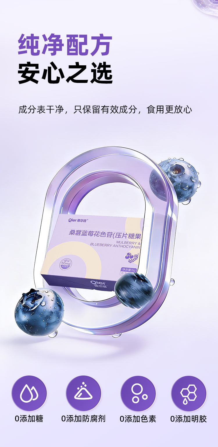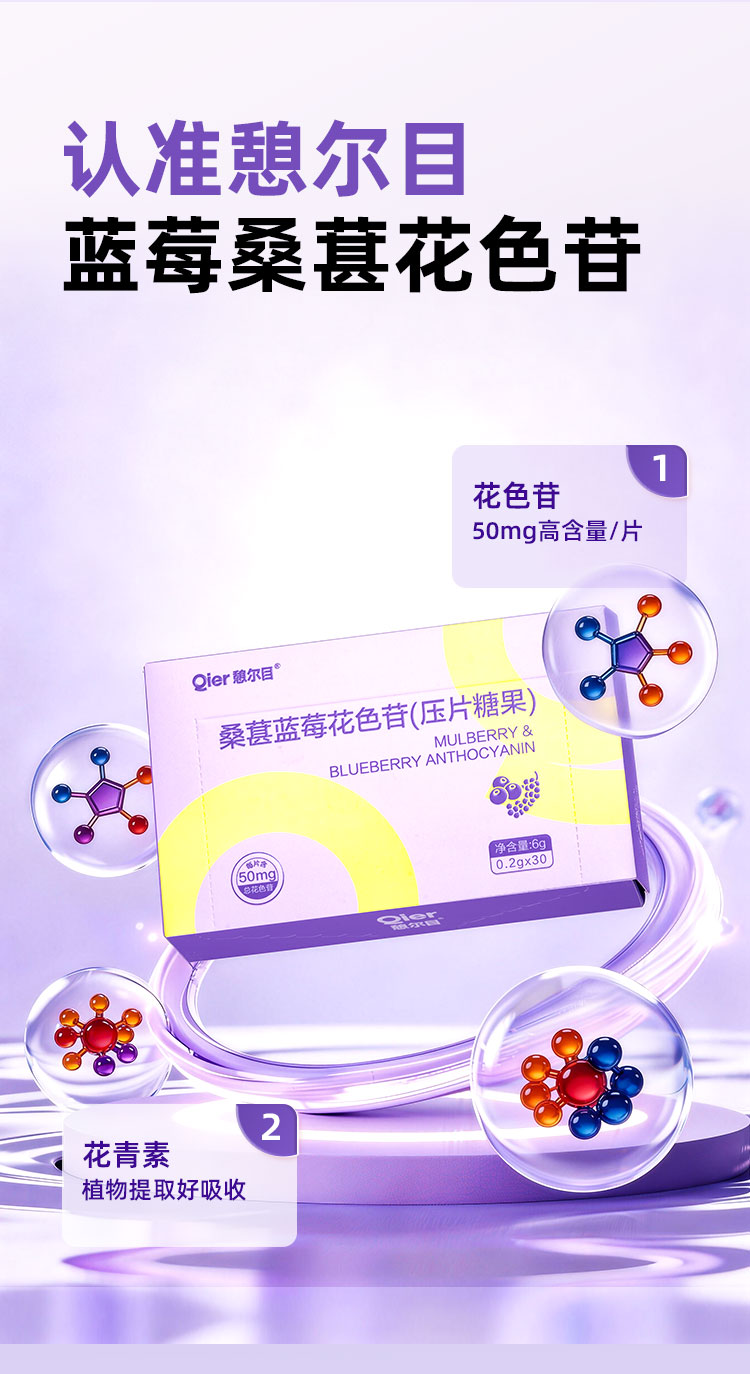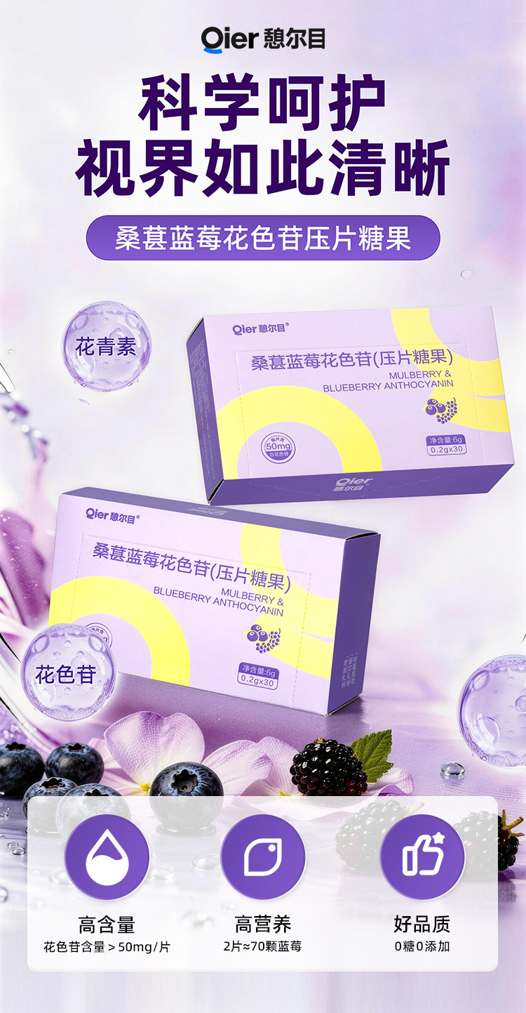 憩尔目 桑葚蓝莓花色苷压片 富含花青素含花色苷50mg/片 每次1-3粒