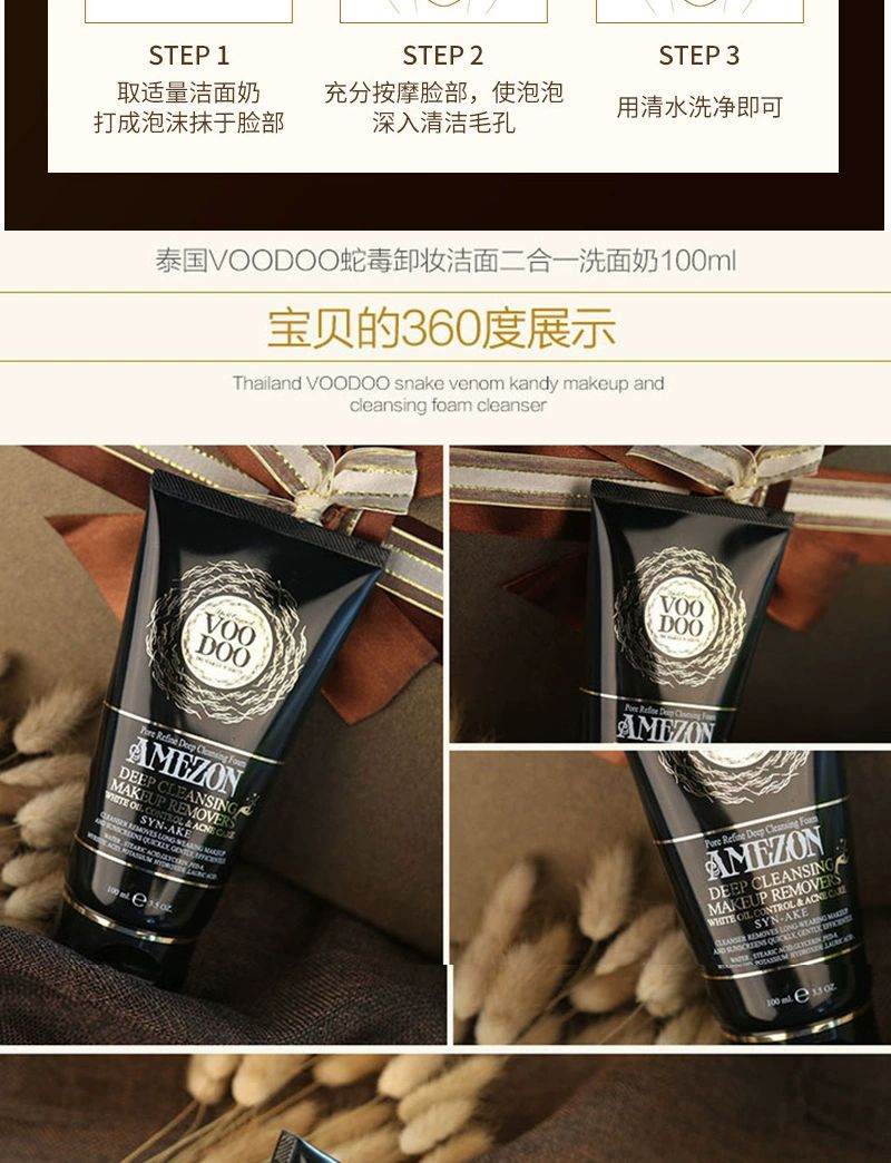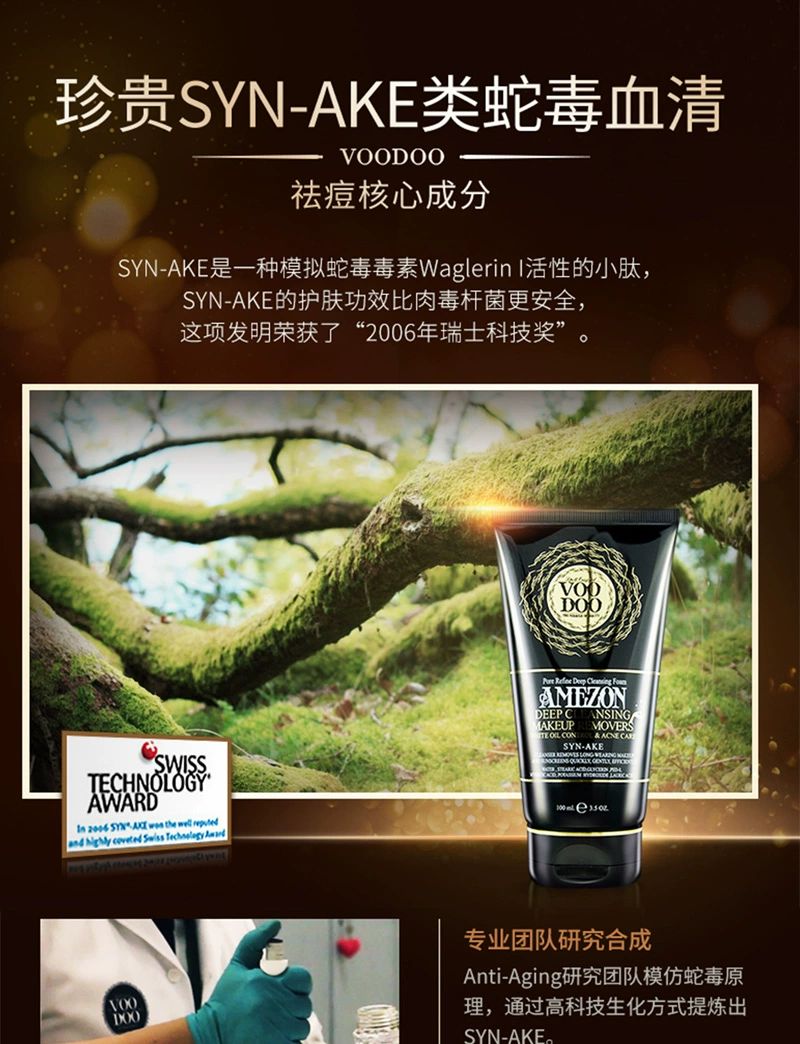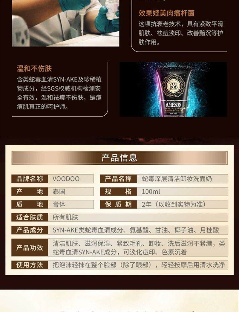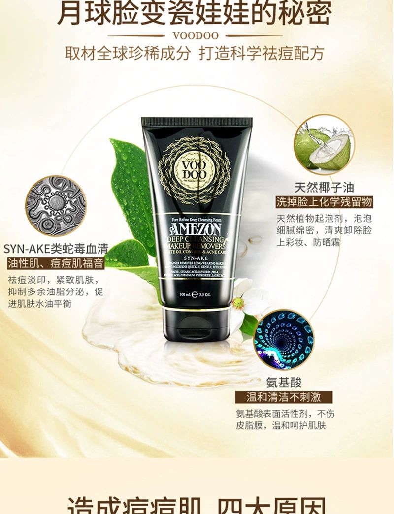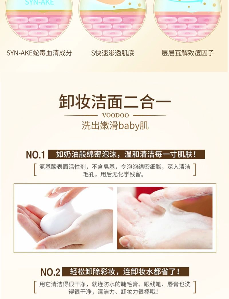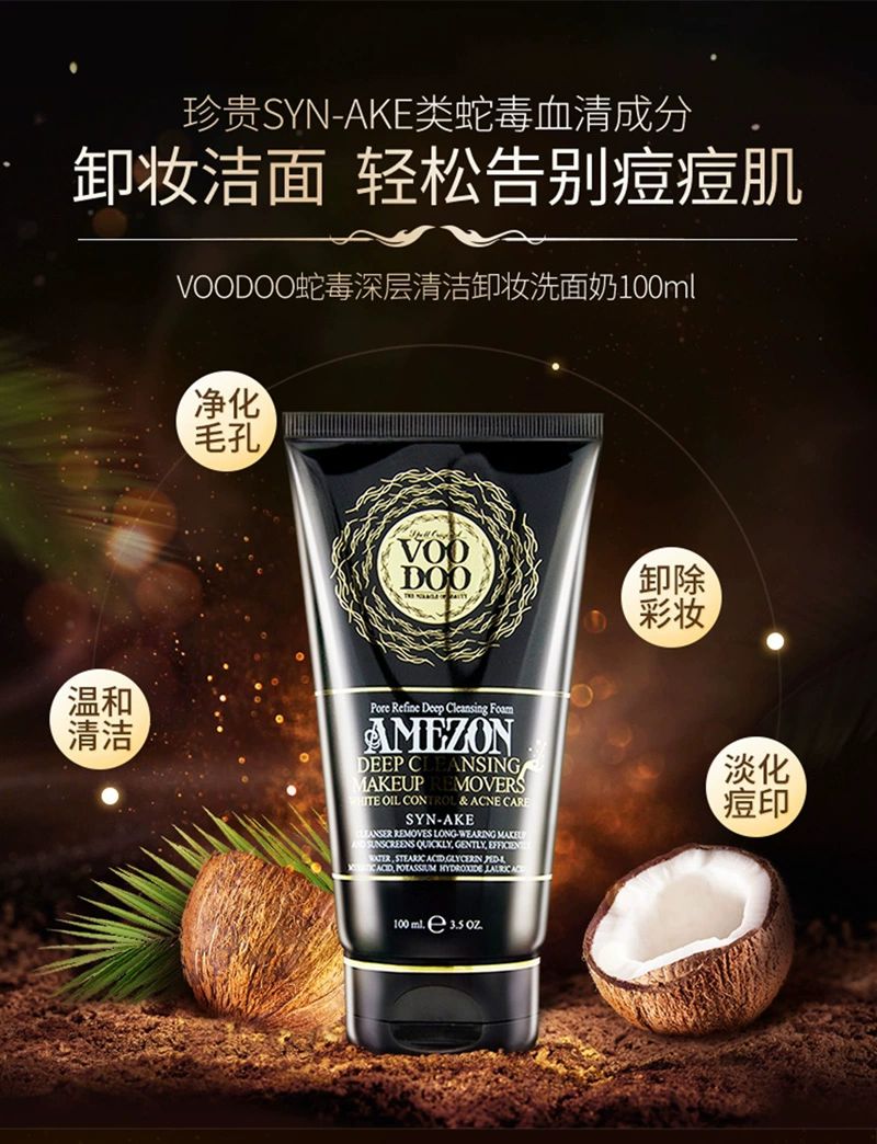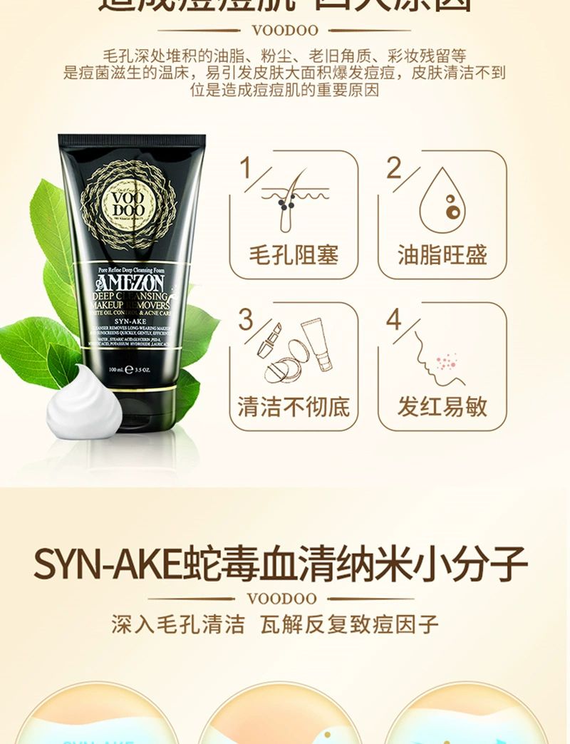 泰国VOODOO蛇毒清洁卸妆洗面奶100ml卸妆洁面轻松告别痘痘肌净化毛孔温和清洁卸除彩妆淡化痘印