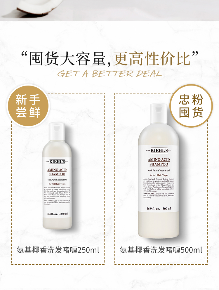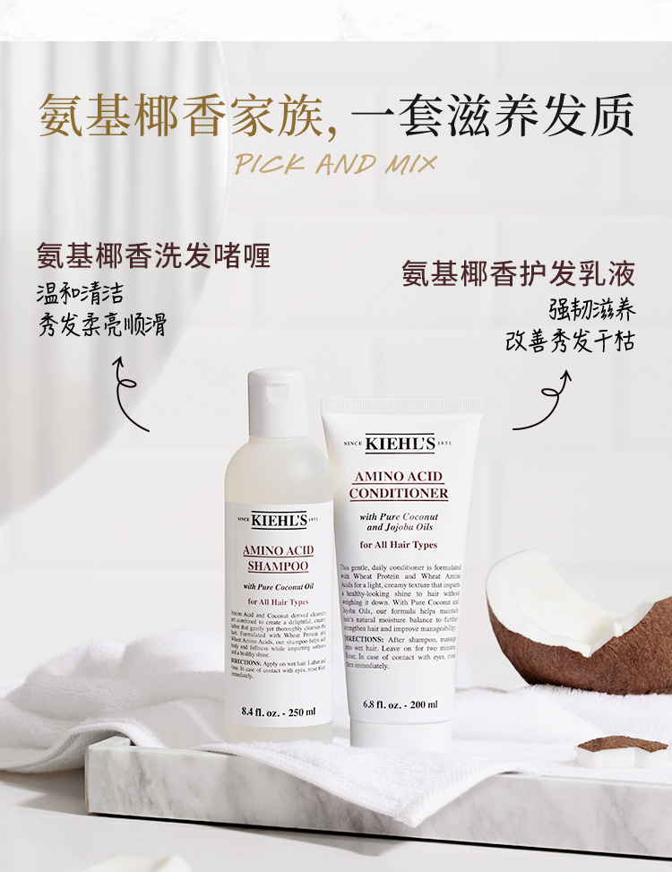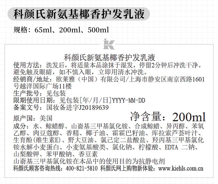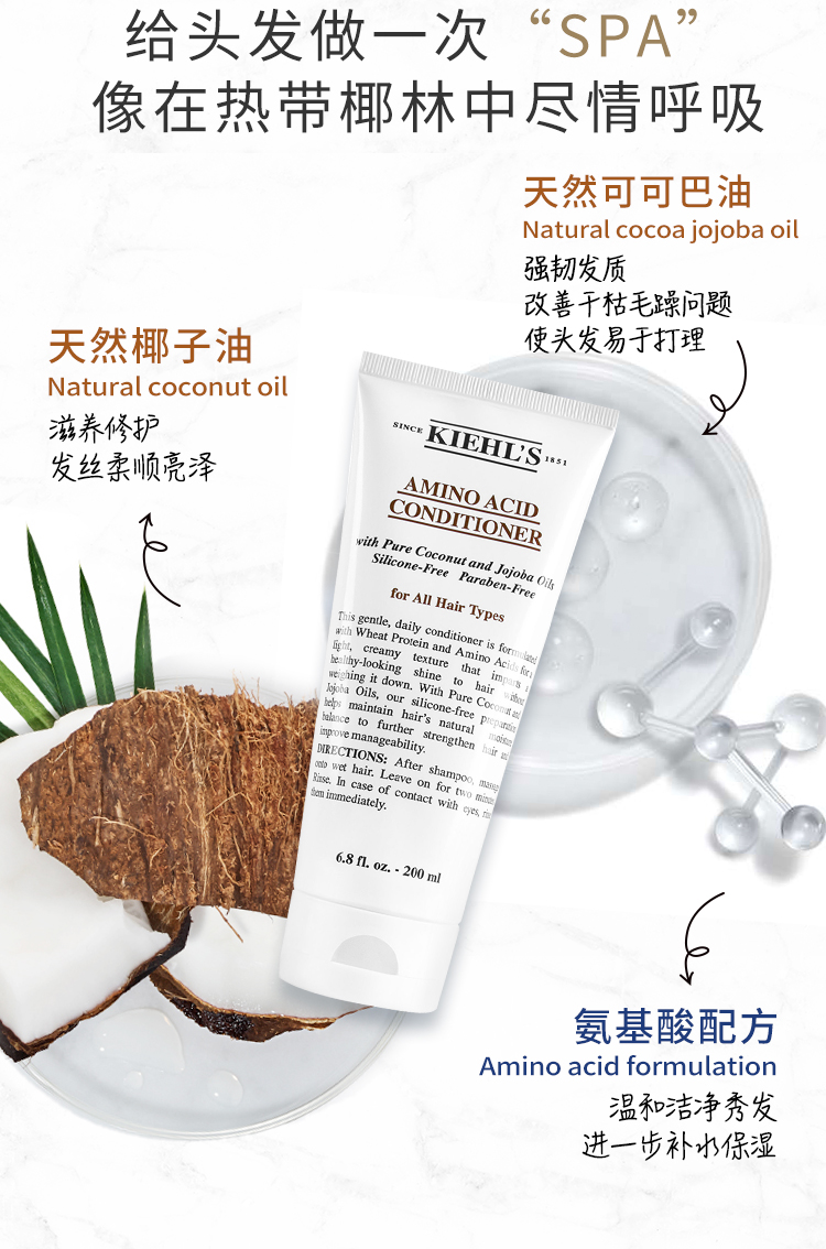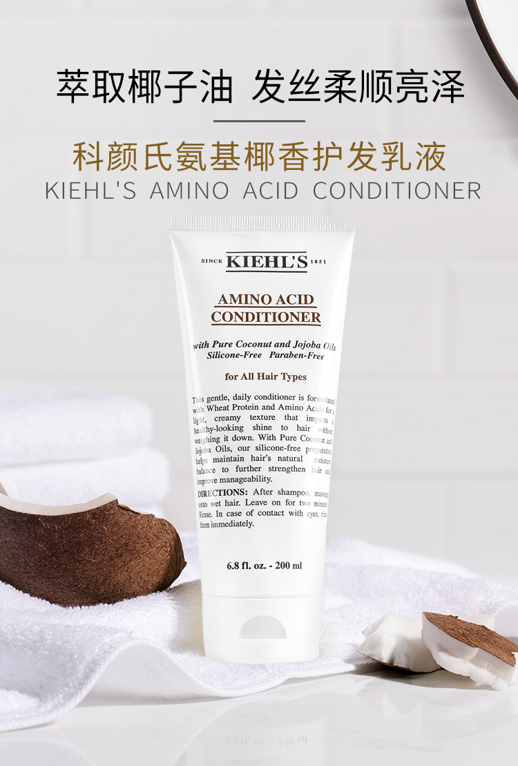 科颜氏(Kiehl's)氨基椰香护发乳液200ml 护发素润发乳养护保湿芳香生日礼物送爱人 心选到家