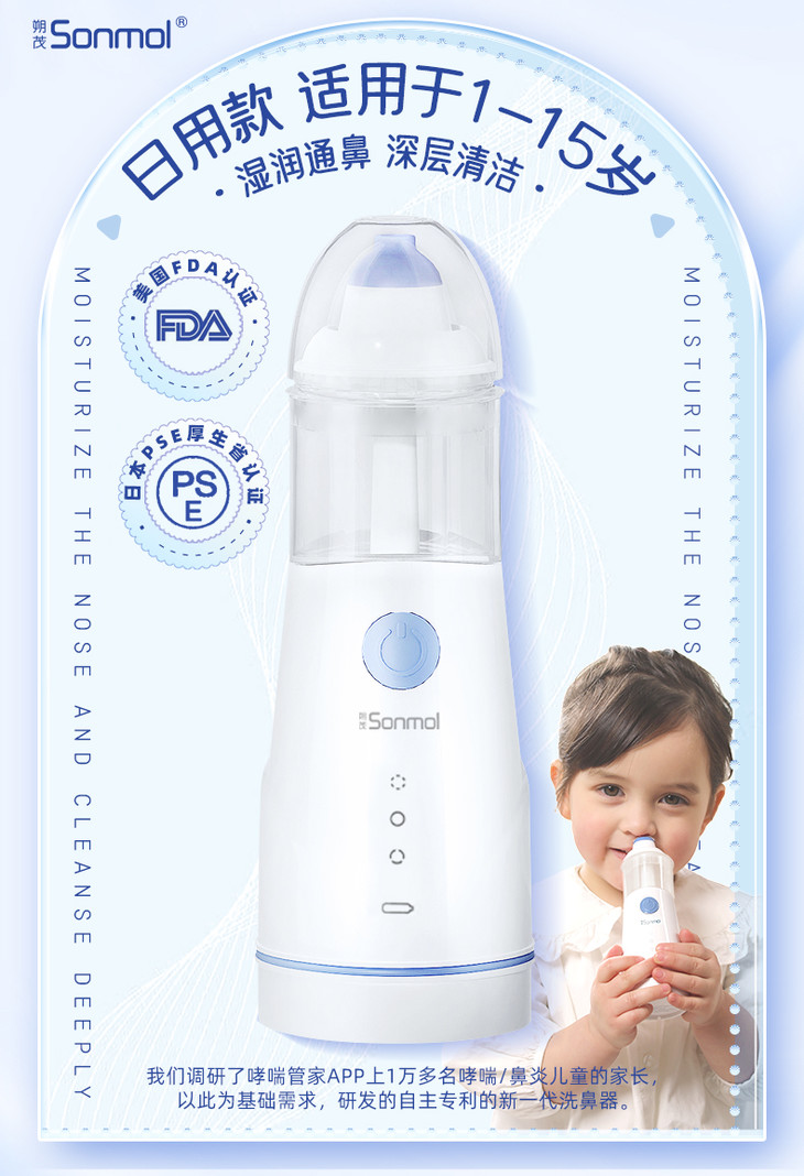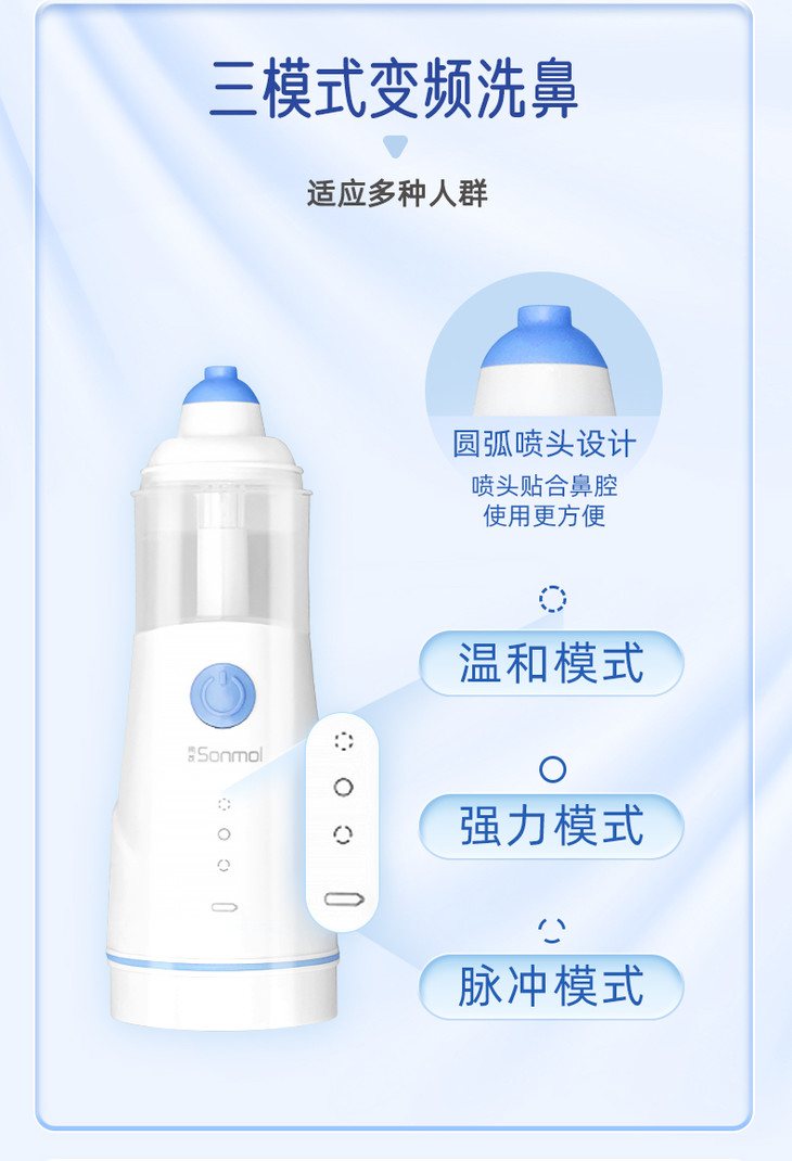 Sonmol朔茂电动喷雾洗鼻器/生理性海水鼻腔清洗液 15ml*30支 等渗 高渗 鼻炎婴幼儿童鼻腔冲洗盐水