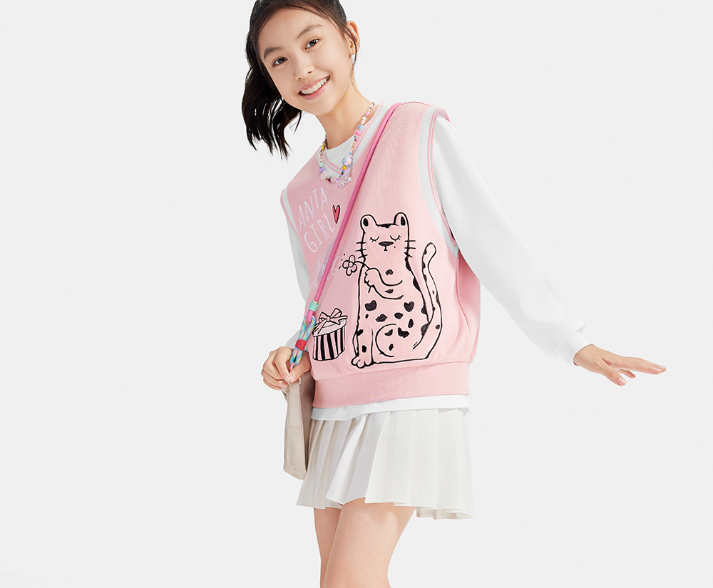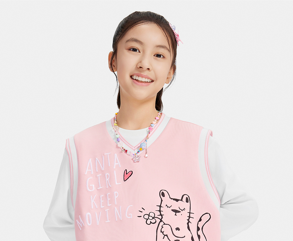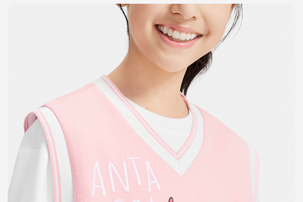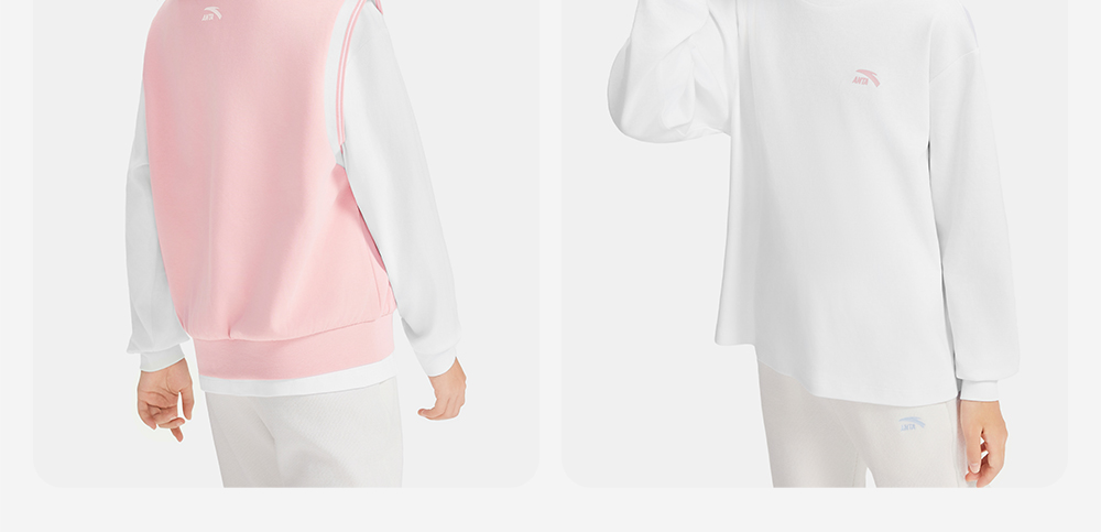 安踏儿童女童两件套上衣2025秋款舒适亲肤背心T恤两件套长袖卫衣362538610