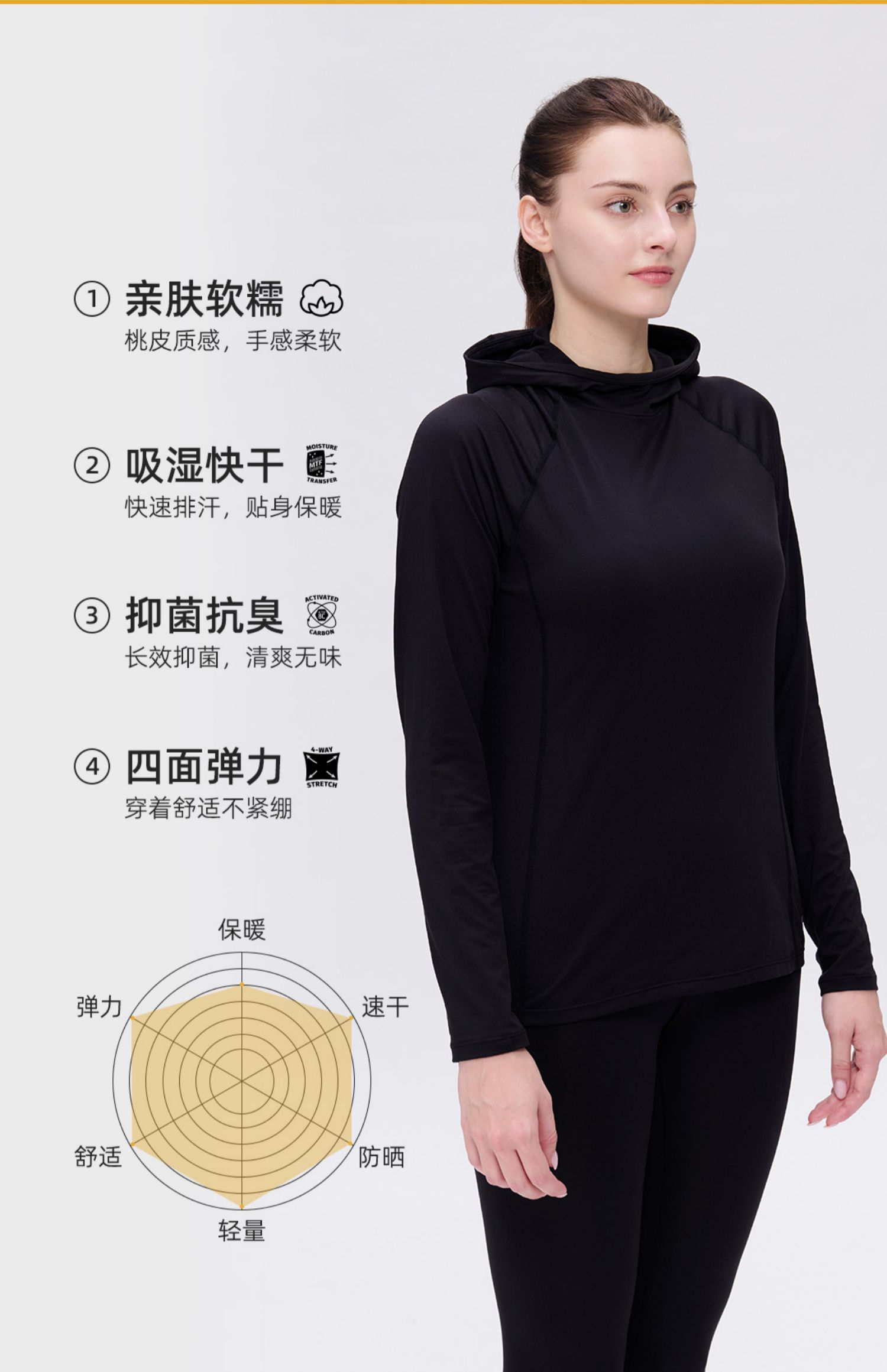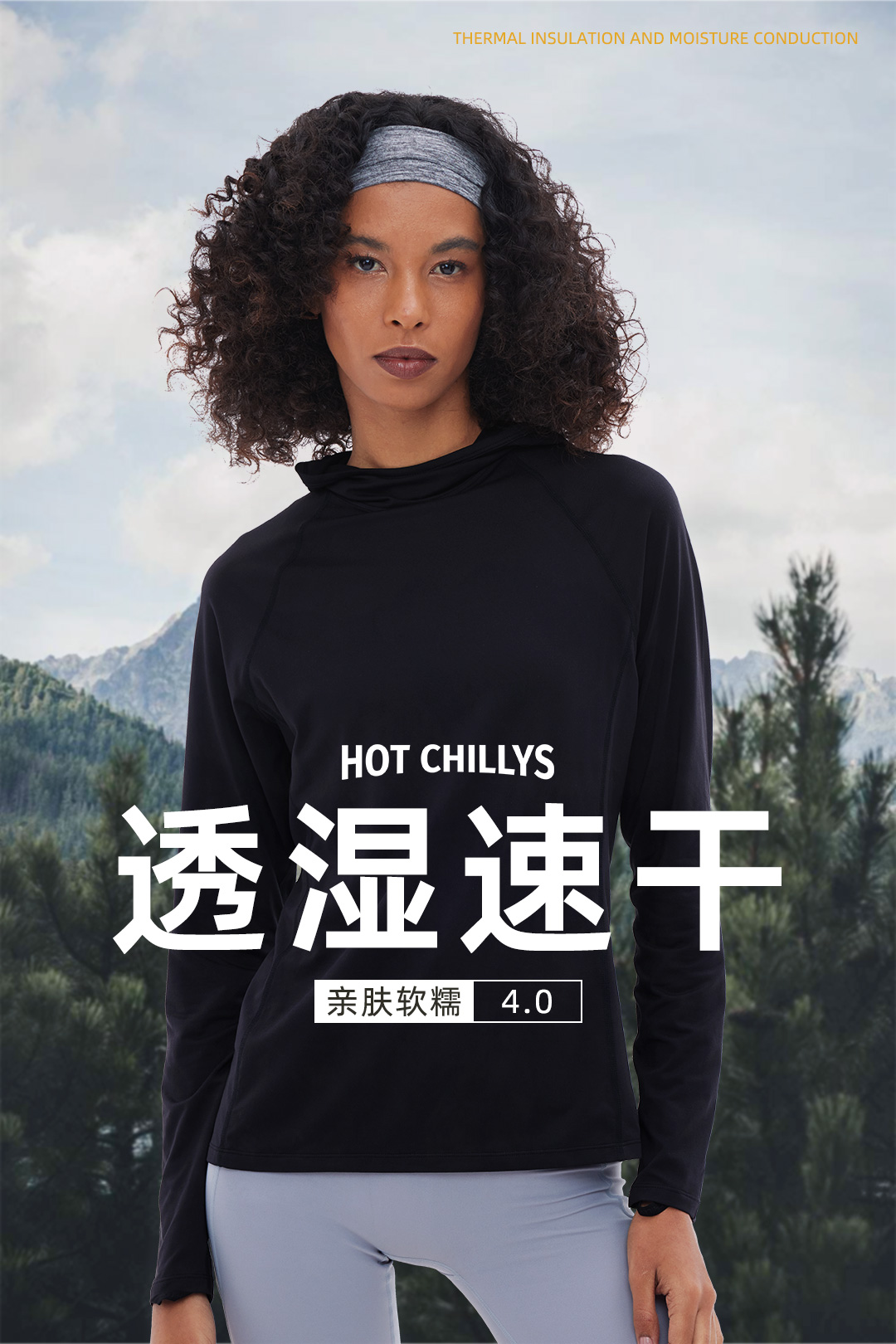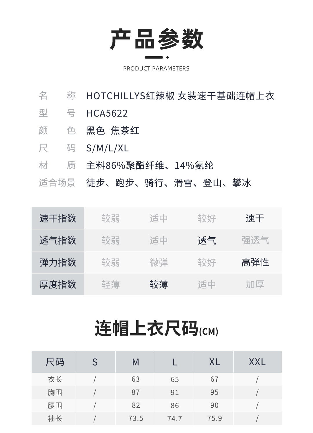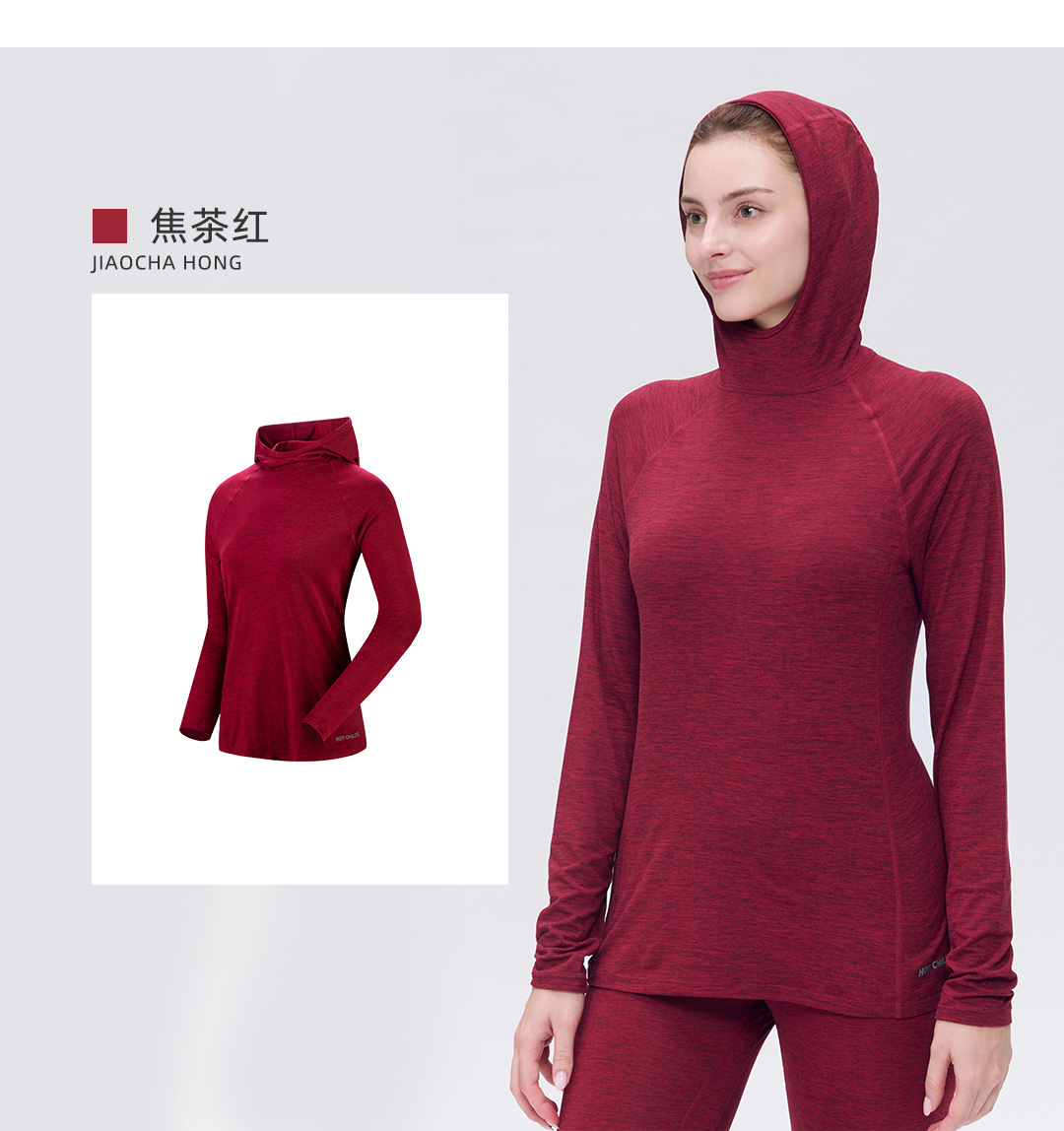Hotchillys热椒桃皮春秋户外训练上衣防晒连帽功能运动速干衣女5622