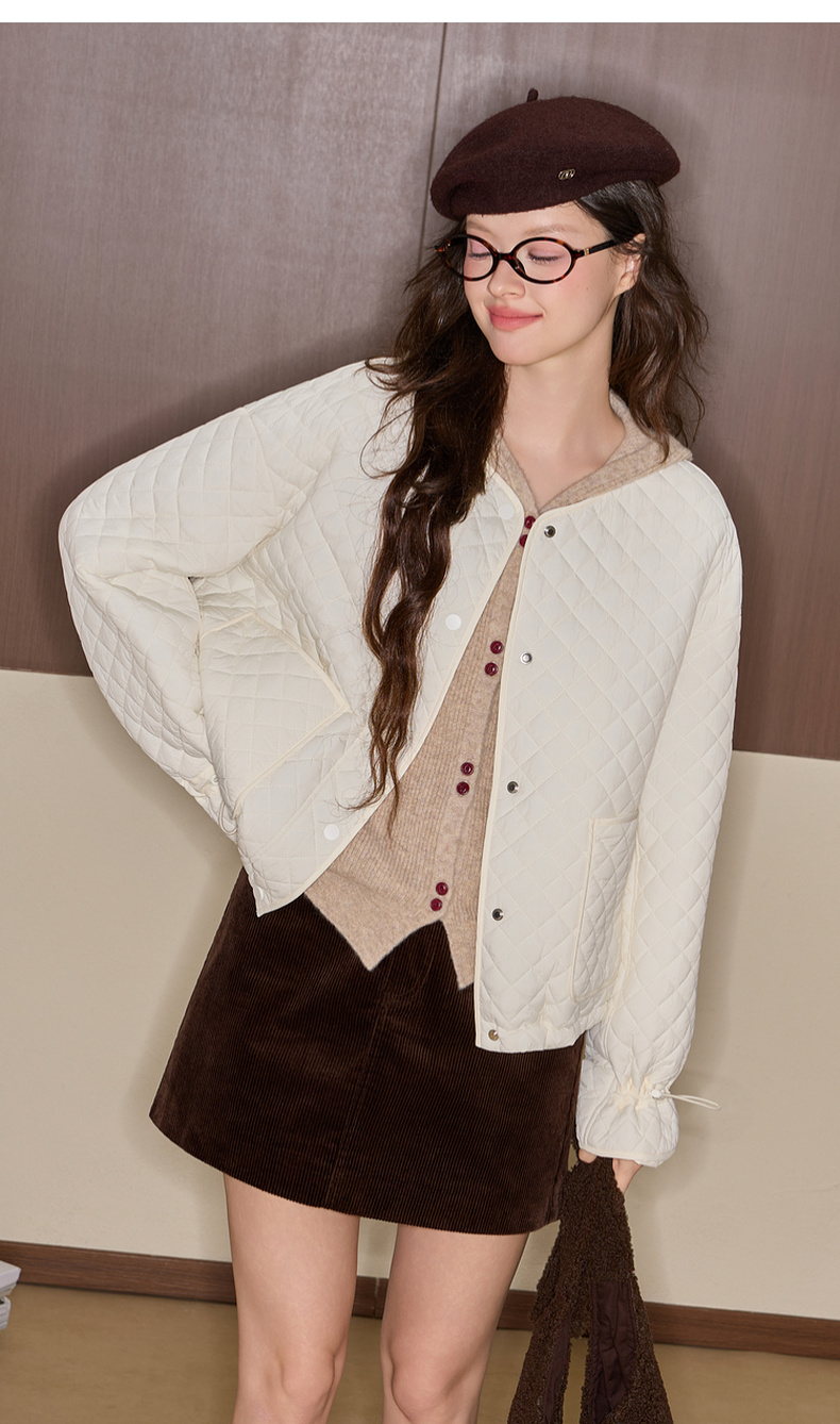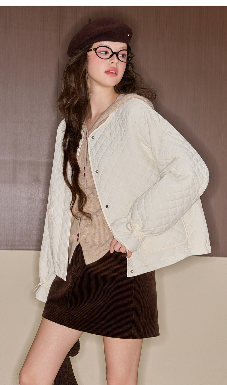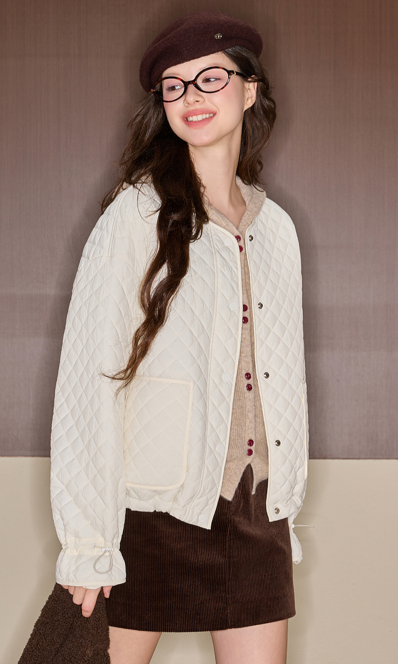 三彩独醒2025冬季新款绗缝棉衣圆领宽松落肩袖棉服休闲F