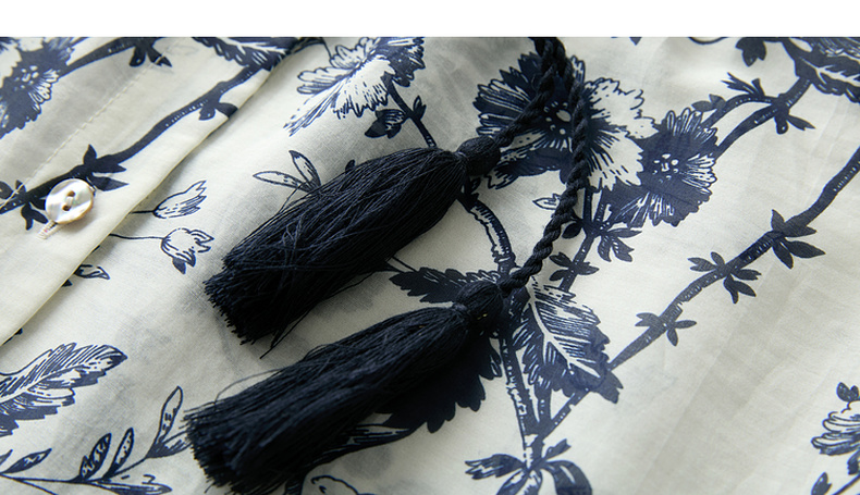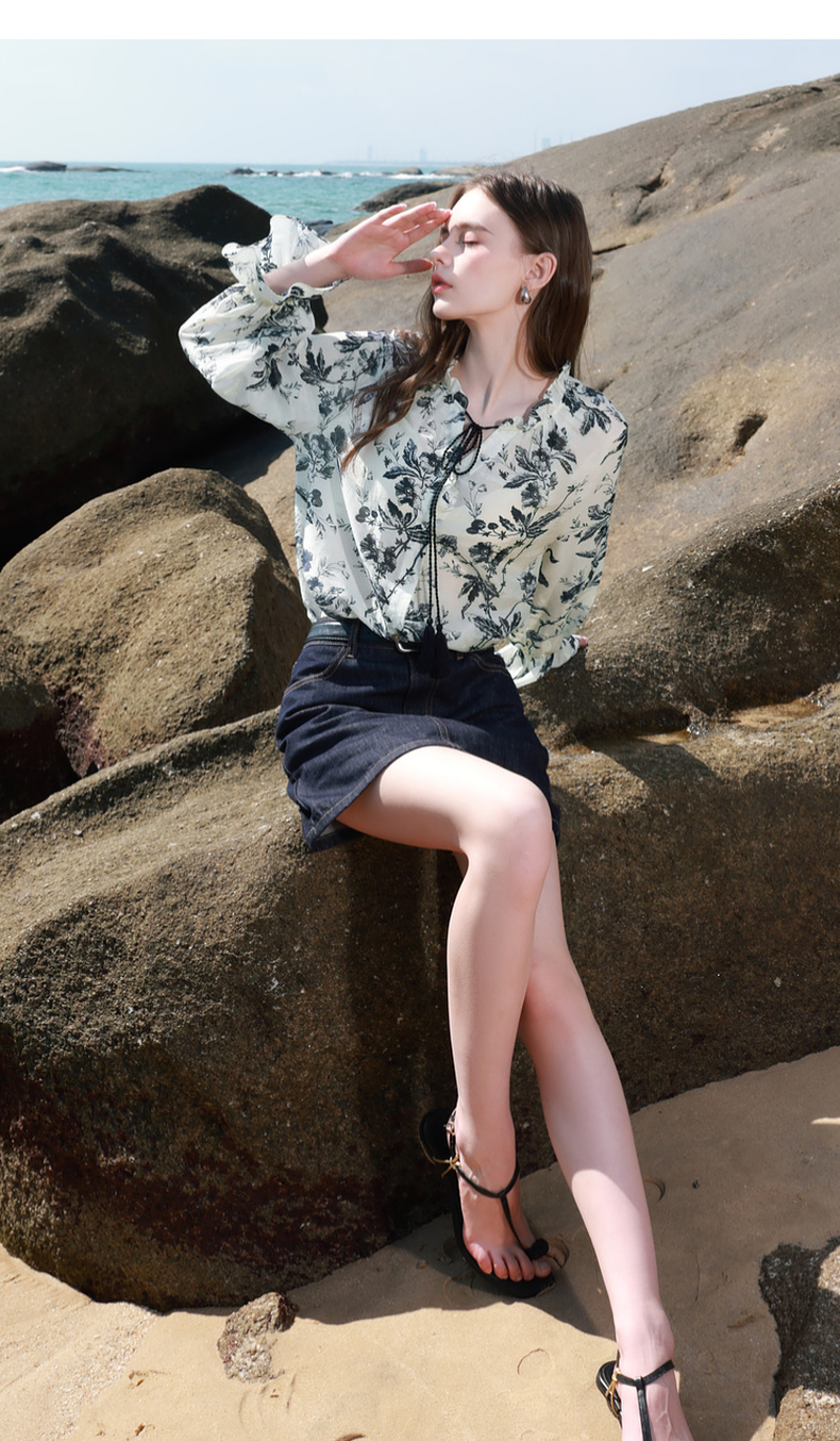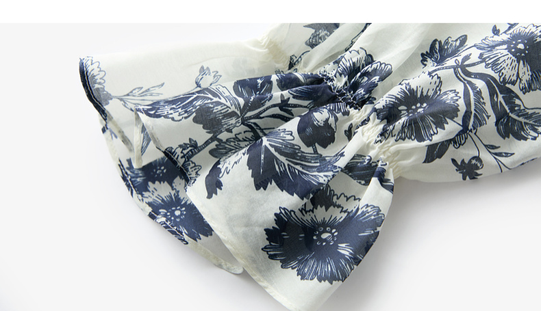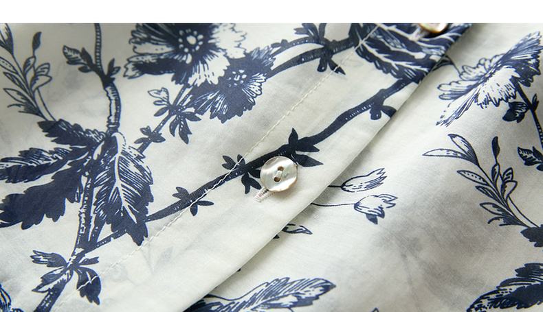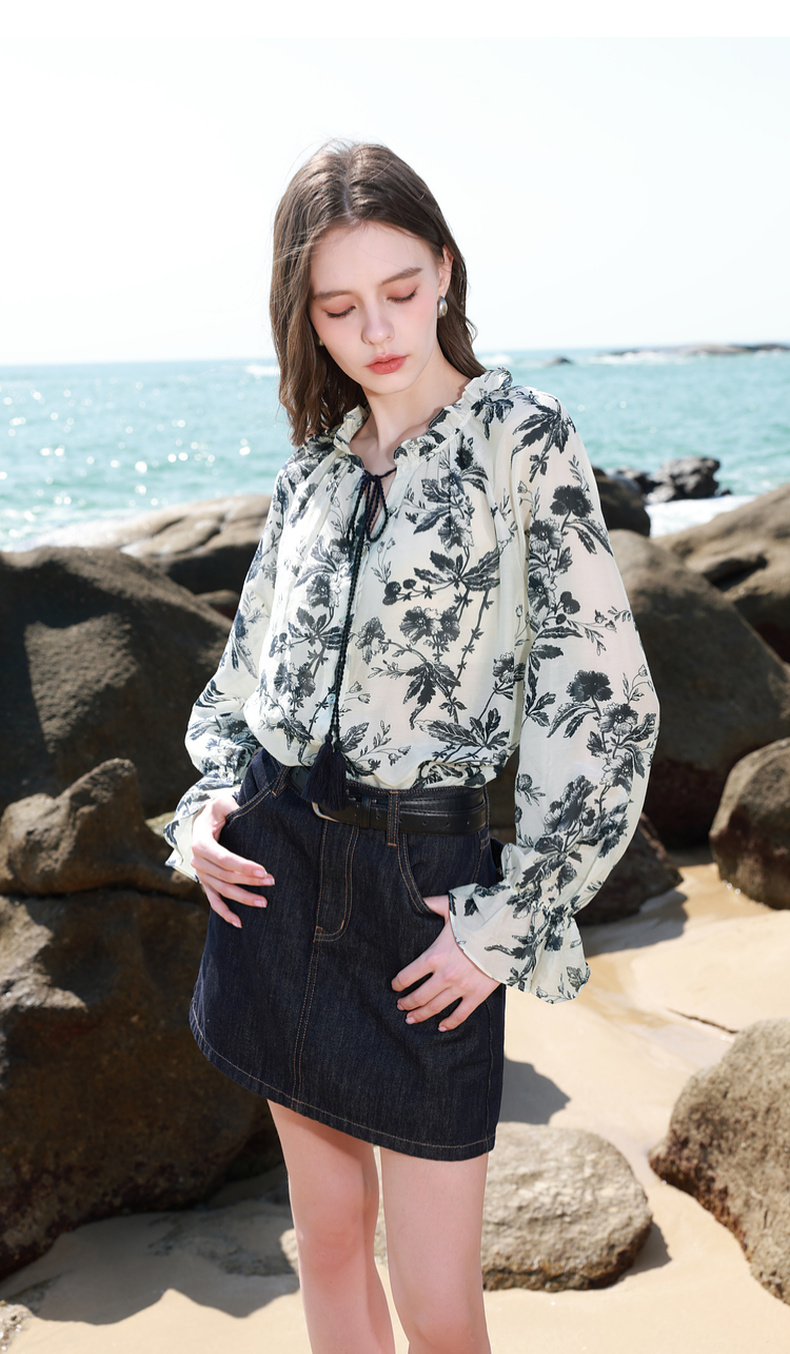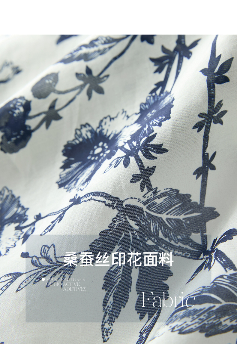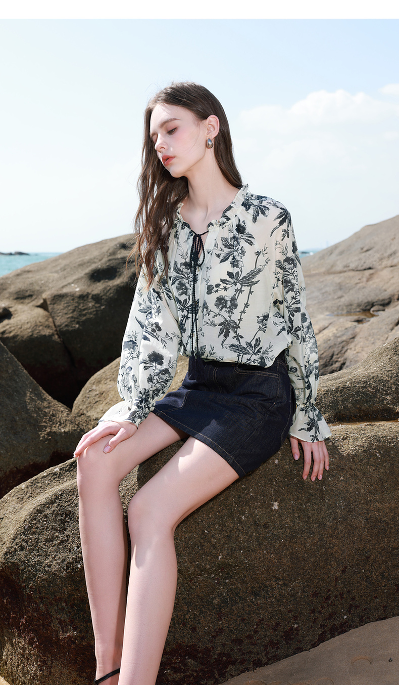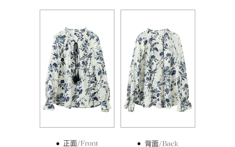 【桑蚕丝】三彩2026春季新款荷叶边圆领印花衬衫小衫衬衣宽松M
