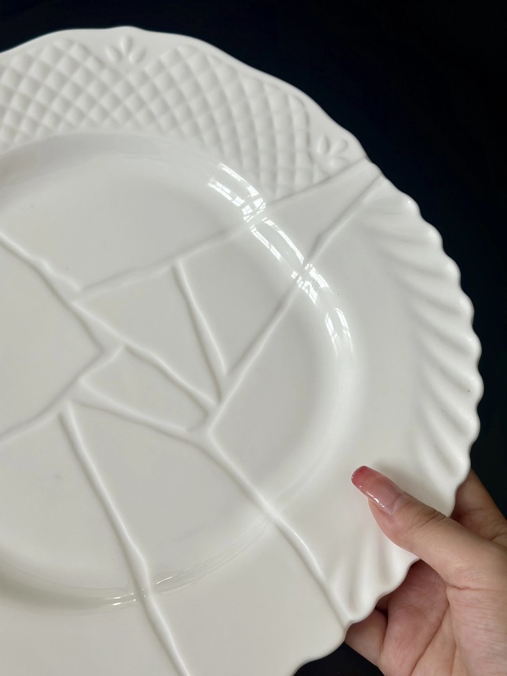【品名】白玉系列典雅月光盘/金缮系列不规则法式浮雕餐具套装