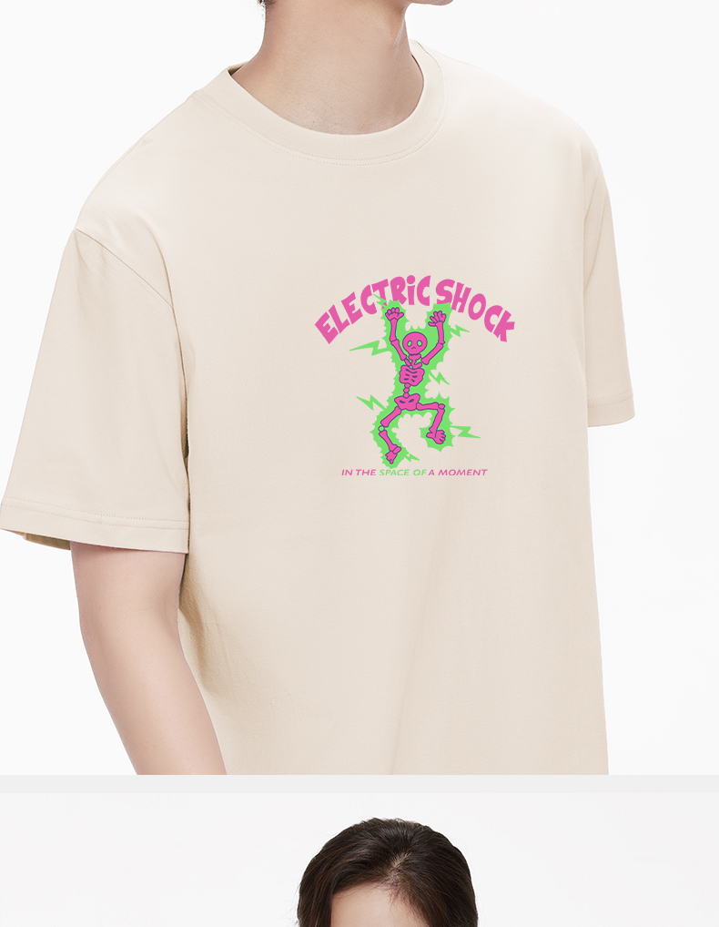 「棉的美学」ins美式炫酷触电骷髅印花设计T恤新款别致宽松百搭上衣