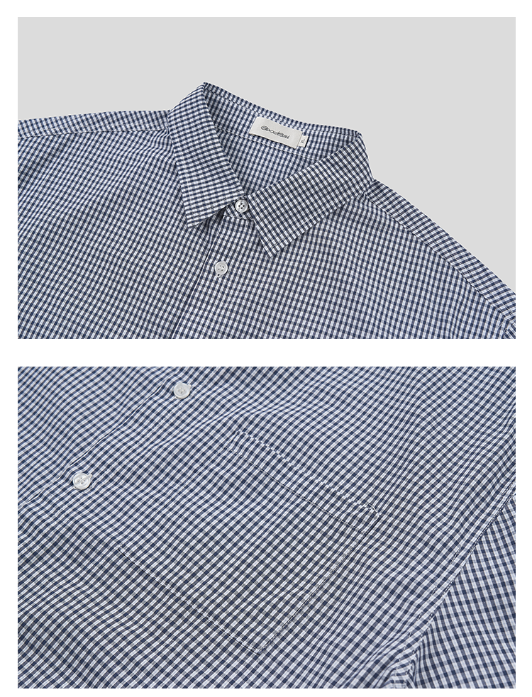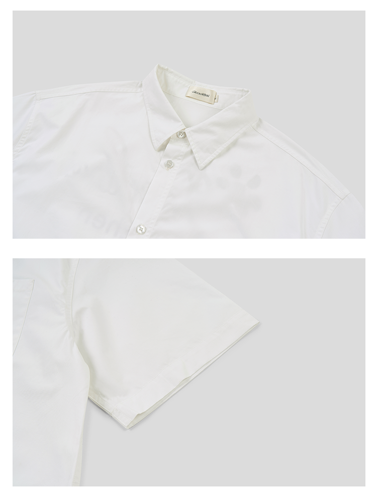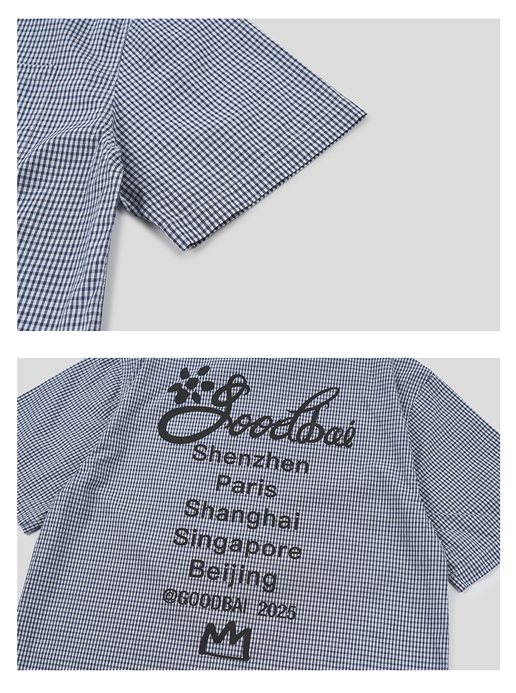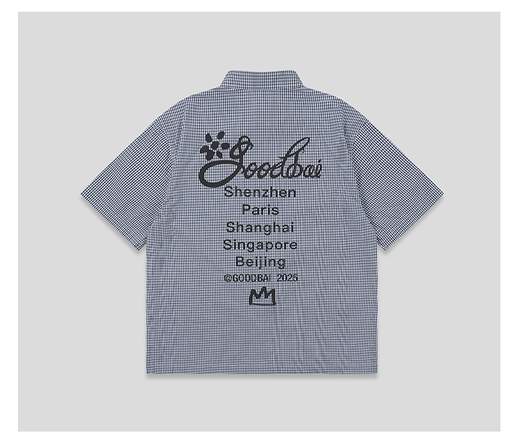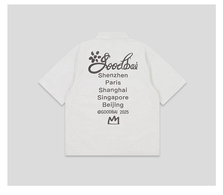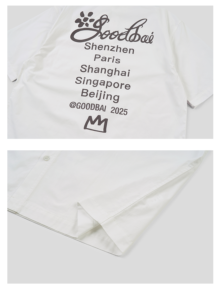 GOODBAI 花体太阳logo城市印花口袋翻领宽松短袖衬衫