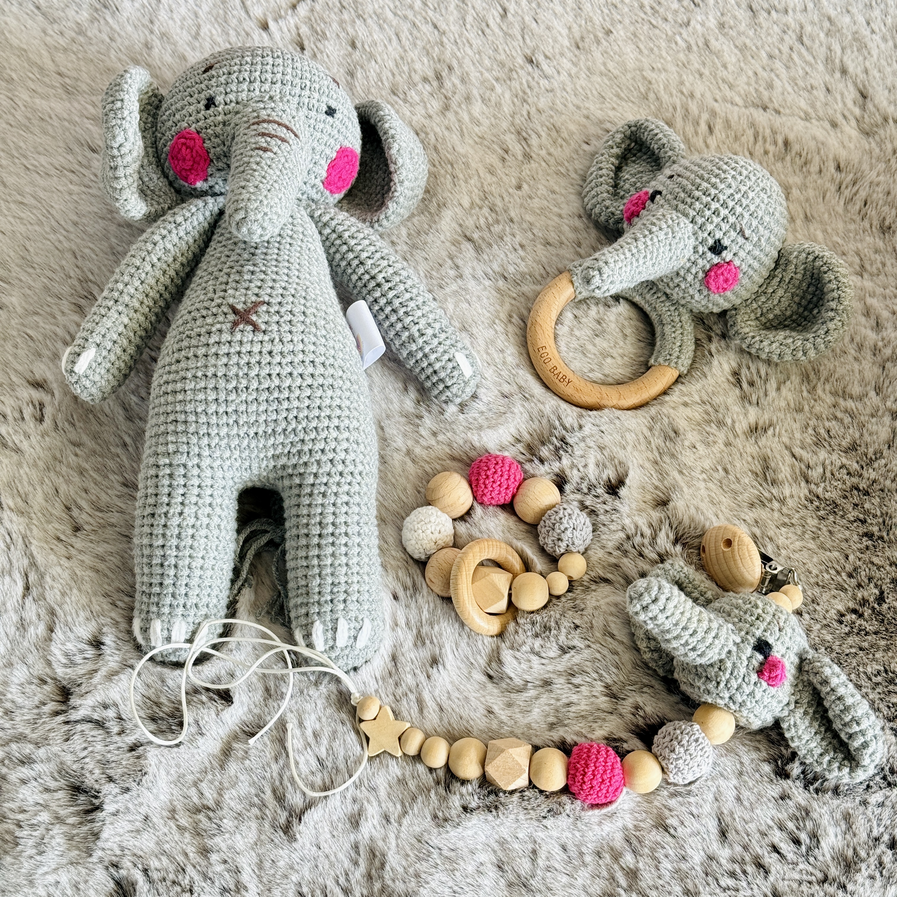 【大象 玩偶+手链+摇铃+奶嘴链】