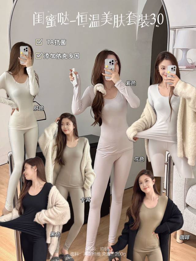 经典款🏆【闺蜜哒恒温美肤套装3.0版】6色可选,✅不松垮臃肿还能做内搭 ✅上身立显升温又薄又暖✅整体轻薄、柔软、保暖