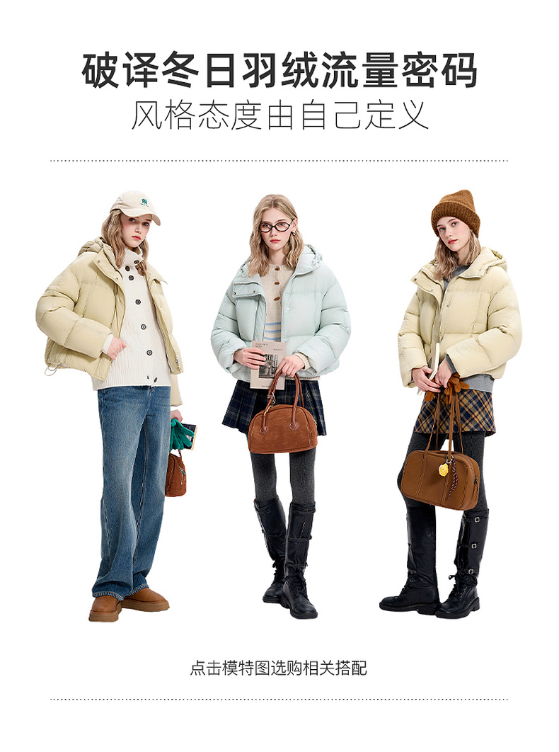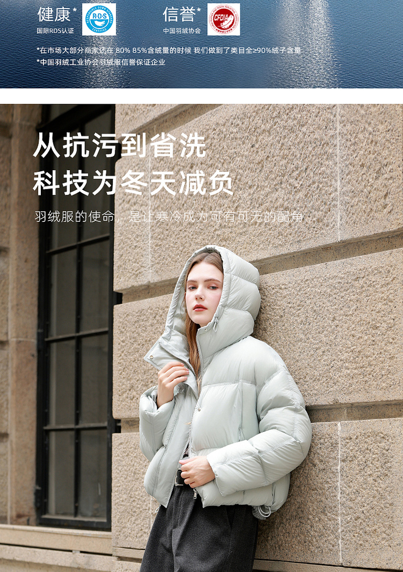 【90白鹅绒】三彩2025冬季新款短款鹅绒服防水易打理羽绒服M