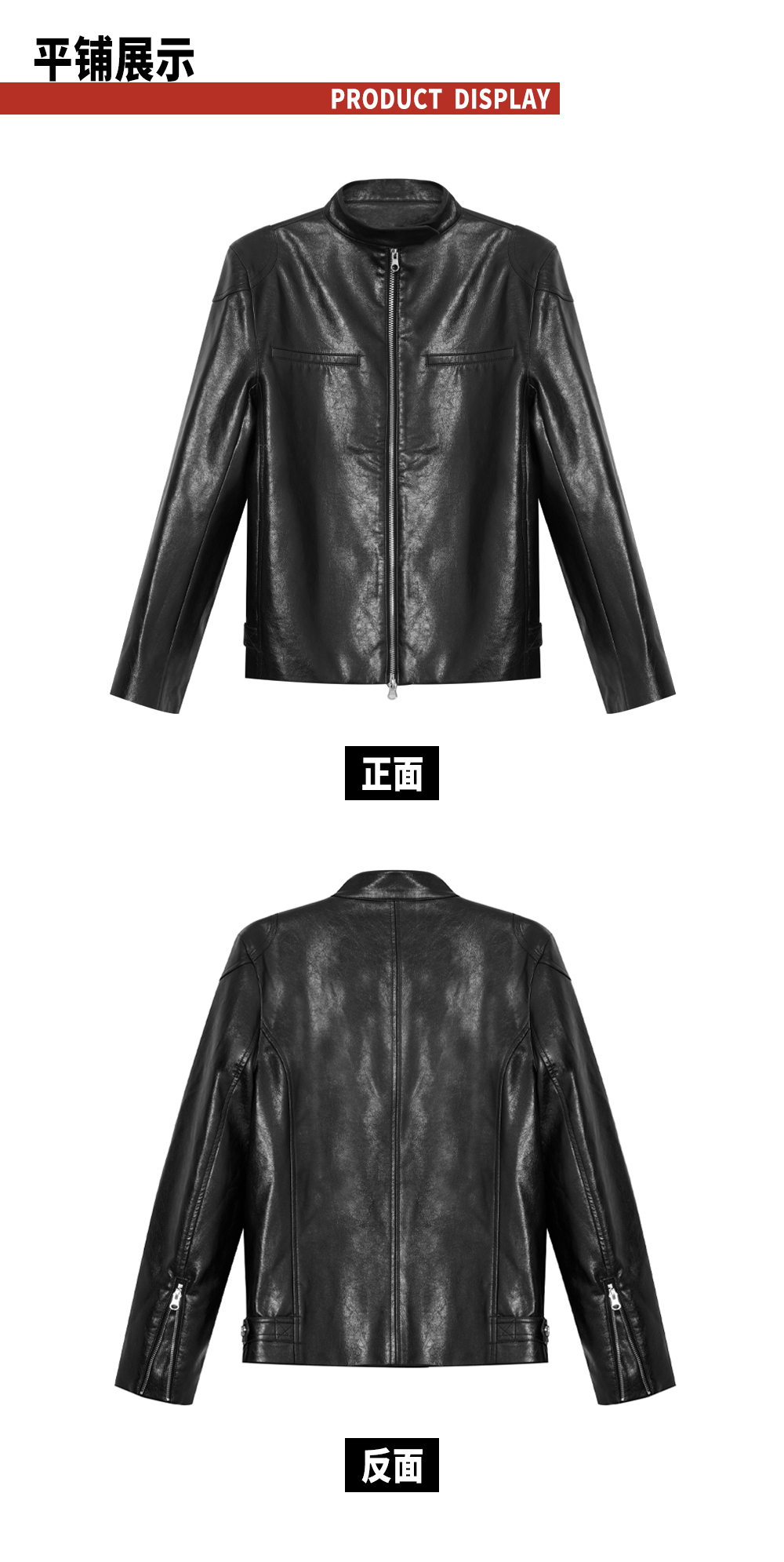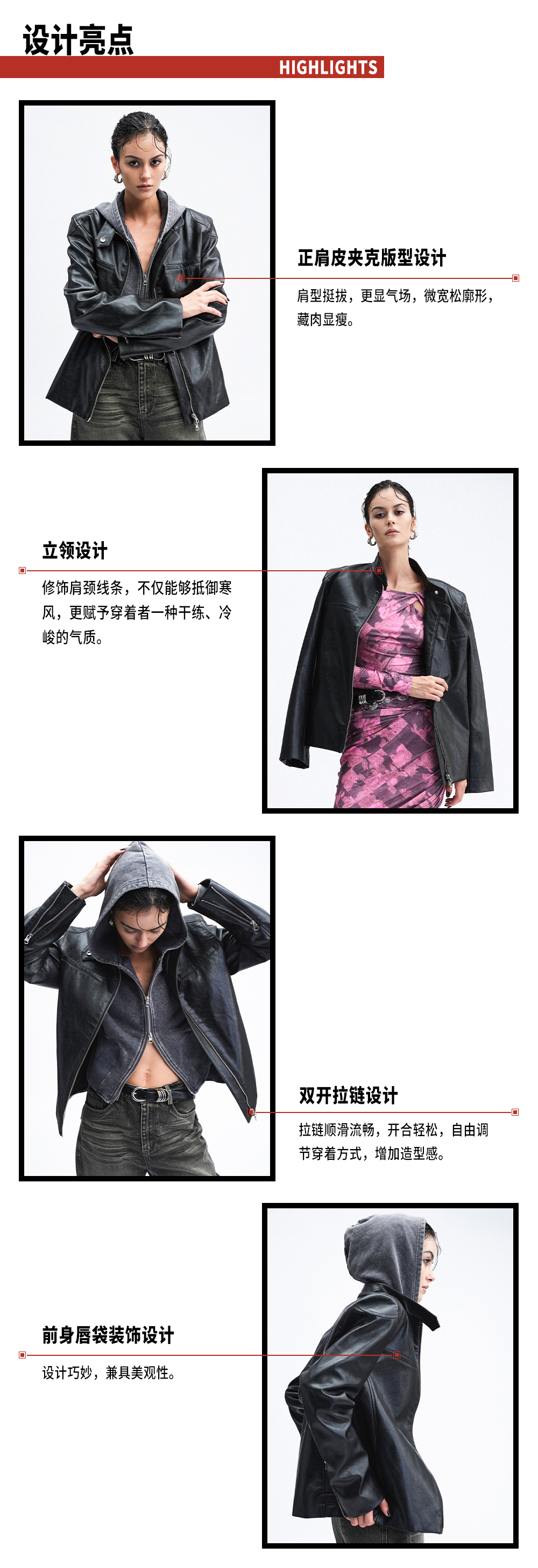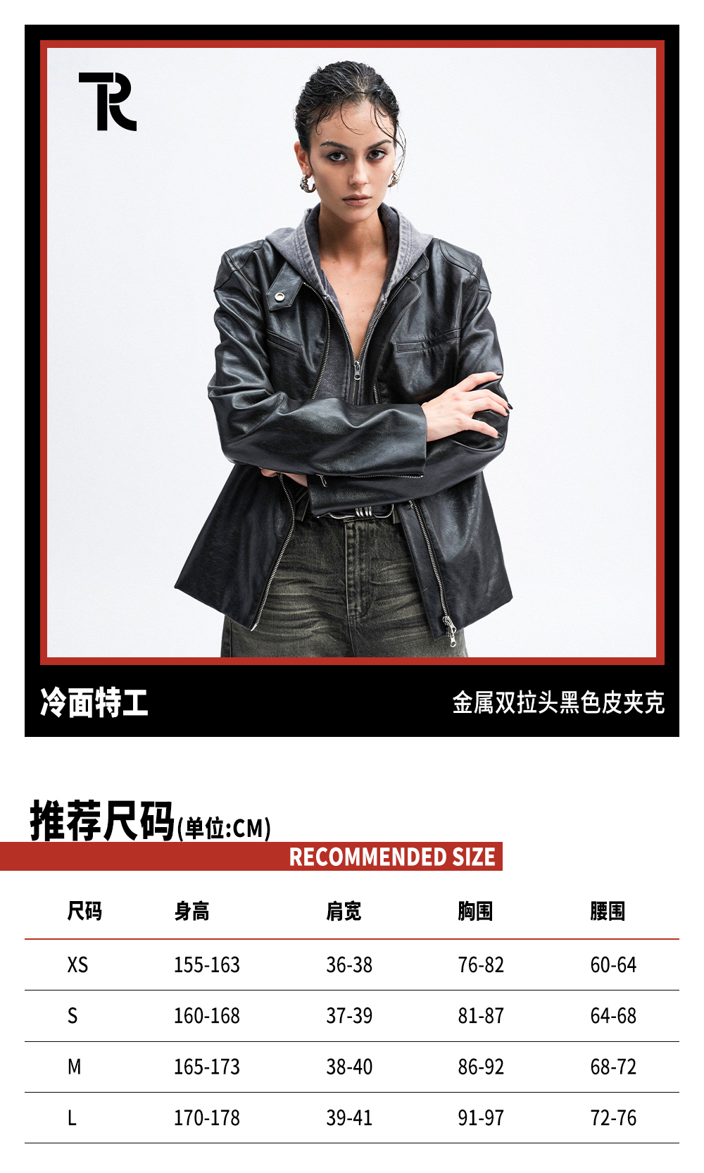 TR她热 冷面特工 黑色立领双拉链辣妹设计感环保皮夹克外套