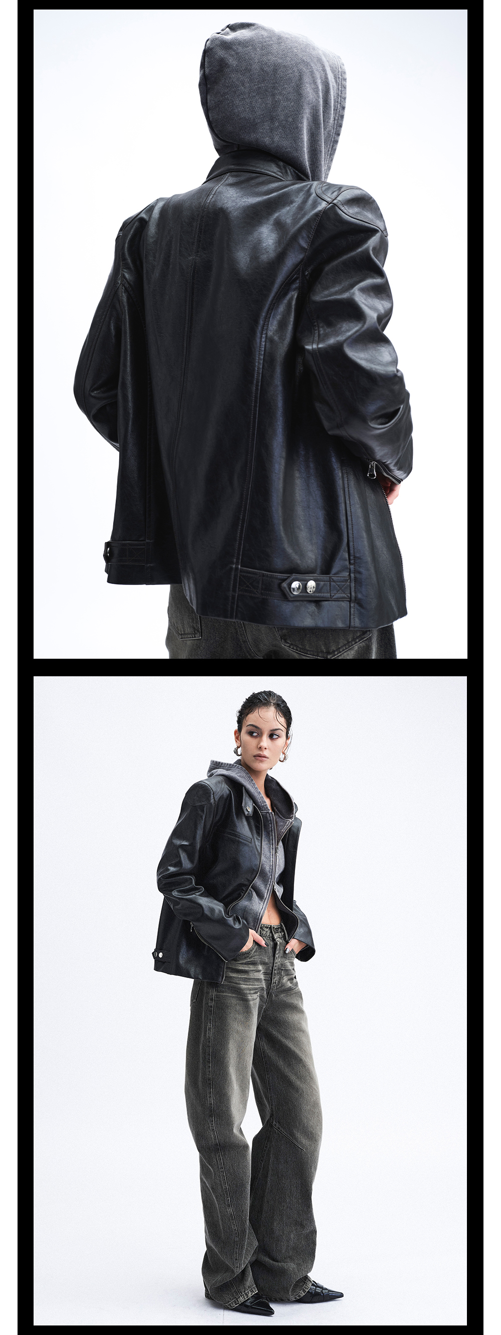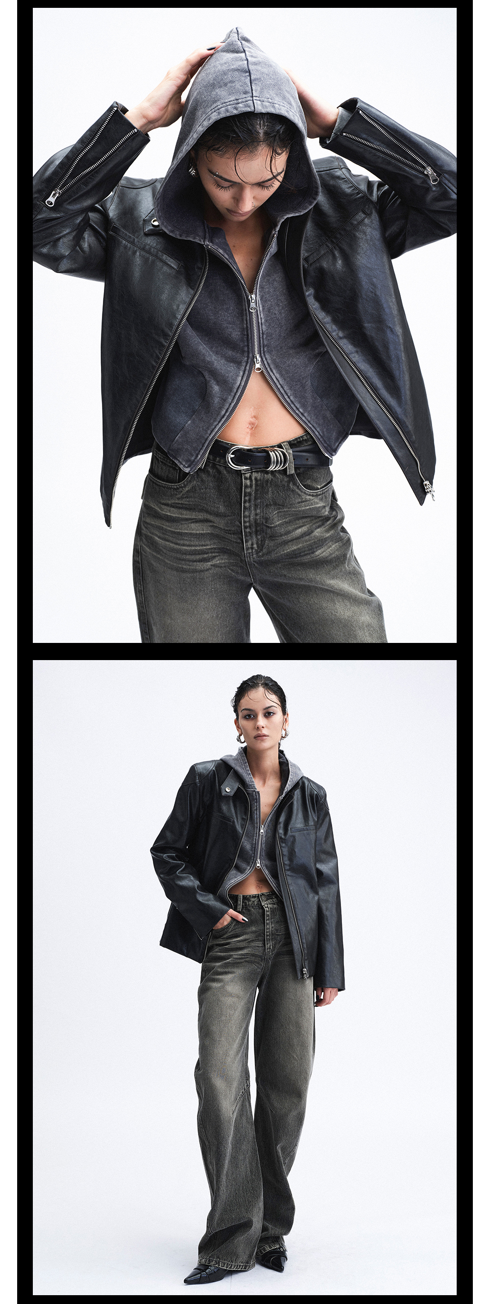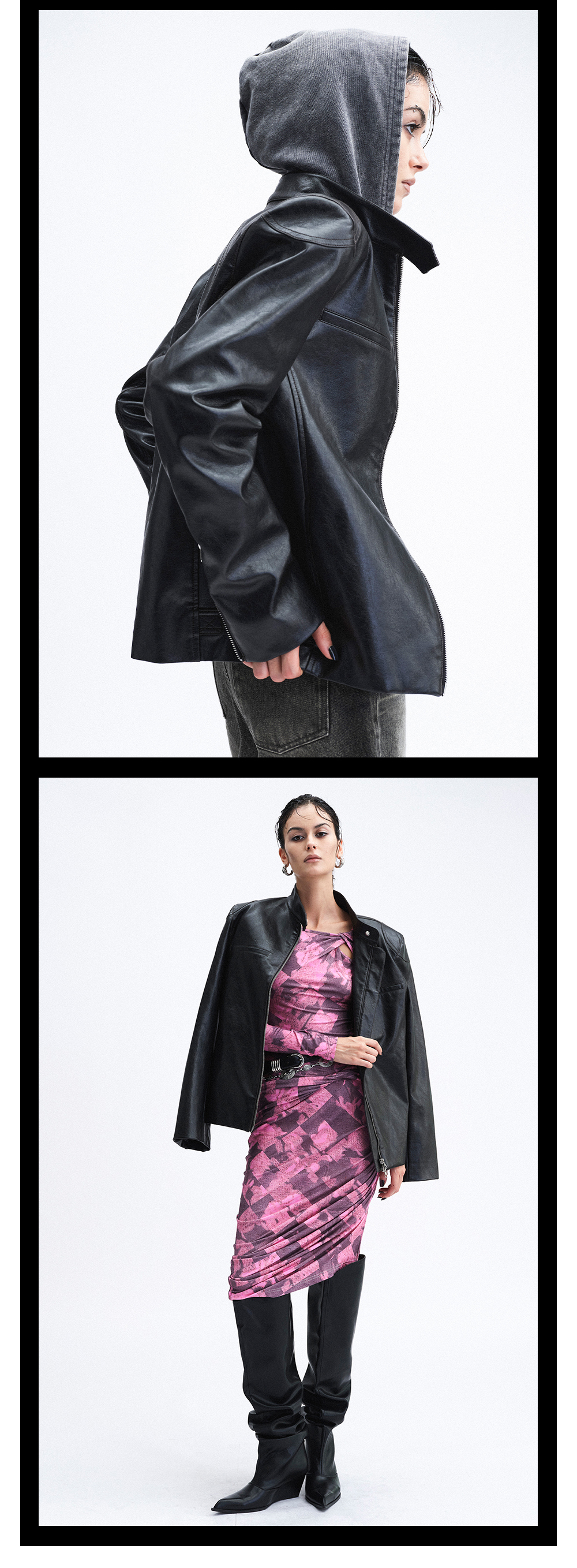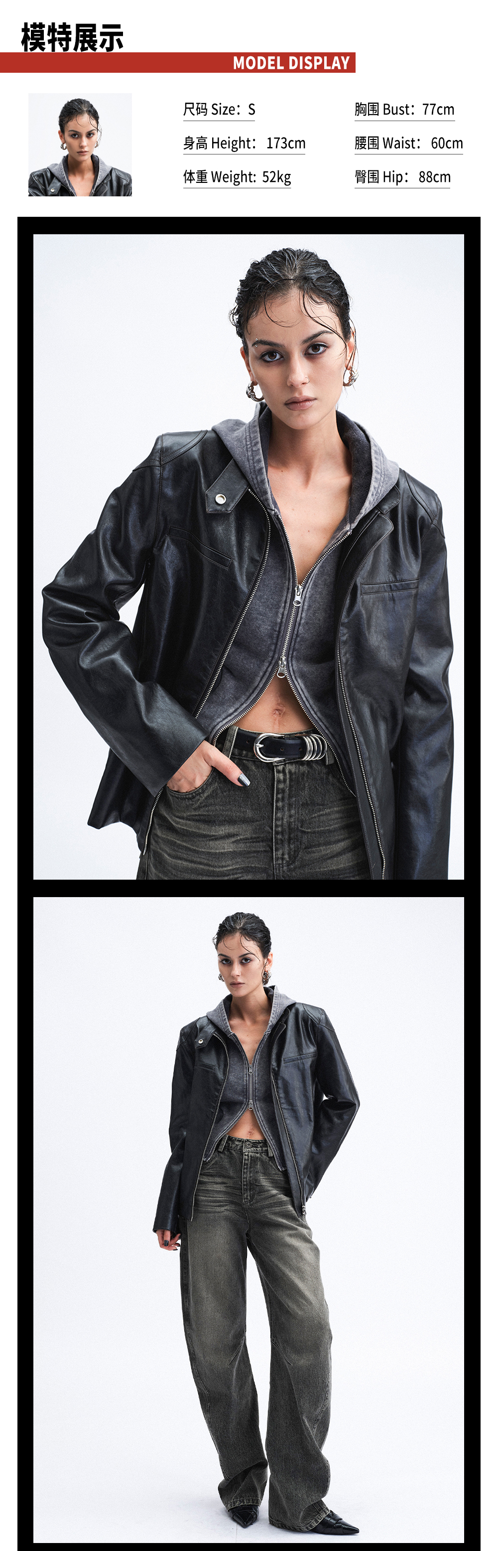 TR她热 冷面特工 黑色立领双拉链辣妹设计感环保皮夹克外套