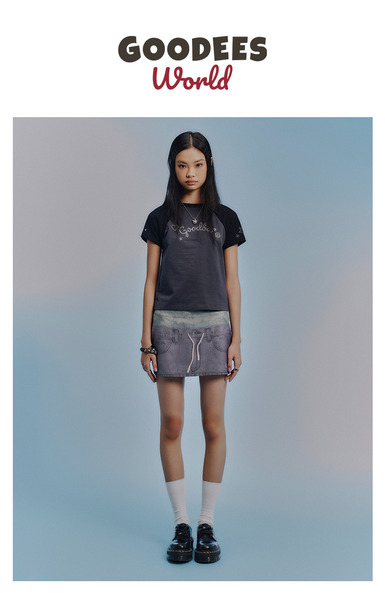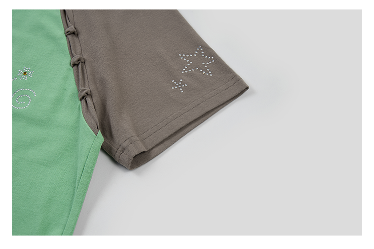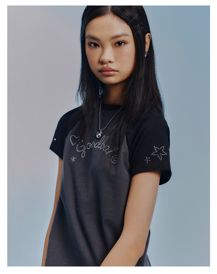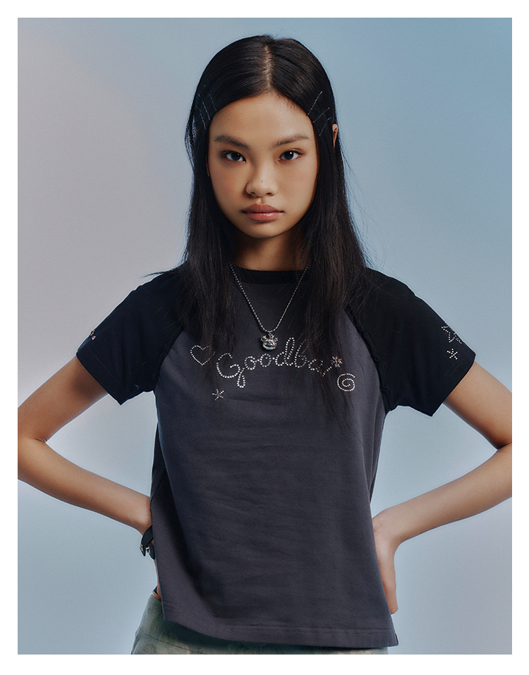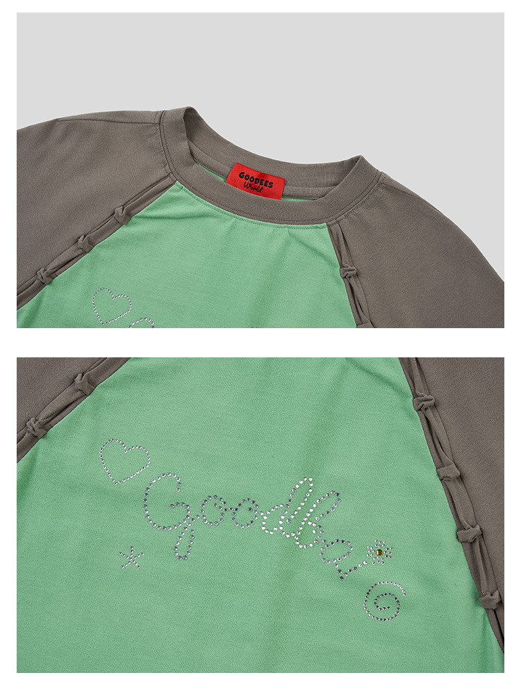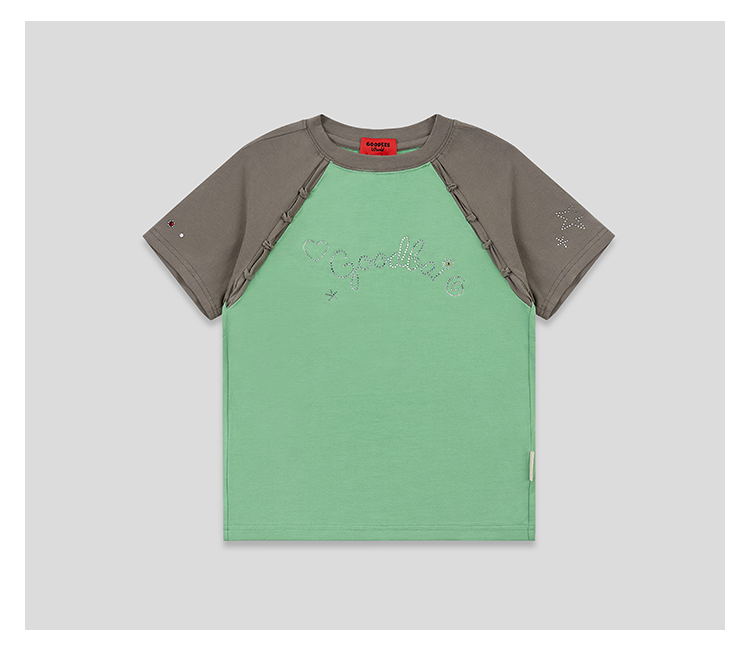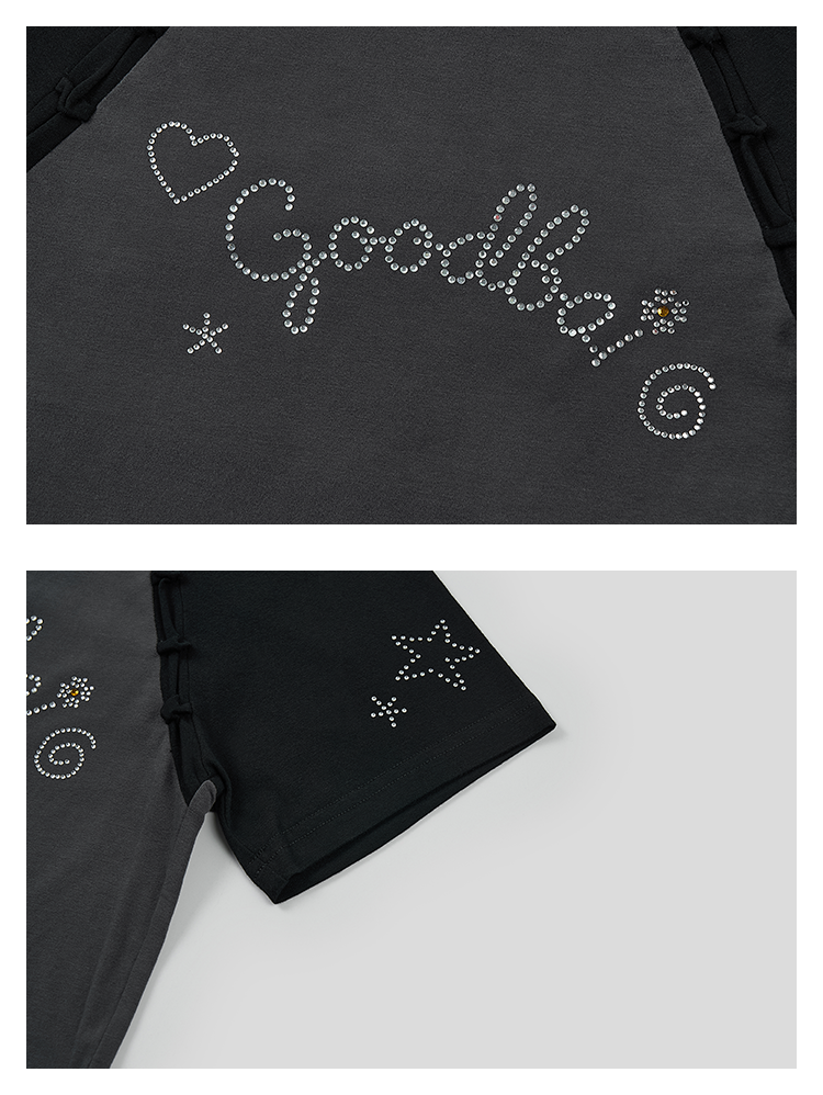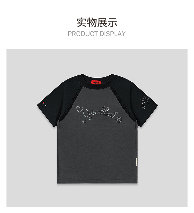 GOODBAI GOODEES烫钻logo拼色插肩短袖T恤