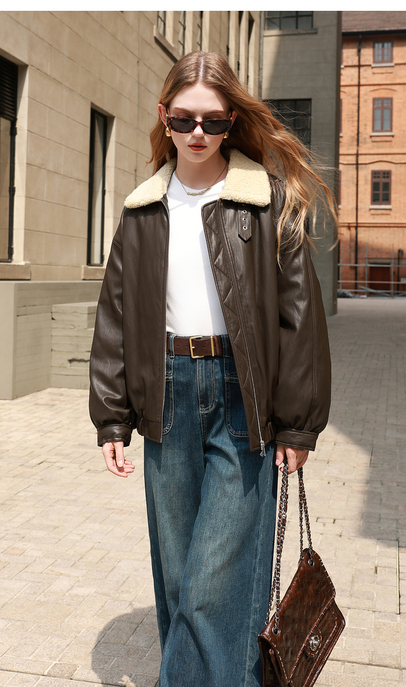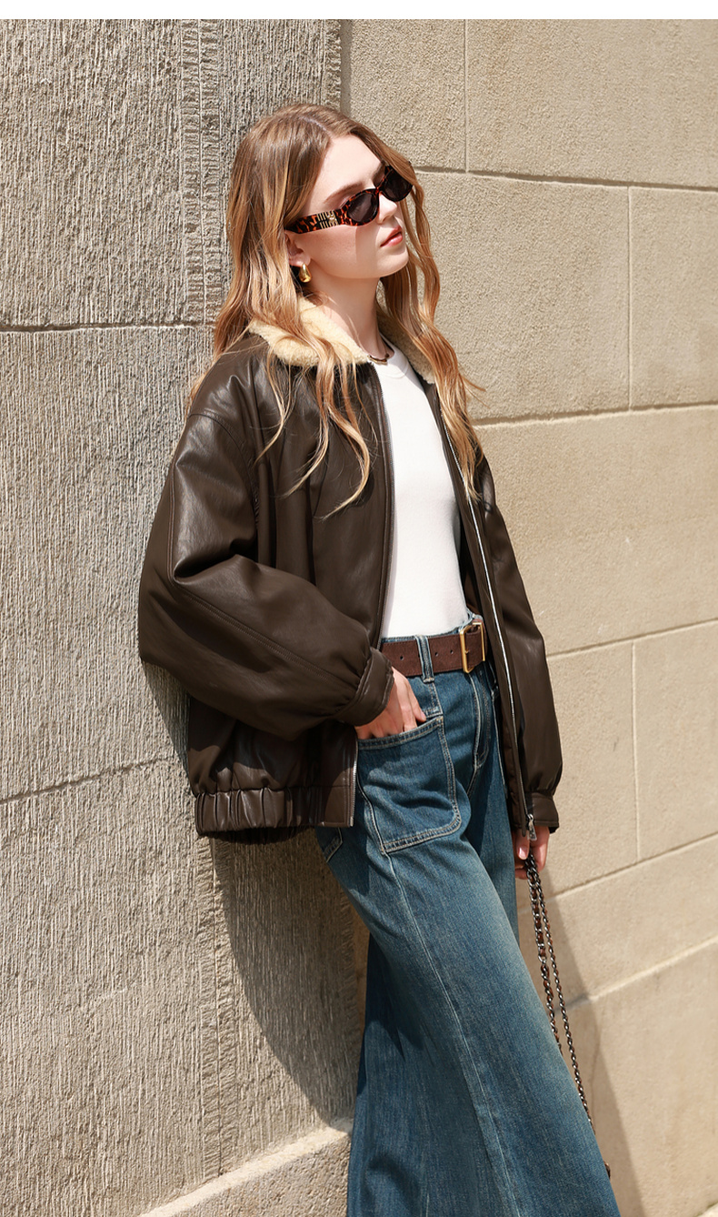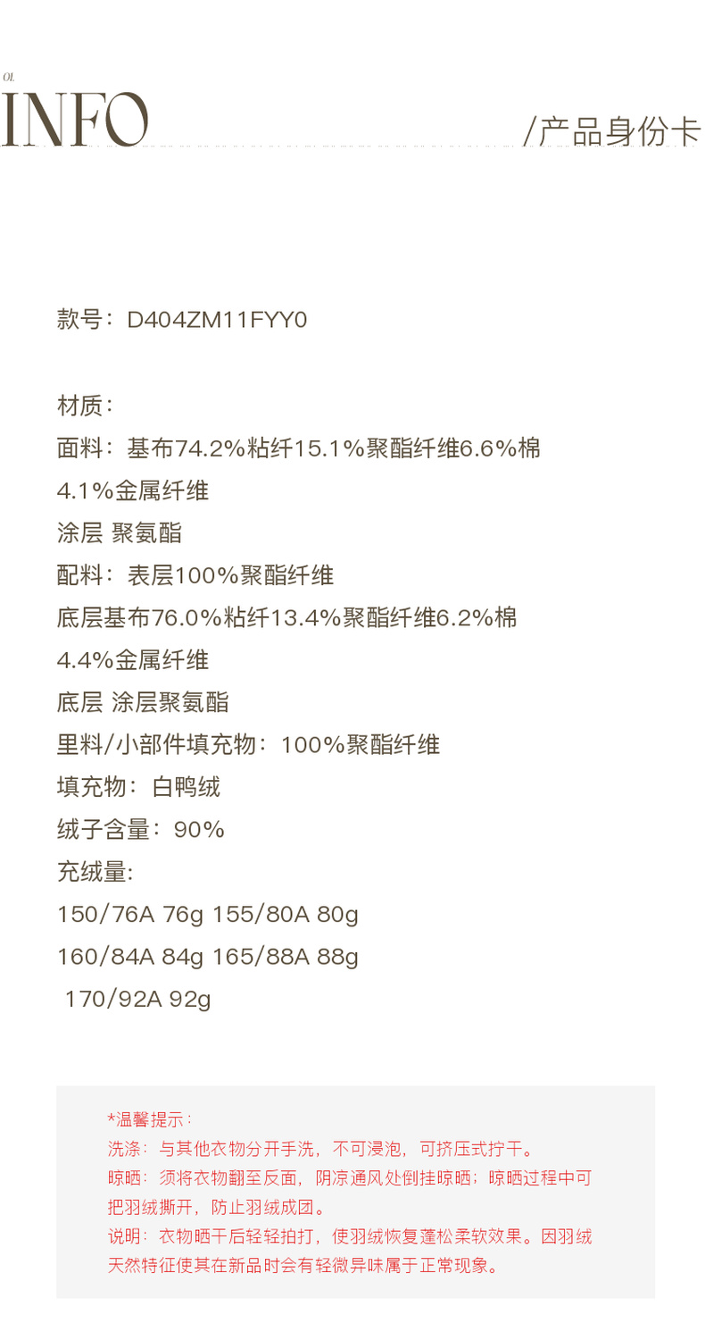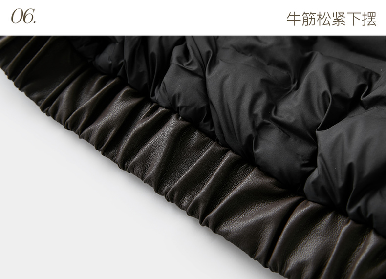 三彩2025冬季新款90白鸭绒羽绒服PU皮短款压胶直充外套M