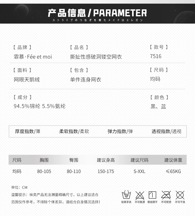 【情趣内衣】霏慕 撕扯性感破洞镂空网衣7516