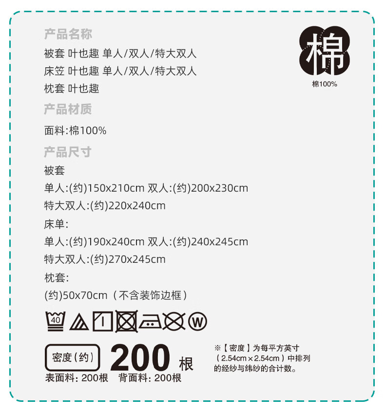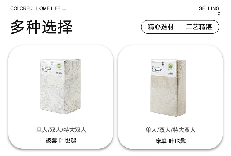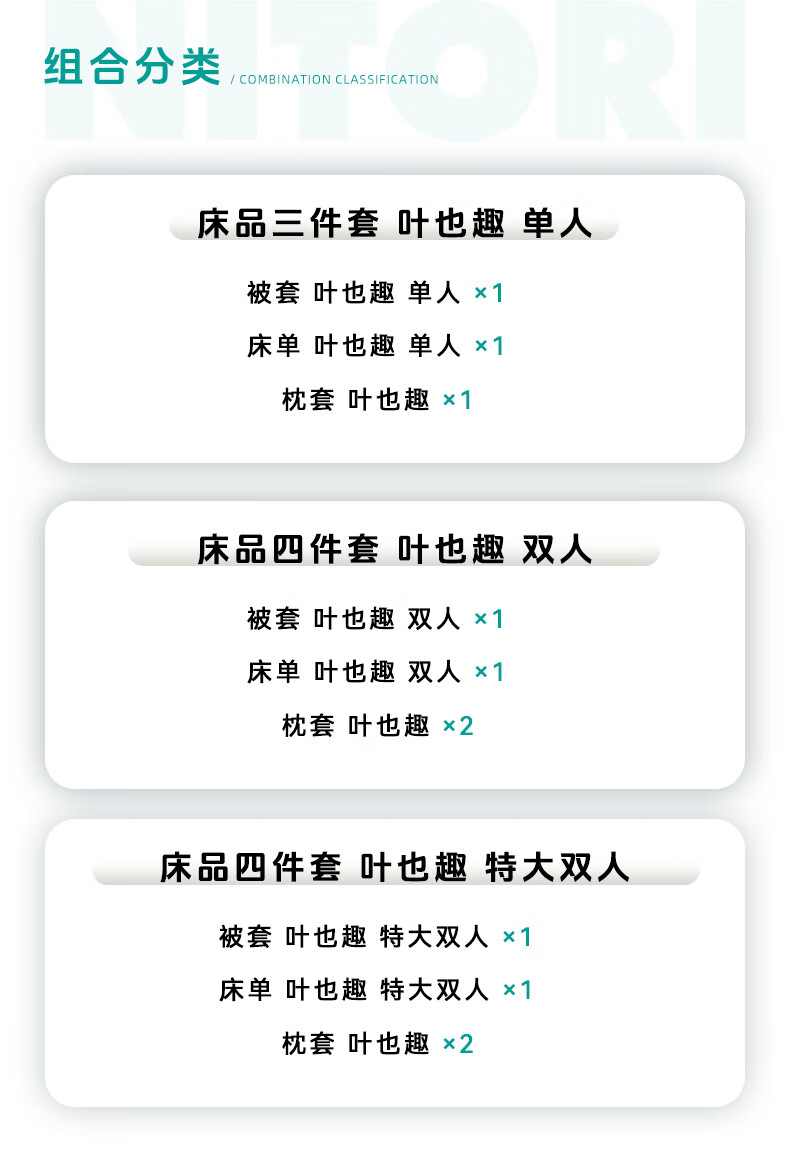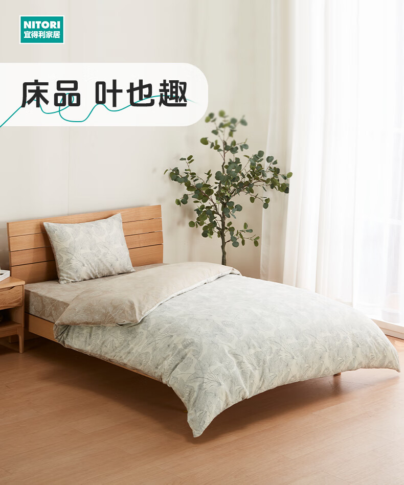 NITORI宜得利家居 家用卧室学生宿舍用透气被套枕套床单 叶也趣