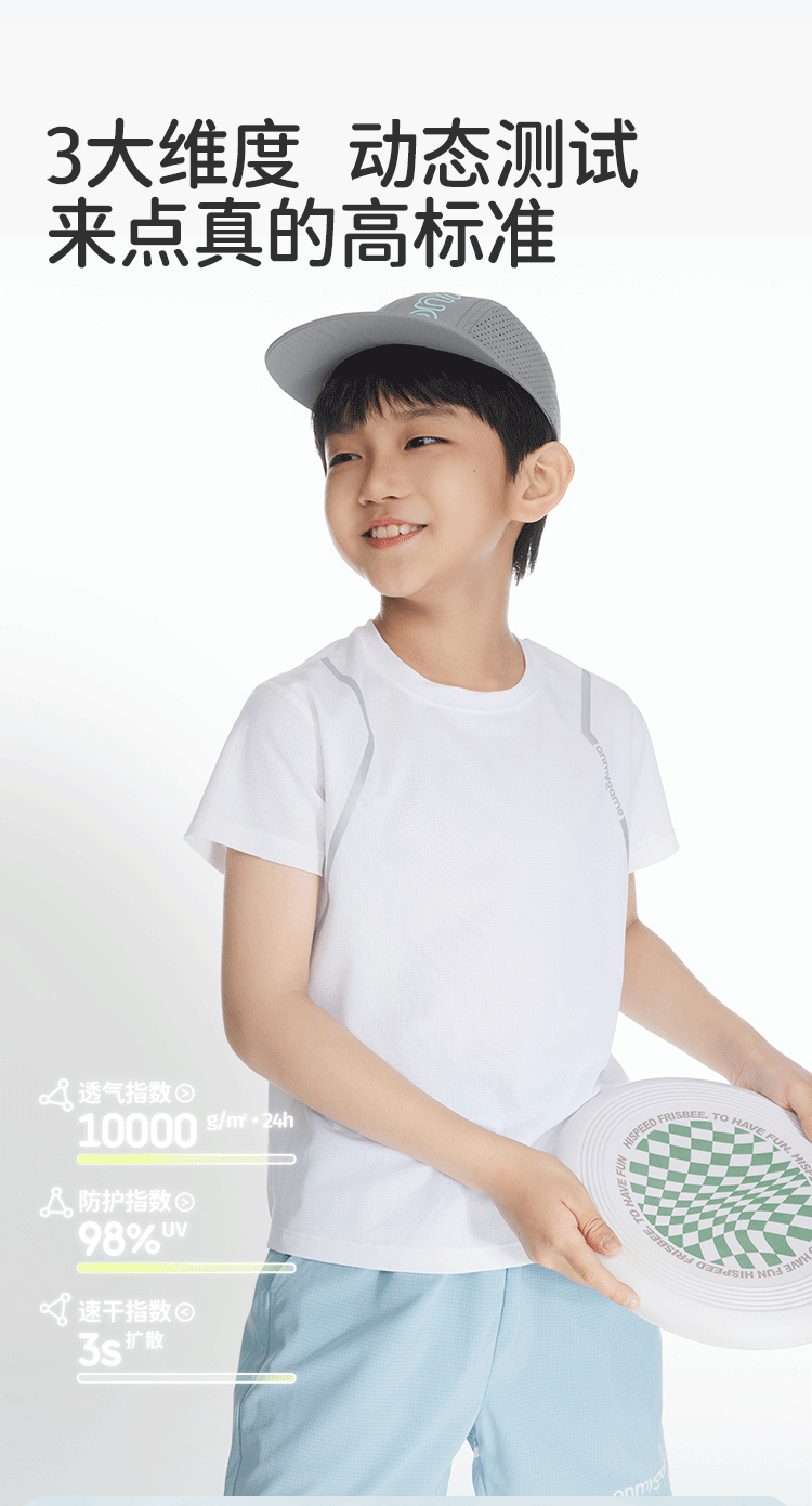 onmygame儿童短袖t恤夏季防晒男女童轻薄透气速干衣2024新运动衣