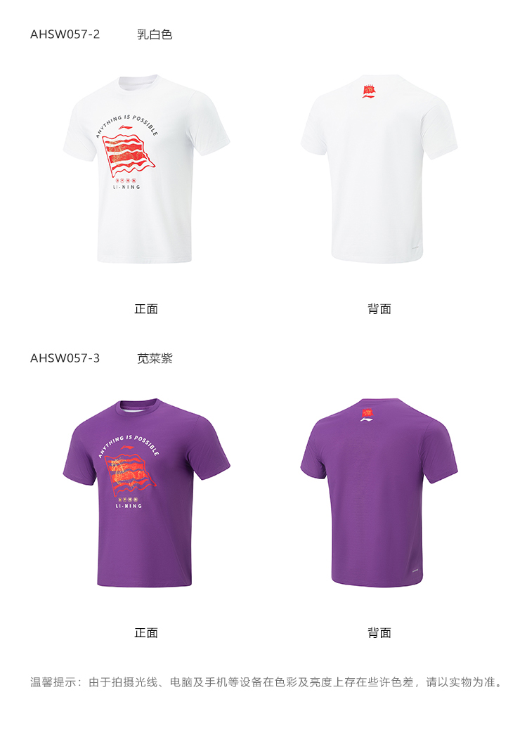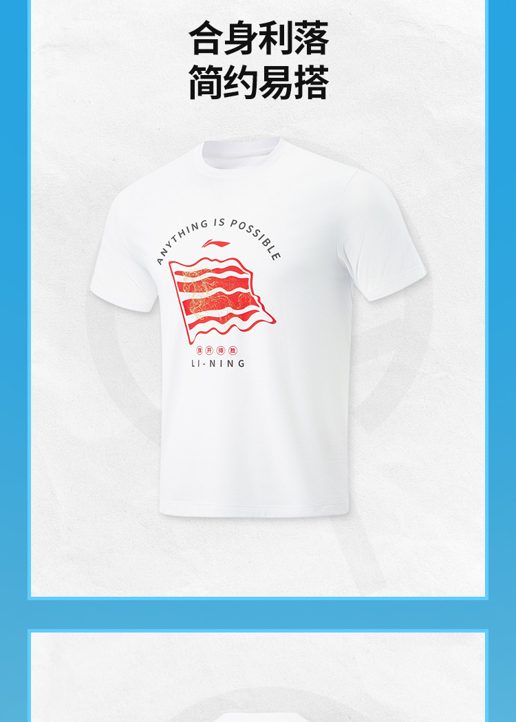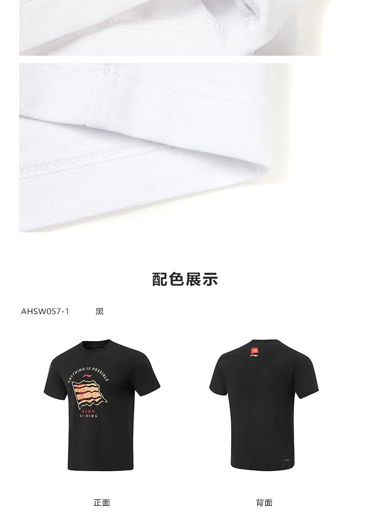 李宁乒乓球系列国家队同款旗开得胜短袖文化衫AHSW057-3