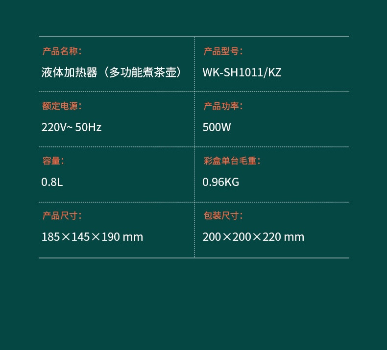 World Kitchen WK-SH1011/KZ 多功能煮茶壶 (台)