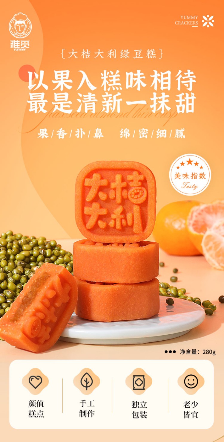 雅觅 大桔大利·桔子绿豆糕280g