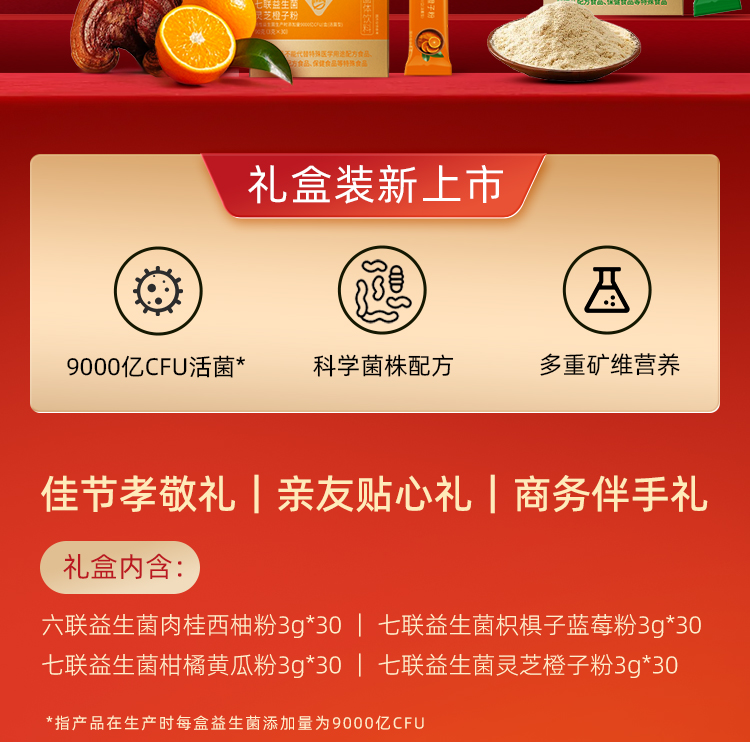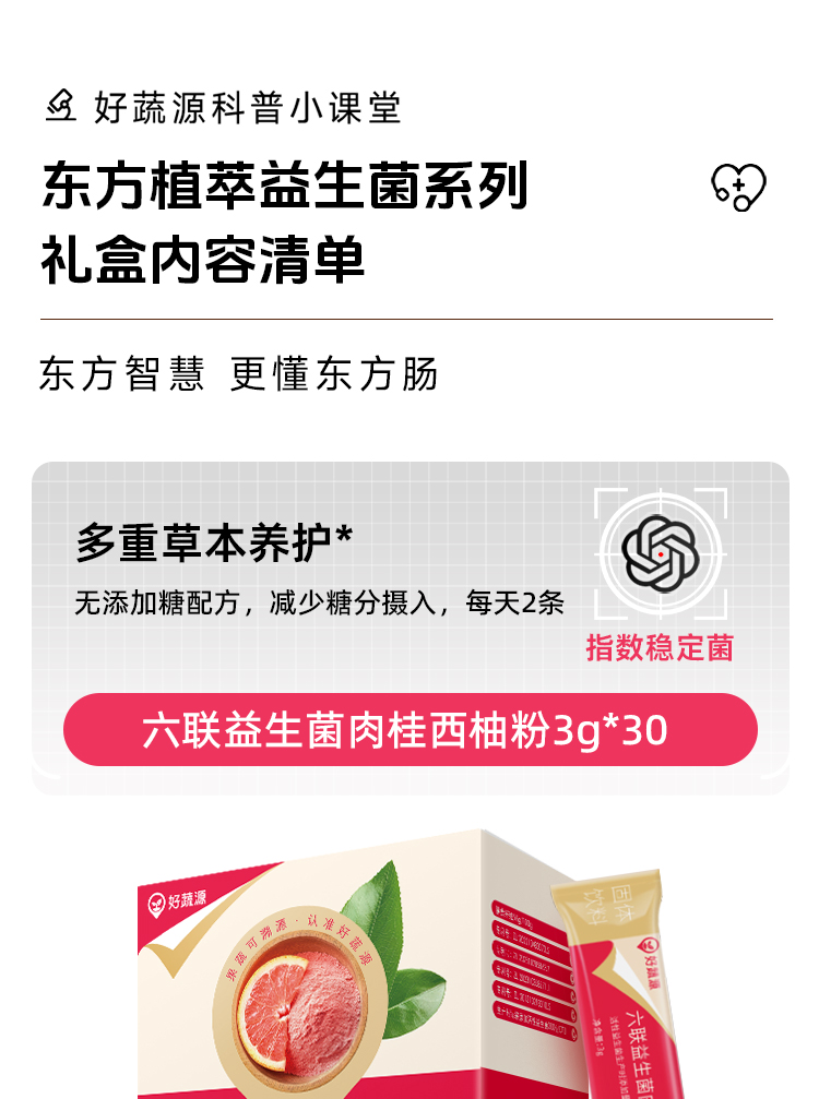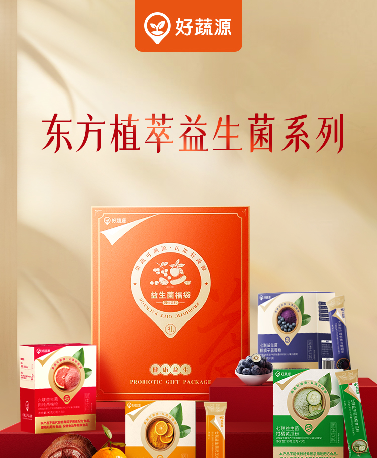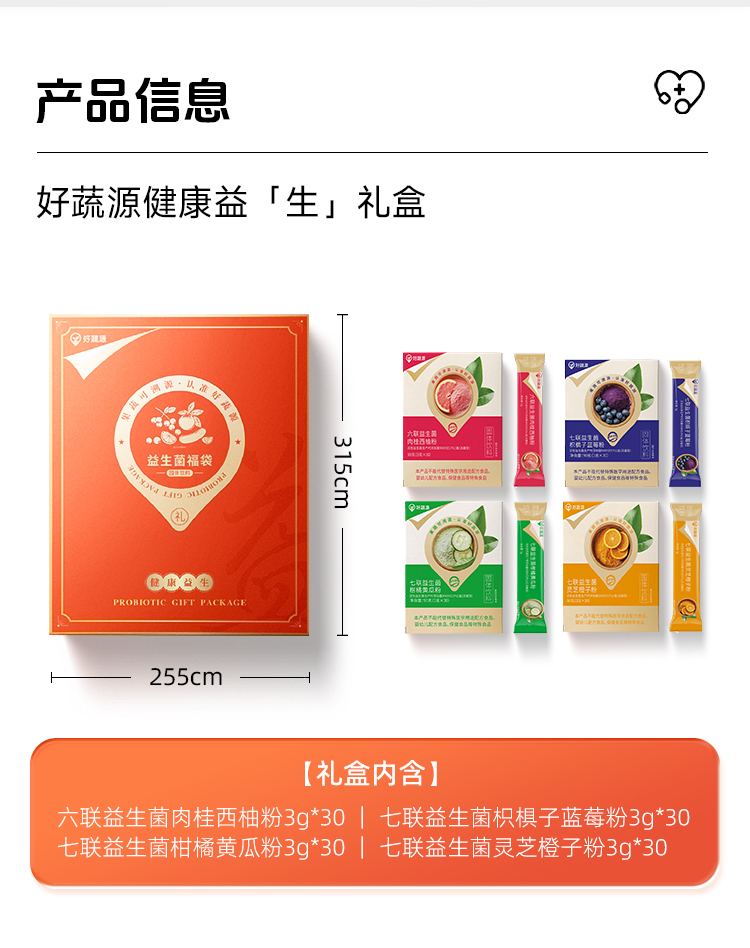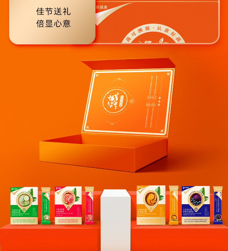 【临期】【质感浮雕烫金】好蔬源 健康益生礼盒 (六联益生菌肉桂西柚粉*1盒 +七联益生菌柑橘黄瓜粉1盒 +七联益生菌枳椇子蓝莓粉1盒+七联益生菌灵芝橙子*1盒) 东方智慧更懂东方肠