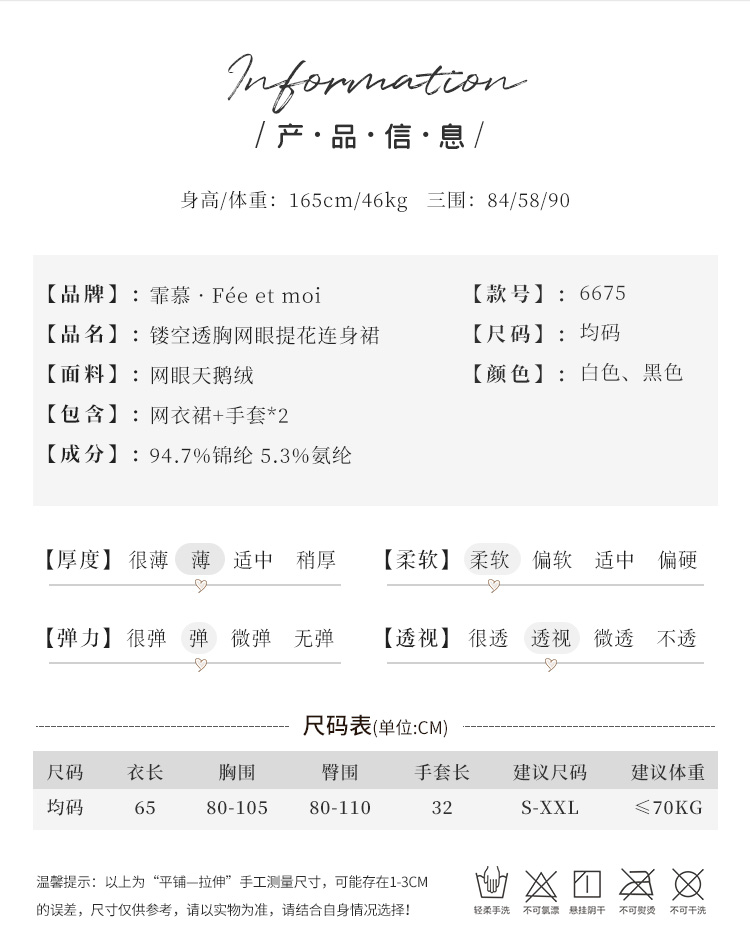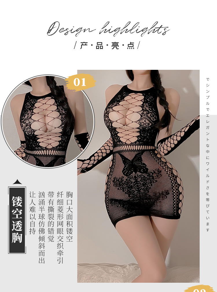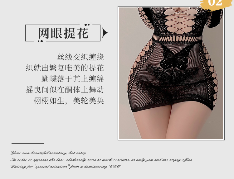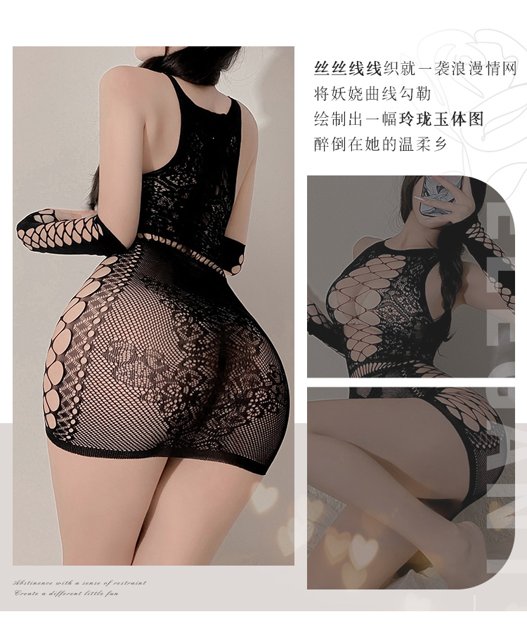 【情趣内衣】霏慕 镂空透胸网眼提花连身裙6675