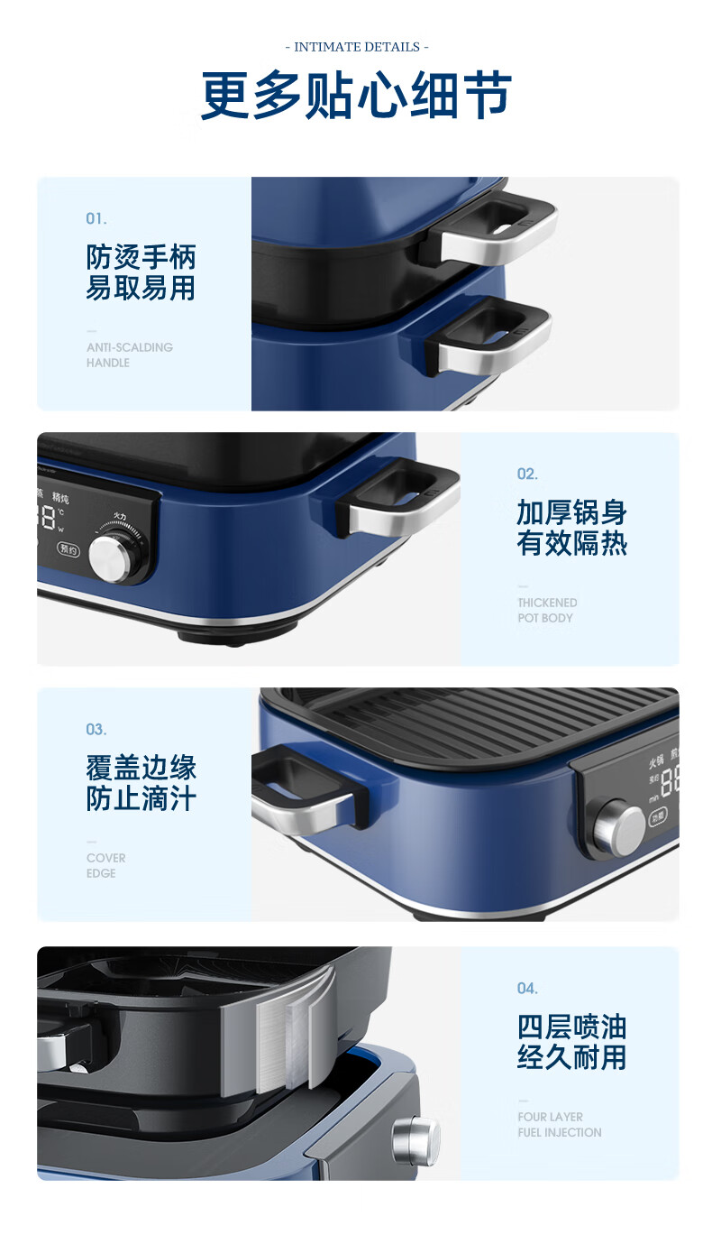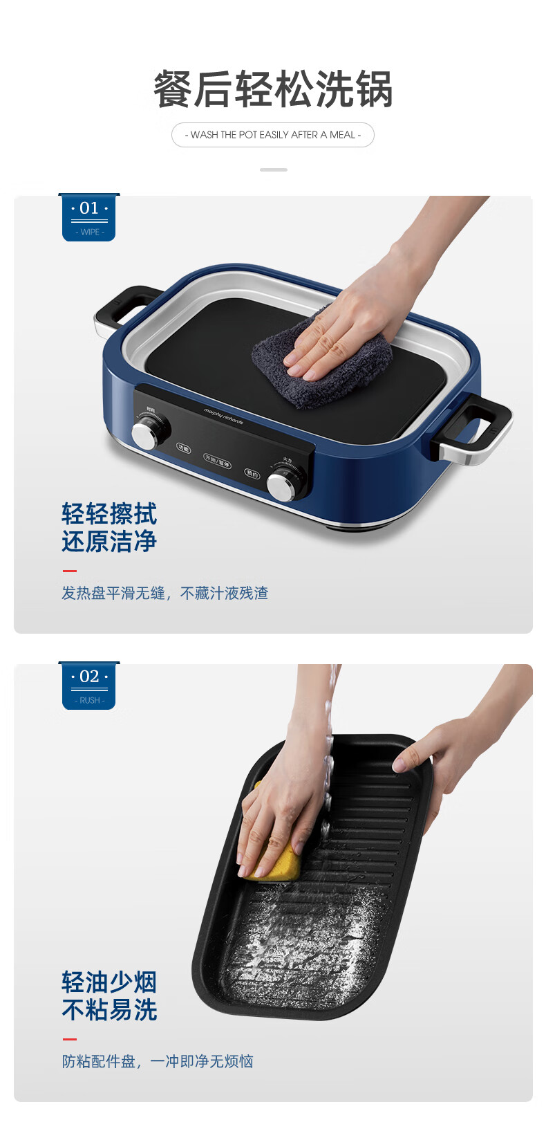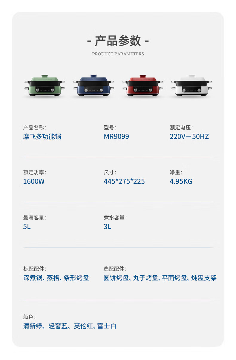 摩飞电器(Morphyrichards)多功能锅 家用多用途锅 电火锅电煮锅电热锅电蒸锅 5升可预约 火锅锅 MR9099地中海蓝