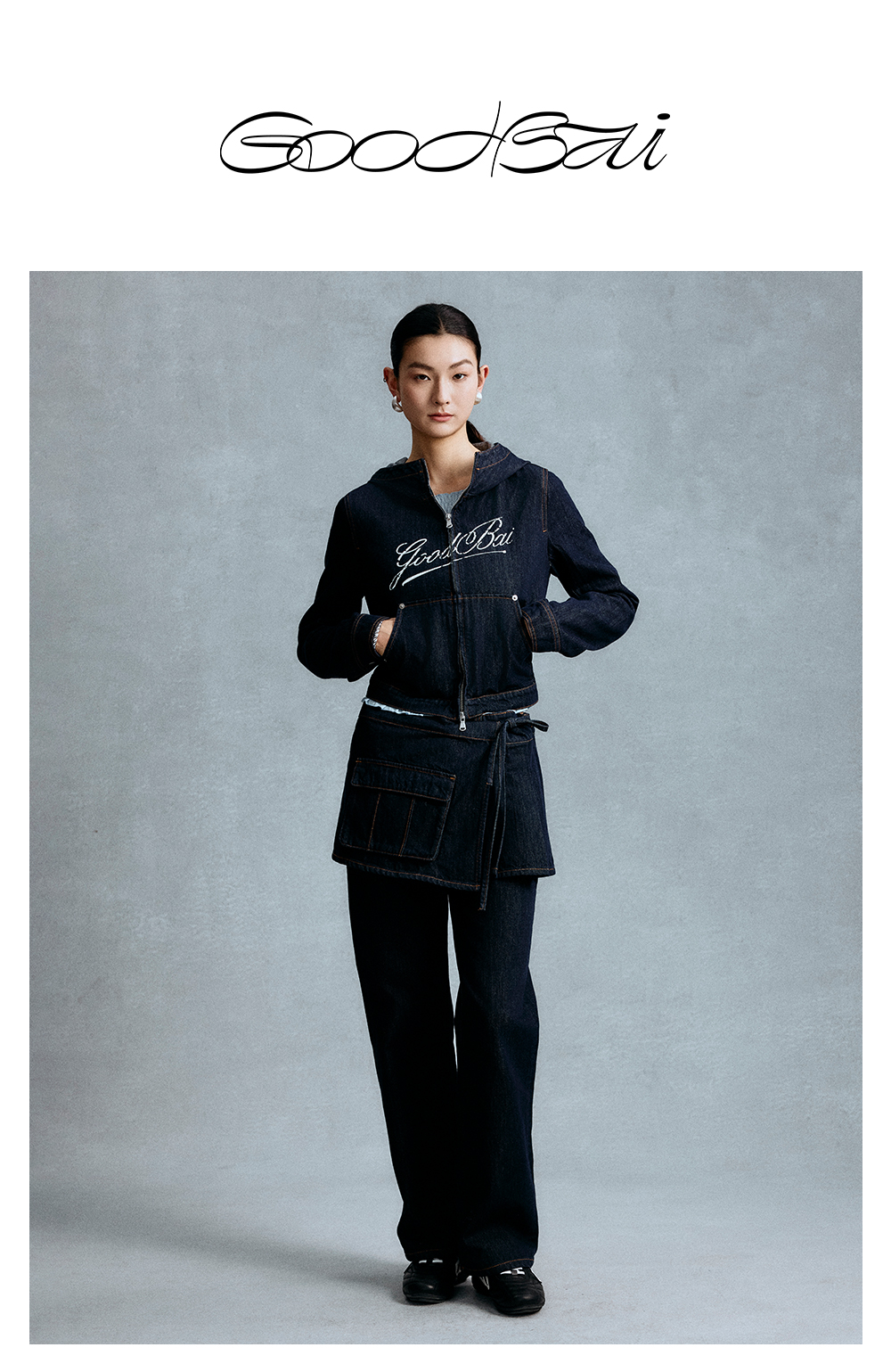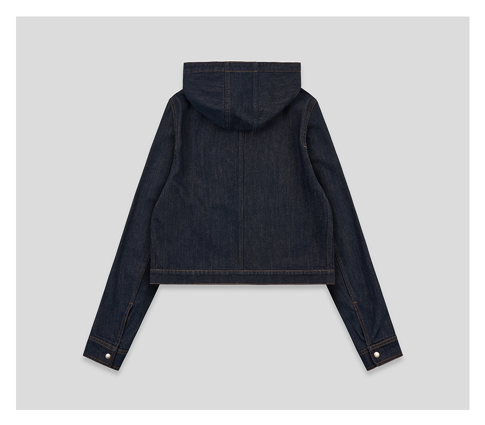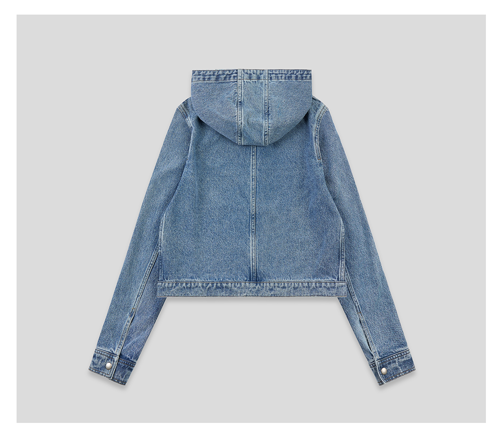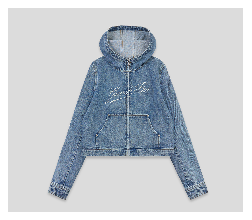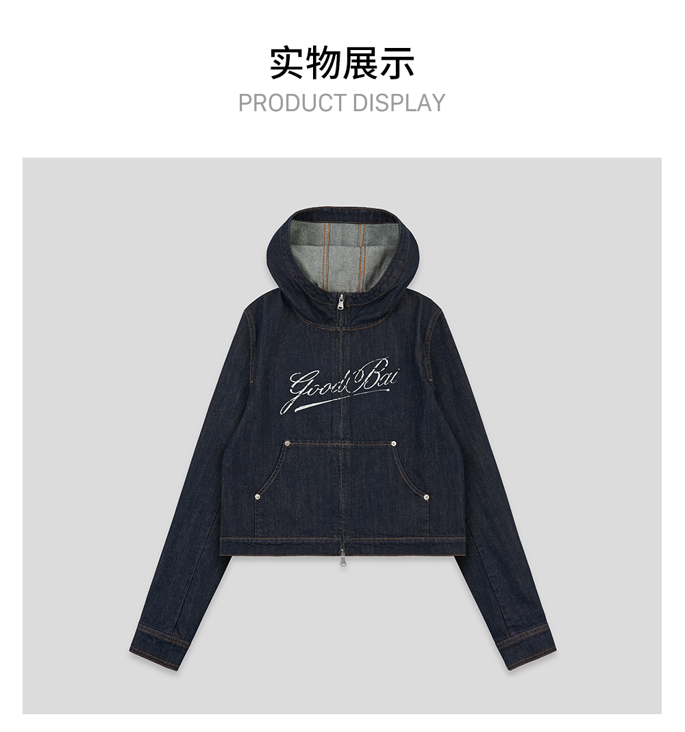 GOODBAI 斜体logo印花连帽正肩长袖牛仔外套