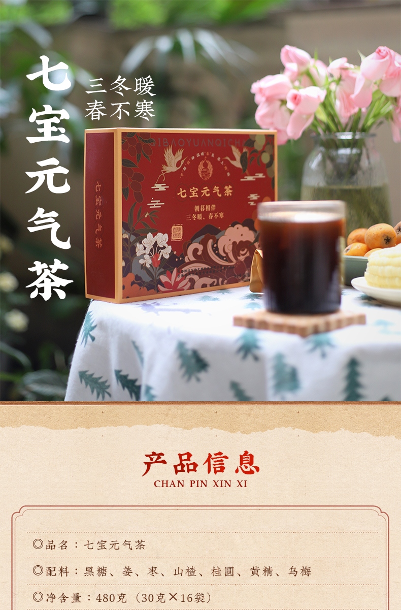七宝元气茶代用茶黑糖姜枣山楂桂圆黄精乌梅健康饮品