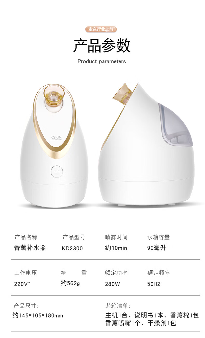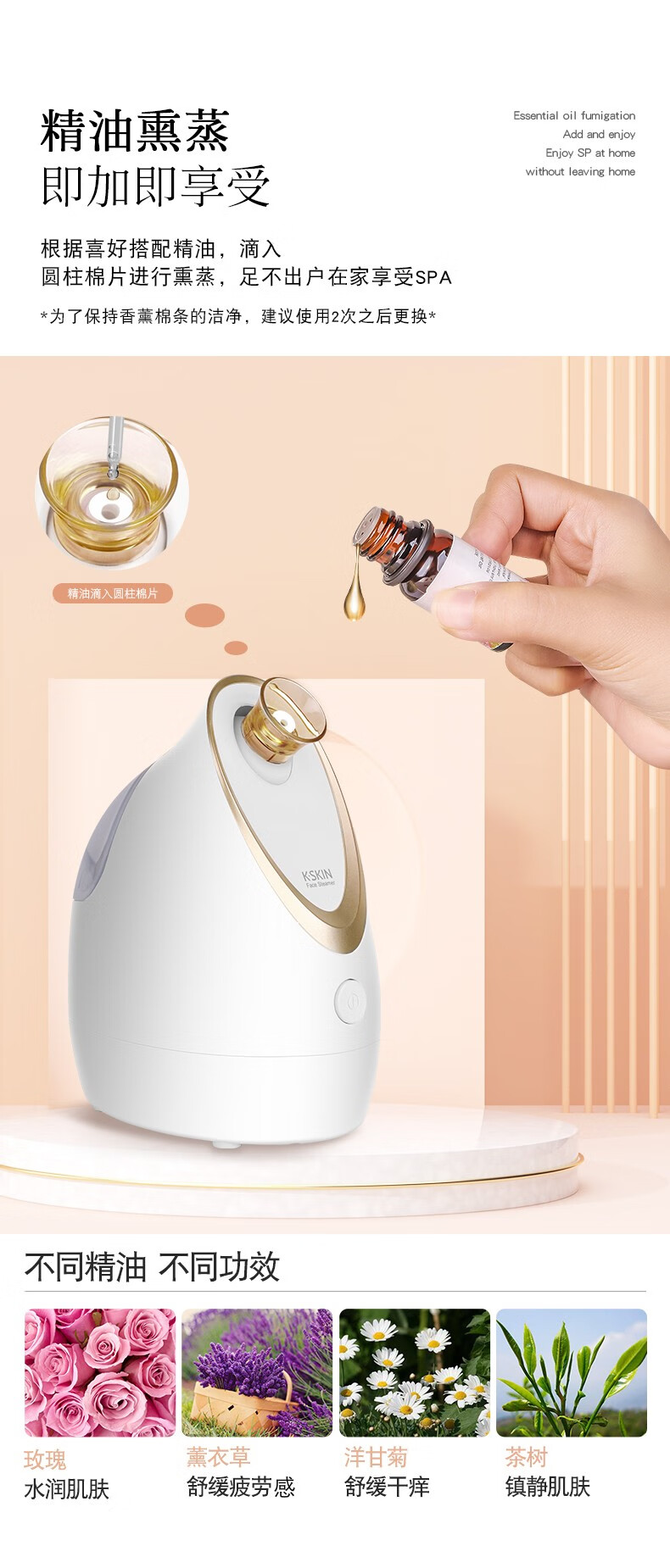 金稻蒸脸仪器面部喷雾补水仪蒸汽机 热喷蒸脸器 加湿器香薰离子热喷面膜搭档 生日礼物女 KD2300