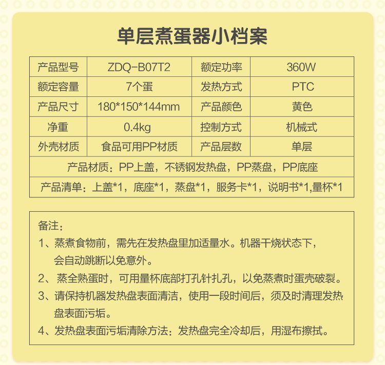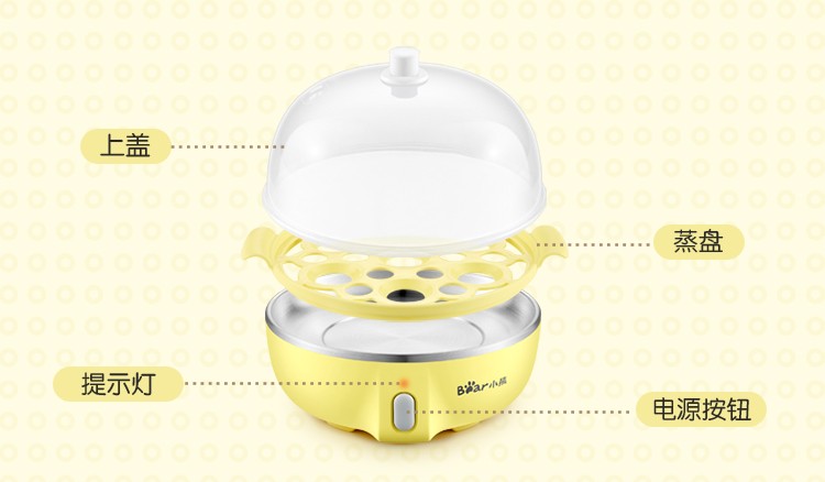 小熊(bear)迷你煮蛋器自动断电一键式单层可煮5个蛋 ZDQ-B07T2