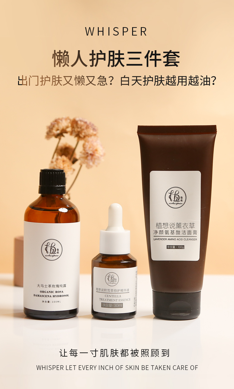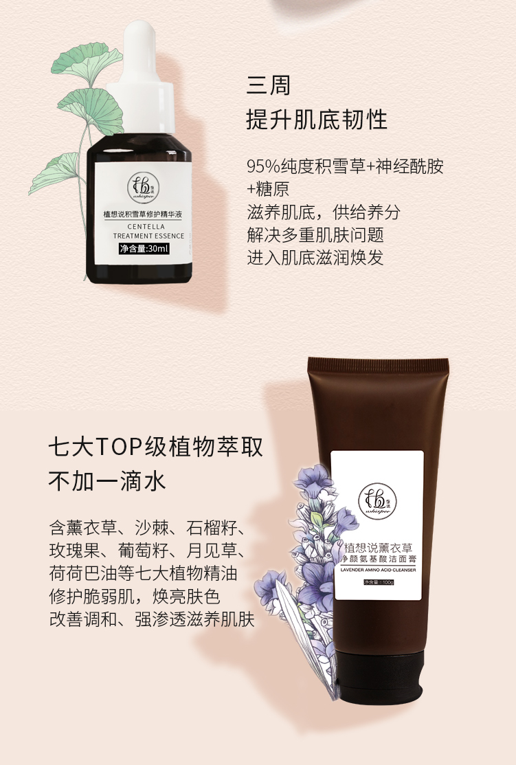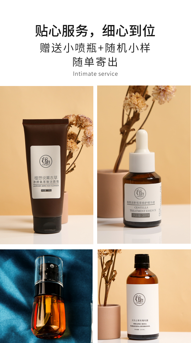 植想说修护精华液补水纯露温和氨基酸洁面膏纯素护肤三件套装