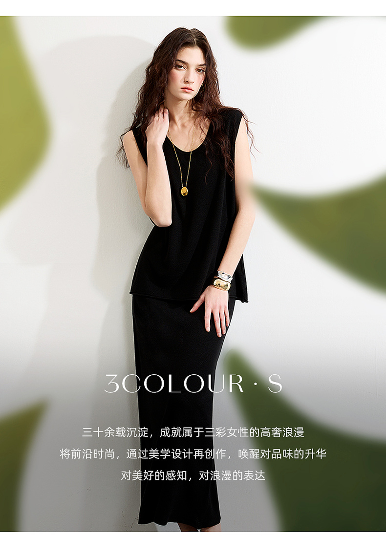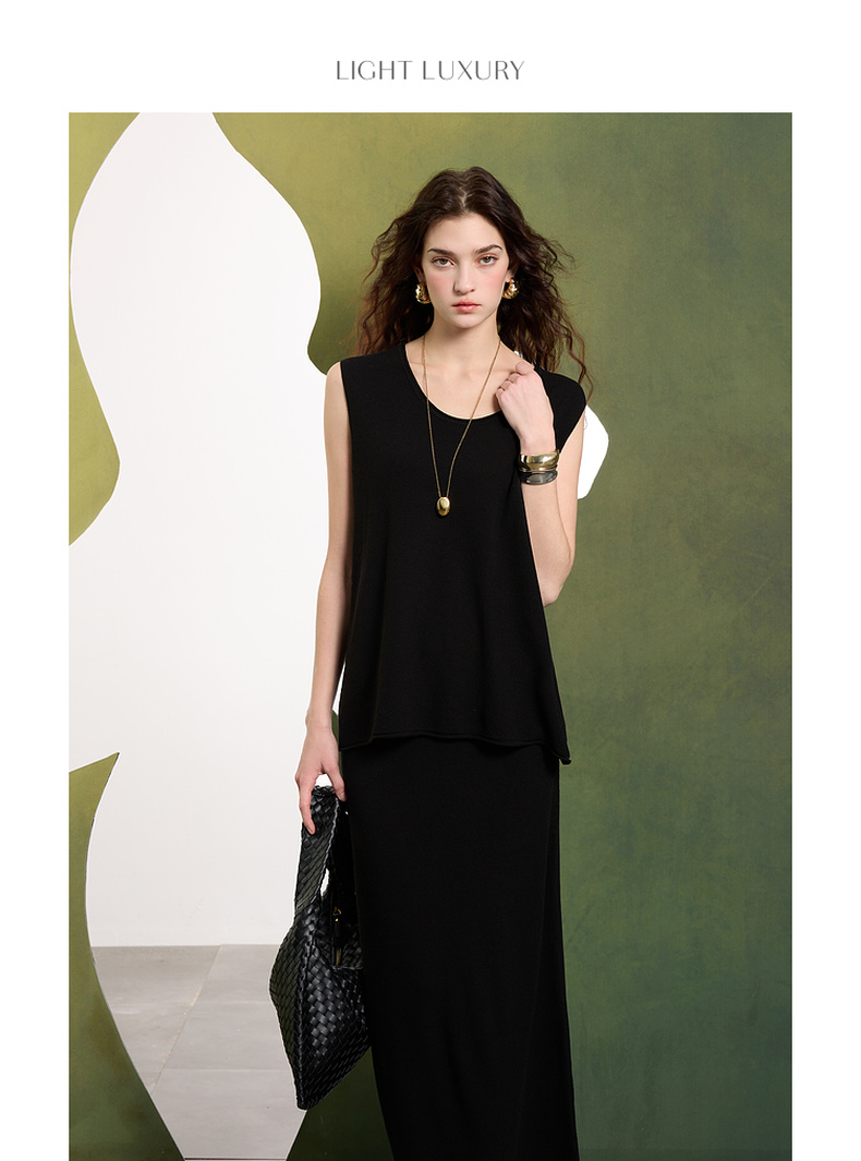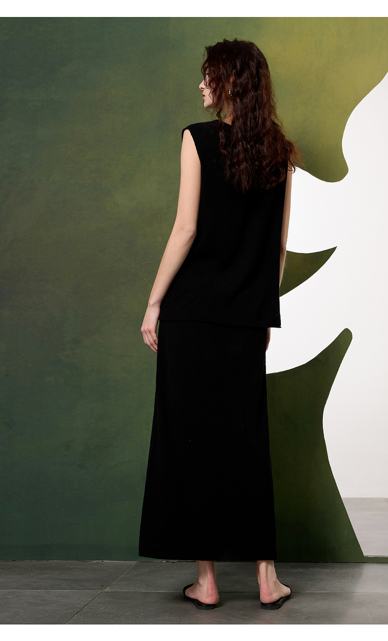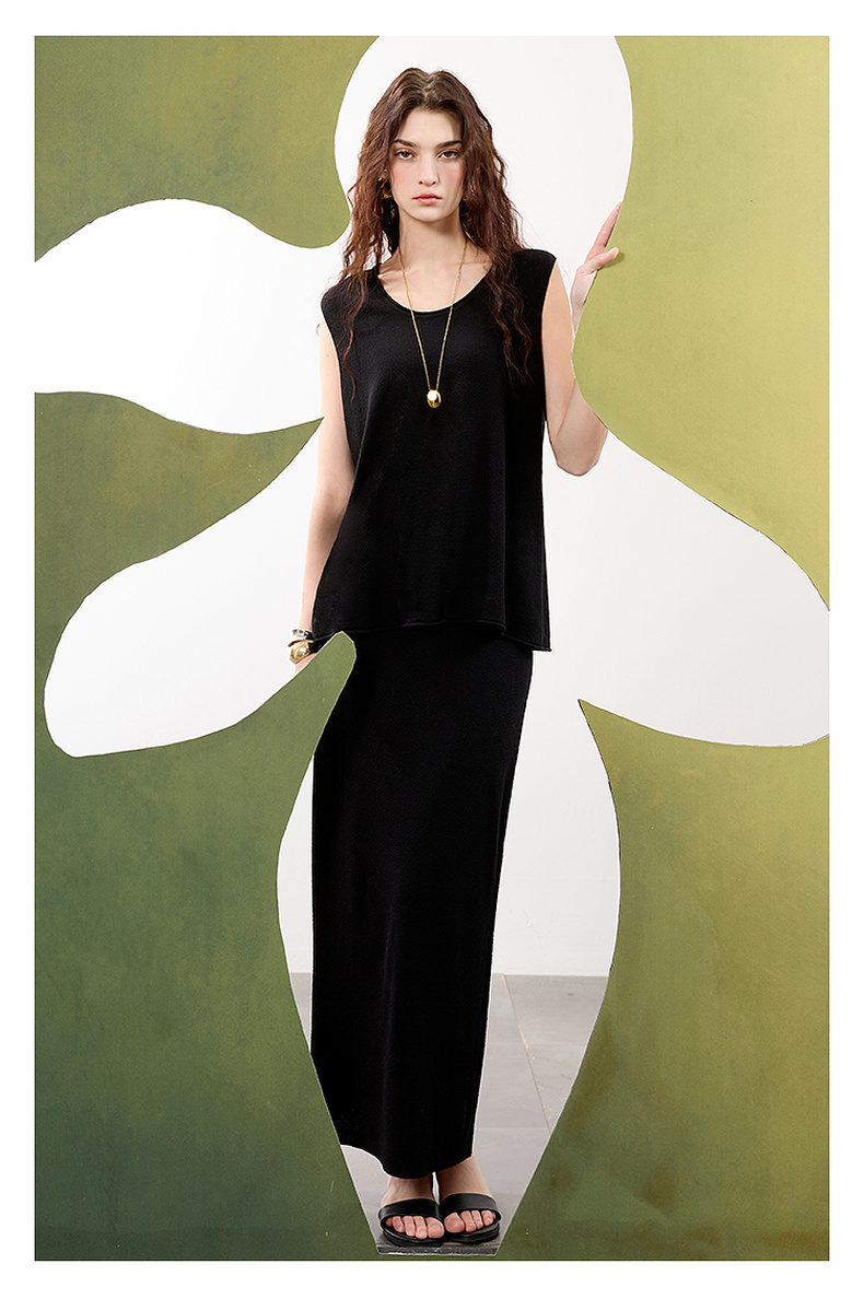 【亚麻】三彩2025春季新款针织套装无袖套头衫半身裙长裙两件套S