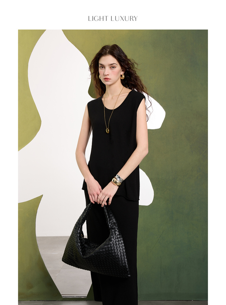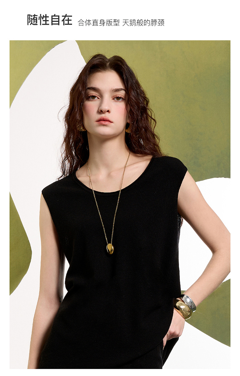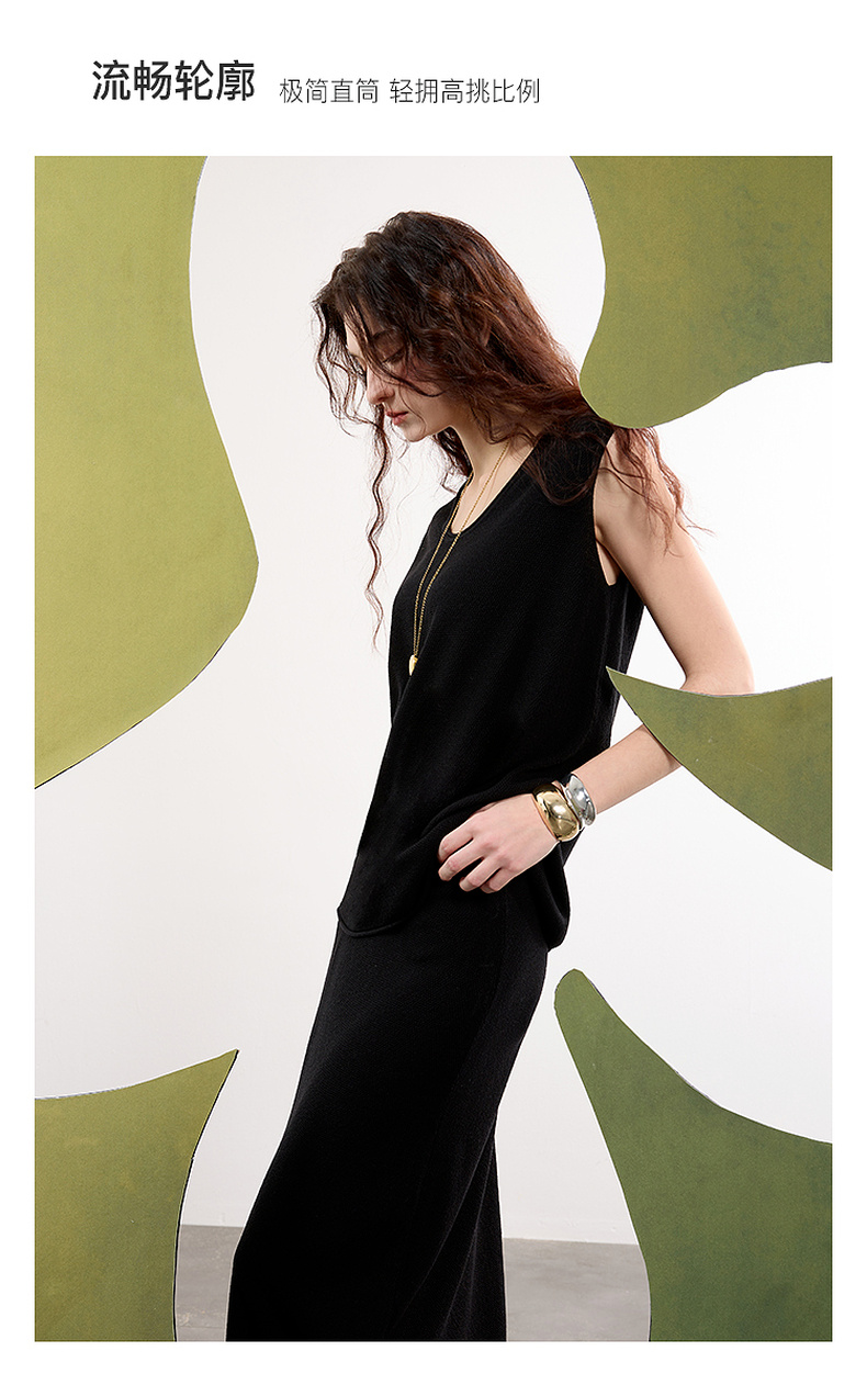 【亚麻】三彩2025春季新款针织套装无袖套头衫半身裙长裙两件套S