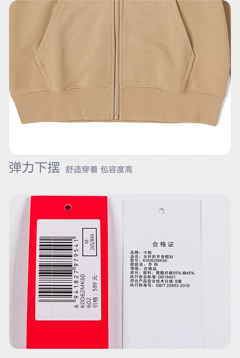 卡帕(Kappa)针织开身帽衫2023新款女运动连帽卫衣针织休闲夹克外套K0D62MK60