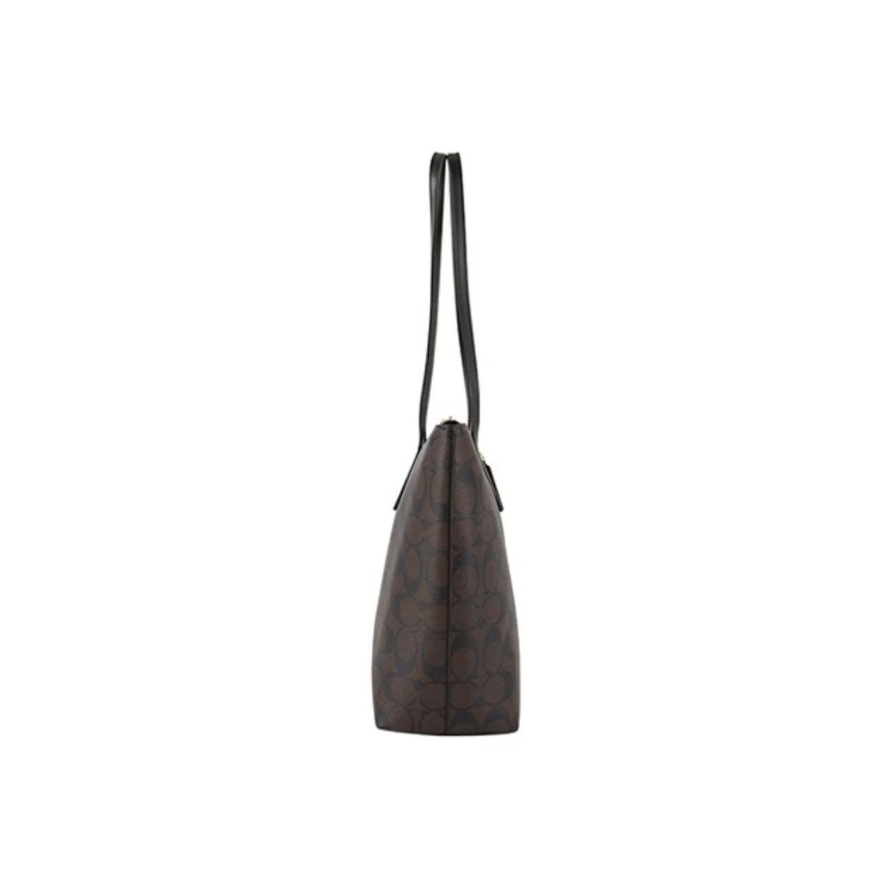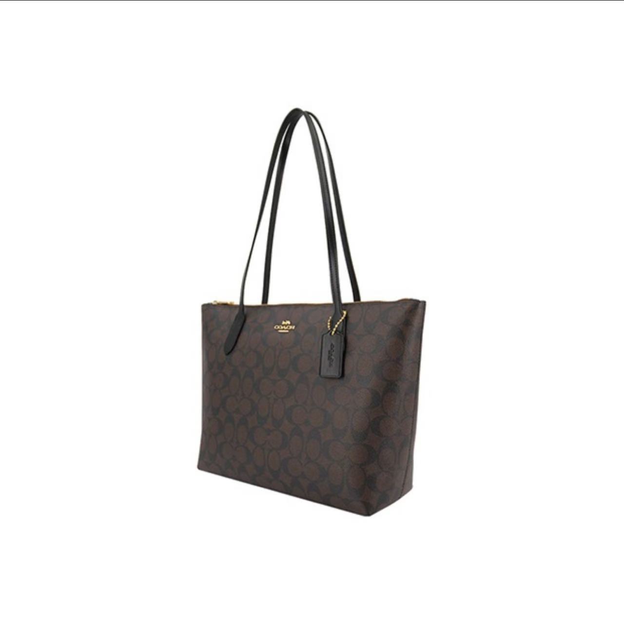 COACH蔻驰30老花托特包大号女款深棕色