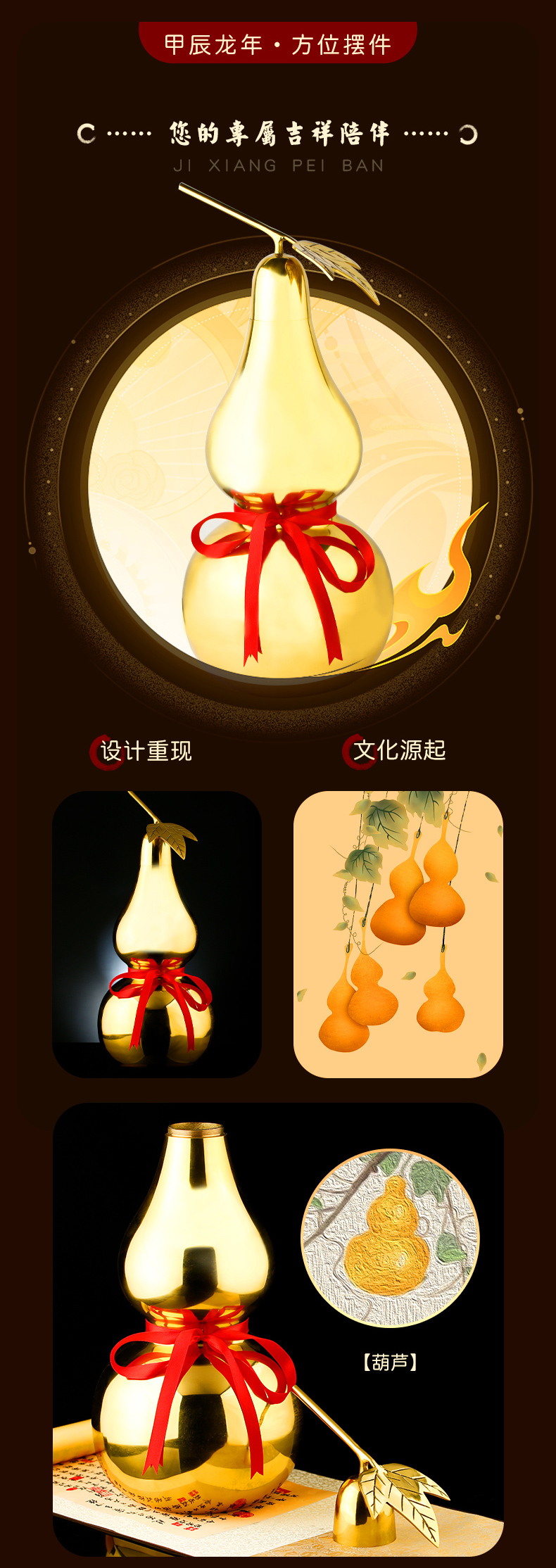 慈元阁2024年方位吉祥物宝定乾坤铜葫芦摆件家居办公室玄关摆设