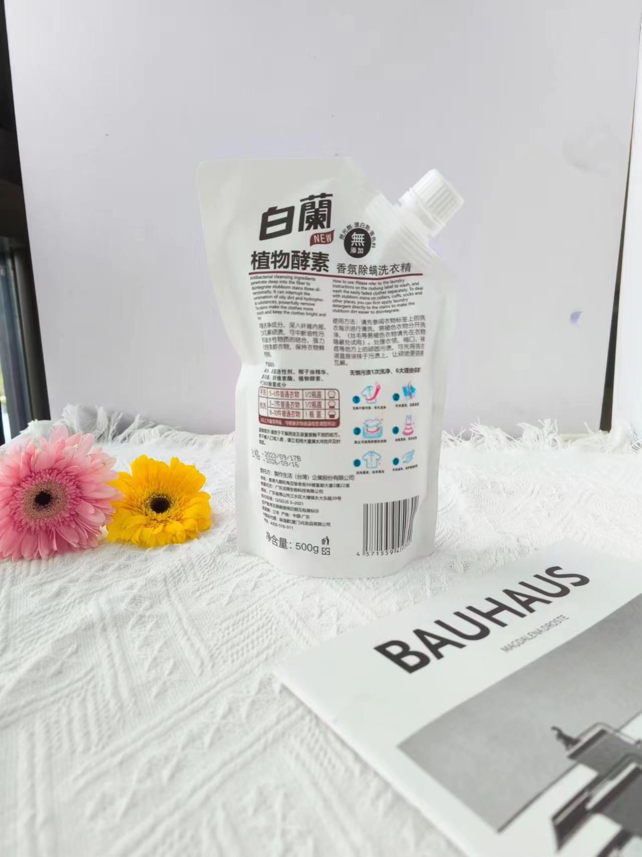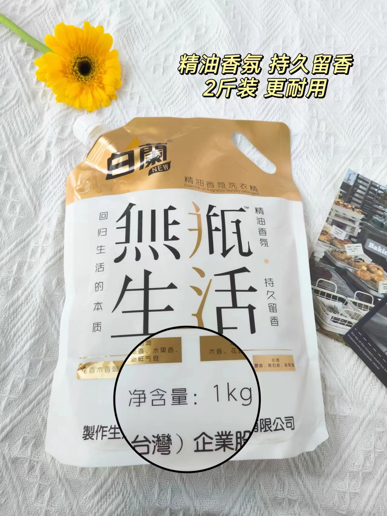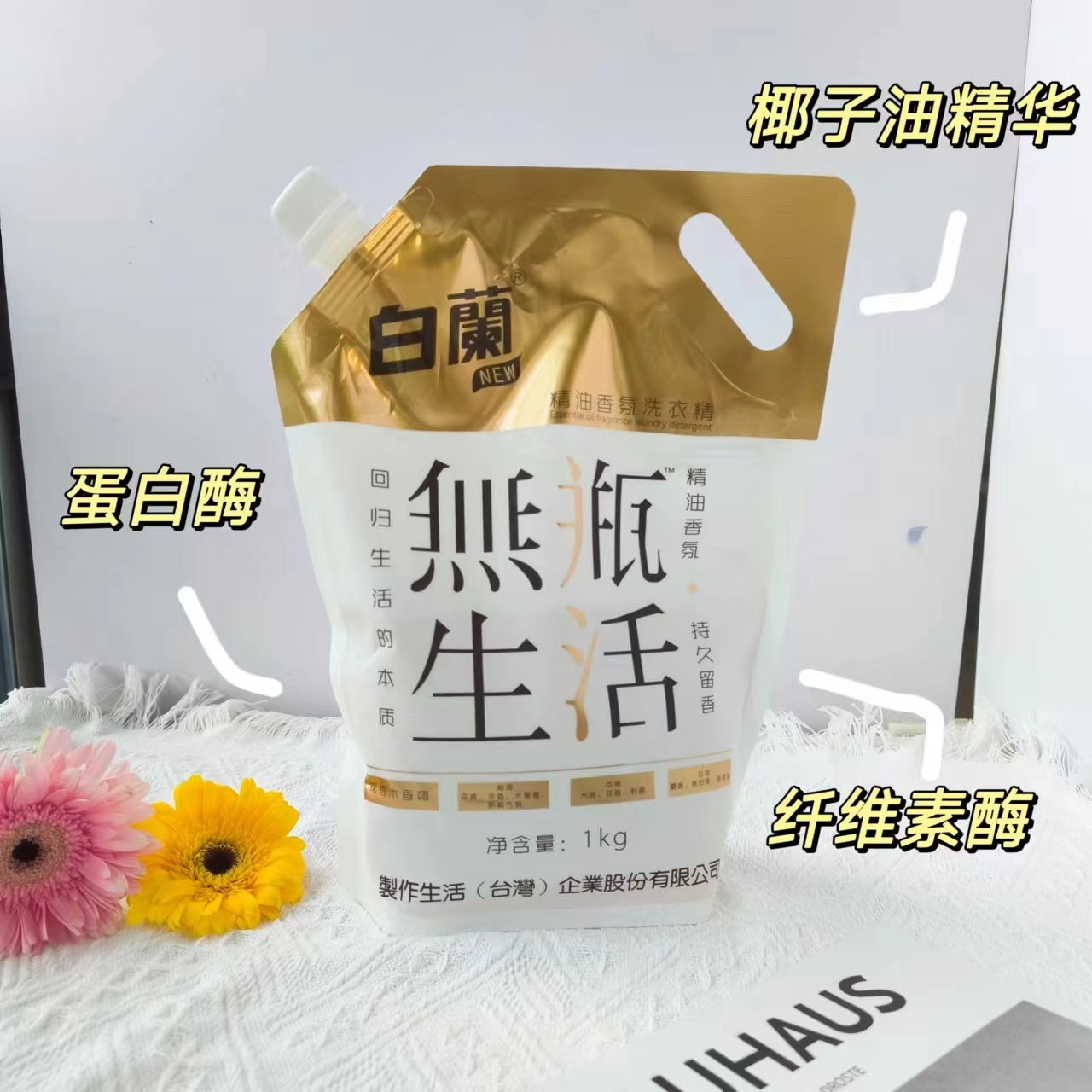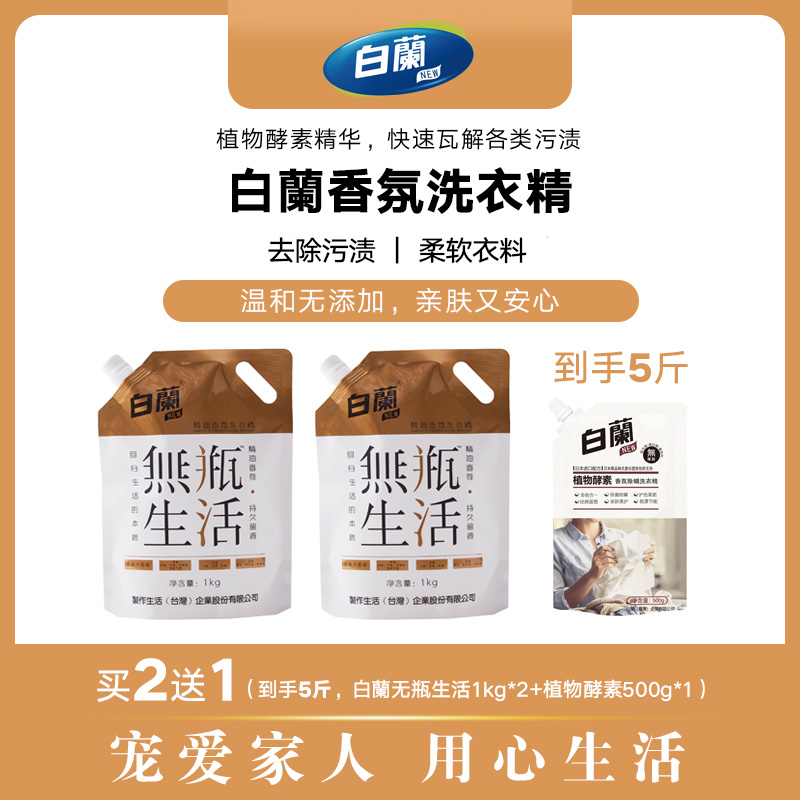 白蘭精油香氛洗衣精 规格:1kg/袋 生产日期:2023年10月 保质期:2年 主要成分:纯水、表面活性剂、椰子油精华、蛋白酶、纤维素酶 、植物酵素、PCMX除菌成分、精油香精 适用范围:棉、麻、合成纤维及混纺等多种质地织物 注意事项: 1、请将产品存放在儿童及宠物接触不到的地方。 2、请将产品存放于干燥处。开封后避免长时间存放,并在每次使用后及时盖紧盒盖。注意防水、防潮、防高温。 3、请勿将产品放入嘴中或食用。若不慎入口,请立即服用一杯清水或牛奶并及时就诊。 4、当液体接触眼睛时,请勿揉眼,立即用大量清水冲洗并及时就医。 使用说明:建议正常洗量 手洗 5-6件普通衣服 20g 机洗 5-7件普通衣服 30g 机洗 8-10件普通衣服 40g 快递:广州发圆通、极兔(随机),甘肃、宁夏、青海、内蒙古+2元/单,北京、上海+1元/单,新疆、西藏、疫情严重区域不发货,截单后3天内发货,疫情管控地区以实际出单为准(疫情区快递时效不保,以实际快递打单为准,不能发货地区则会取消订单,敬请谅解!) 注明:1、无理由拦截退回的,需客户自行承担拦截运费(5元/组)。 2、丢件、少件、漏液问题商品需提供产品图片、封胶处图片、面单图片。 3、签收3天之内,带以上图片报售后处理。未给售后结果之前,客户不要私自处理丢弃包裹,超时不予处理望谅解! 白蘭植物酵素香氛除螨洗衣精 规格:500g/袋 生产日期:2023年9月 保质期:3年 主要成分:纯水、表面活性剂、椰子油精华、蛋白酶、纤维素酶、植物酵素、PCMX除菌成分 适用范围:棉、麻、合成纤维及混纺等多种质地织物 注意事项: 1、请将产品存放在儿童及宠物接触不到的地方。 2、请将产品存放于干燥处。开封后避免长时间存放,并在每次使用后及时盖紧盒盖。注意防水、防潮、防高温。 3、请勿将产品放入嘴中或食用。若不慎入口,请立即服用一杯清水或牛奶并及时就诊。 4、当液体接触眼睛时,请勿揉眼,立即用大量清水冲洗并及时就医。 使用说明:建议正常洗量 手洗 5-6件普通衣服 20g 机洗 5-7件普通衣服 30g 机洗 8-10件普通衣服 40g 快递:广州发圆通、极兔(随机),甘肃、宁夏、青海、内蒙古+2元/单,北京、上海+1元/单,新疆、西藏、疫情严重区域不发货,截单后3天内发货,疫情管控地区以实际出单为准(疫情区快递时效不保,以实际快递打单为准,不能发货地区则会取消订单,敬请谅解!) 注明:1、无理由拦截退回的,需客户自行承担拦截运费(5元/组)。 2、丢件、少件、漏液问题商品需提供产品图片、封胶处图片、面单图片。 3、签收3天之内,带以上图片报售后处理。未给售后结果之前,客户不要私自处理丢弃包裹,超时不予处理望谅解!。