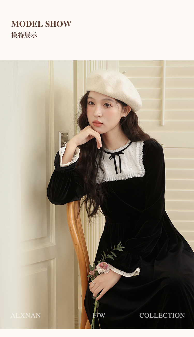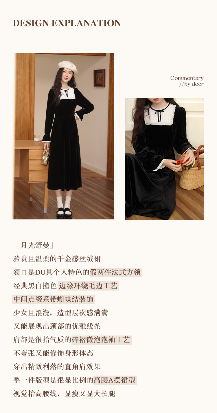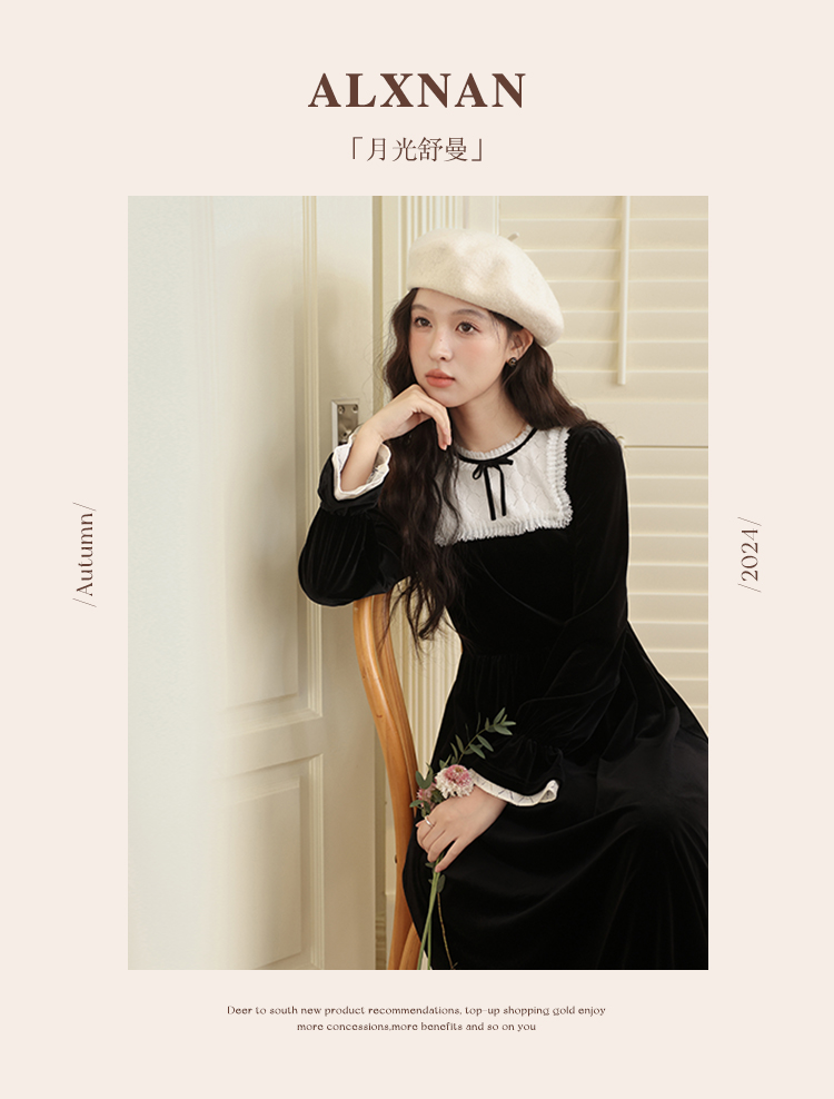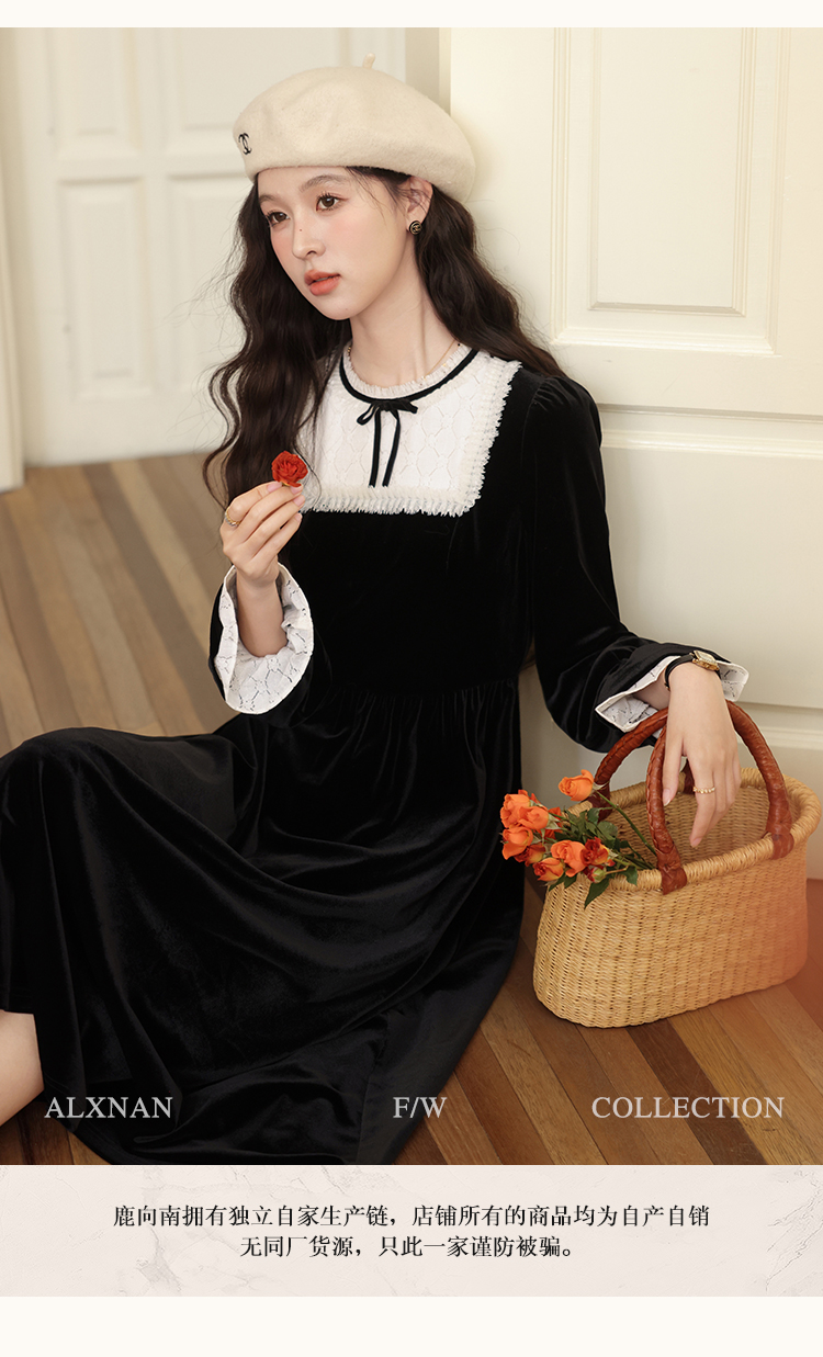 【65折秒杀】鹿向南「月光舒曼」法式丝绒保暖连衣裙2024新款女冬款显瘦裙子L52588