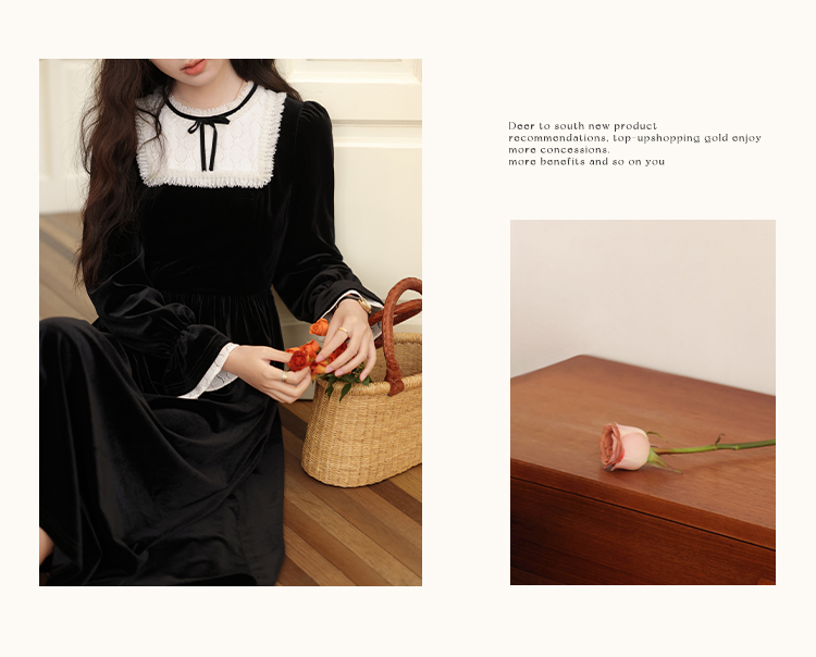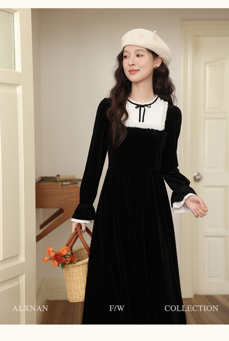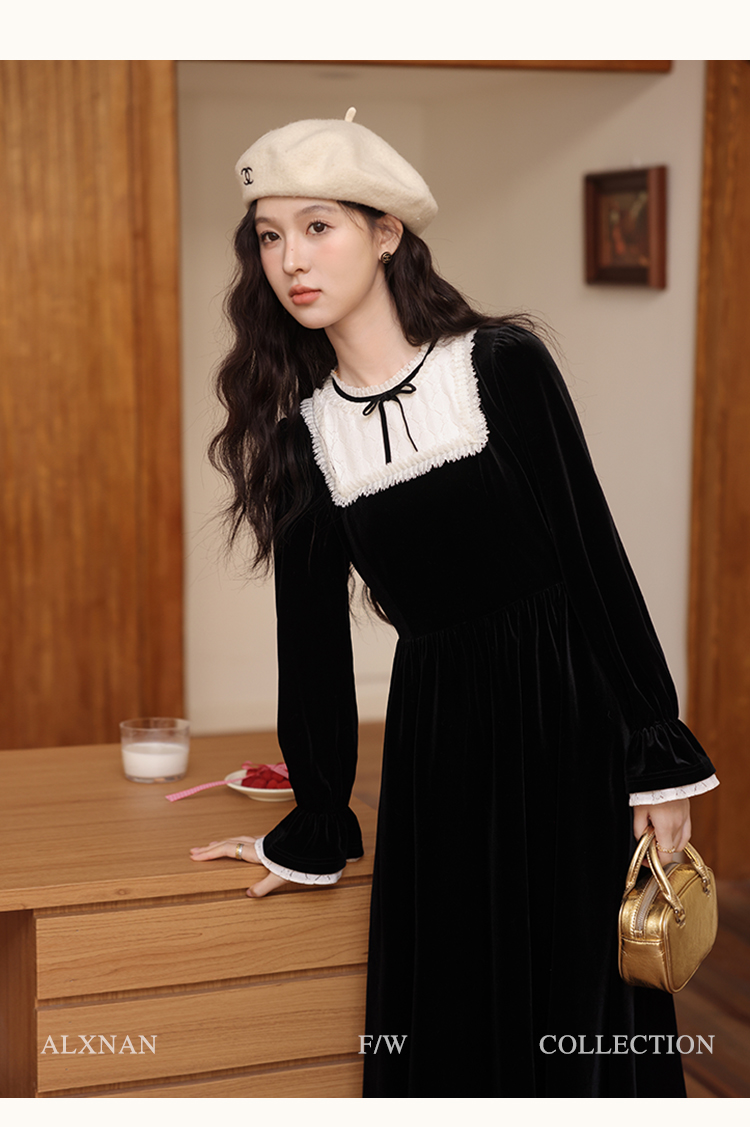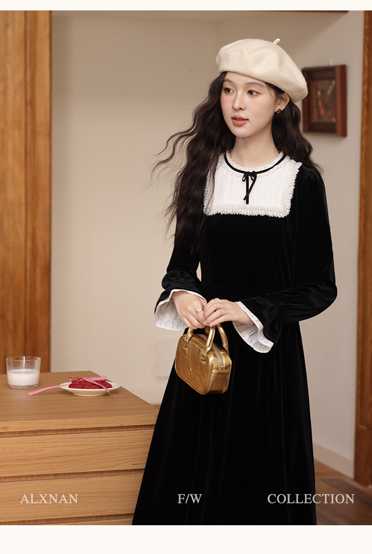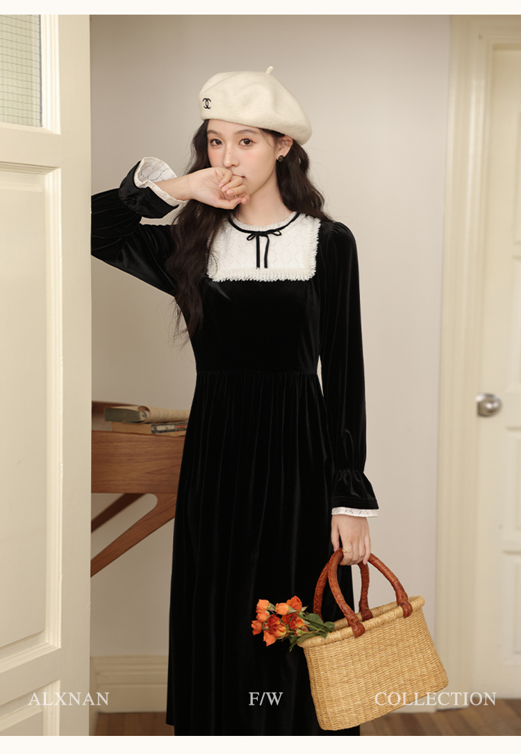 【65折秒杀】鹿向南「月光舒曼」法式丝绒保暖连衣裙2024新款女冬款显瘦裙子L52588